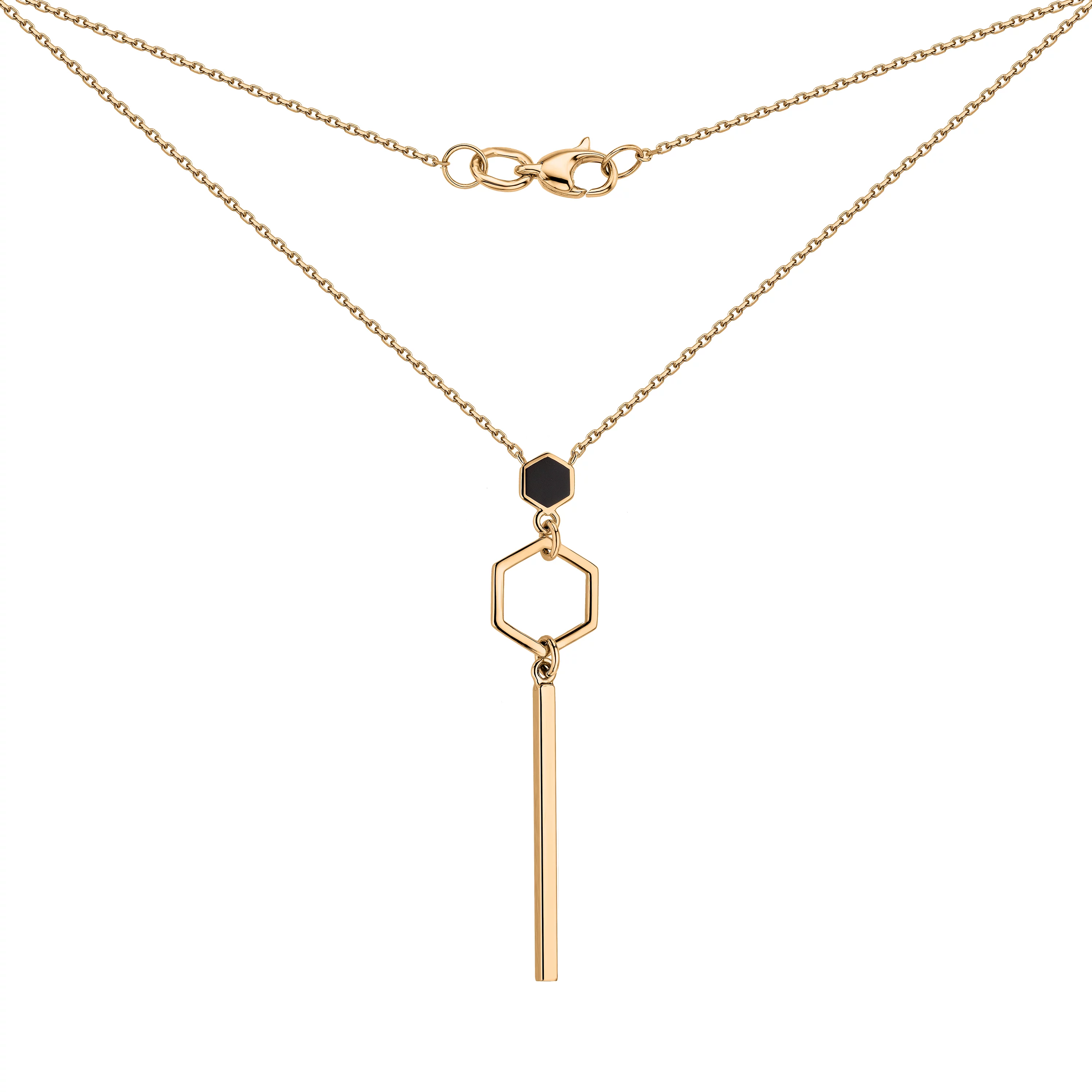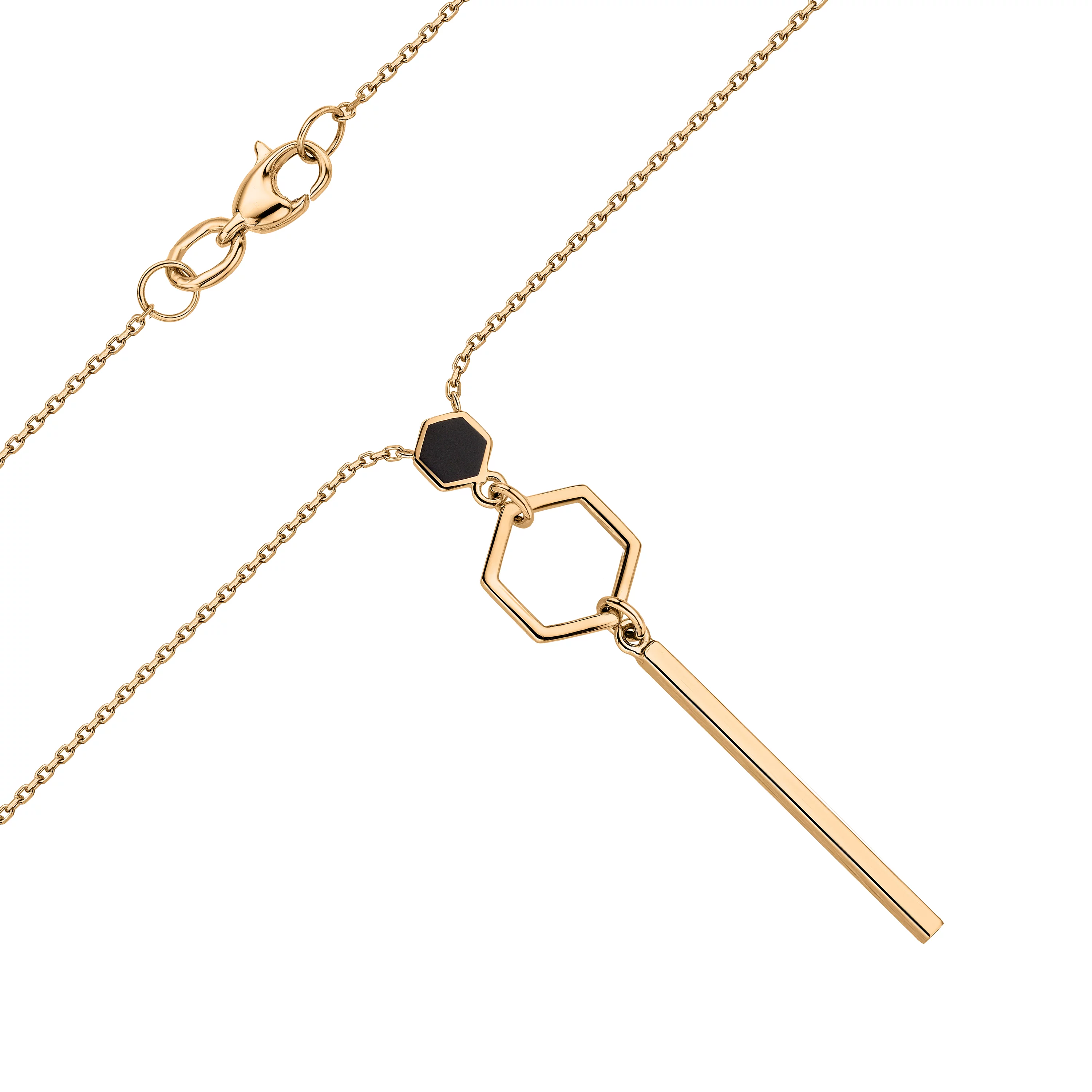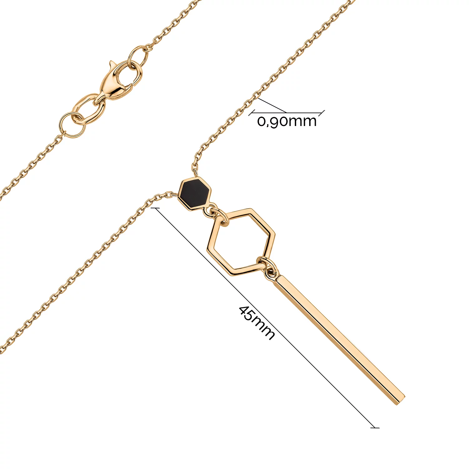Кольє з підвісом "Конюшина" з червоного золота з оніксом якірне плетіння - 1824374
