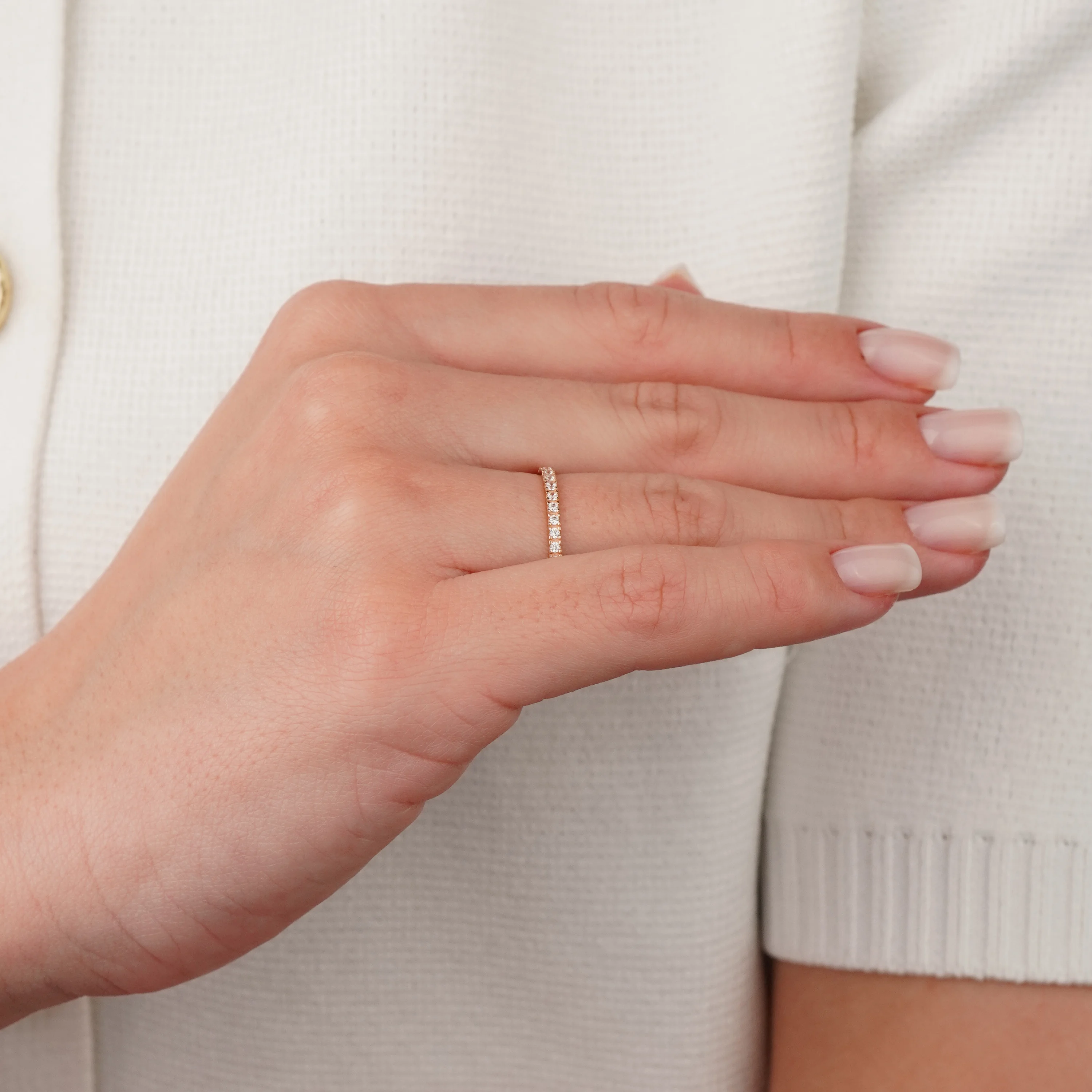 Каблучка в мінімалістичному стилі з червоного золота з фіанітом - 1867186