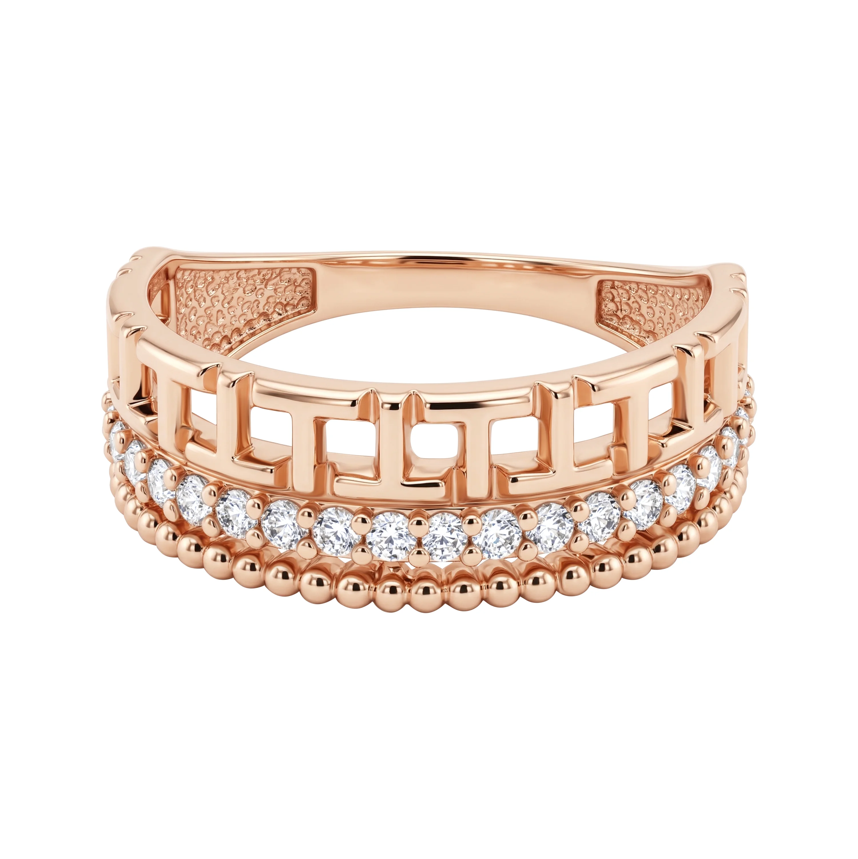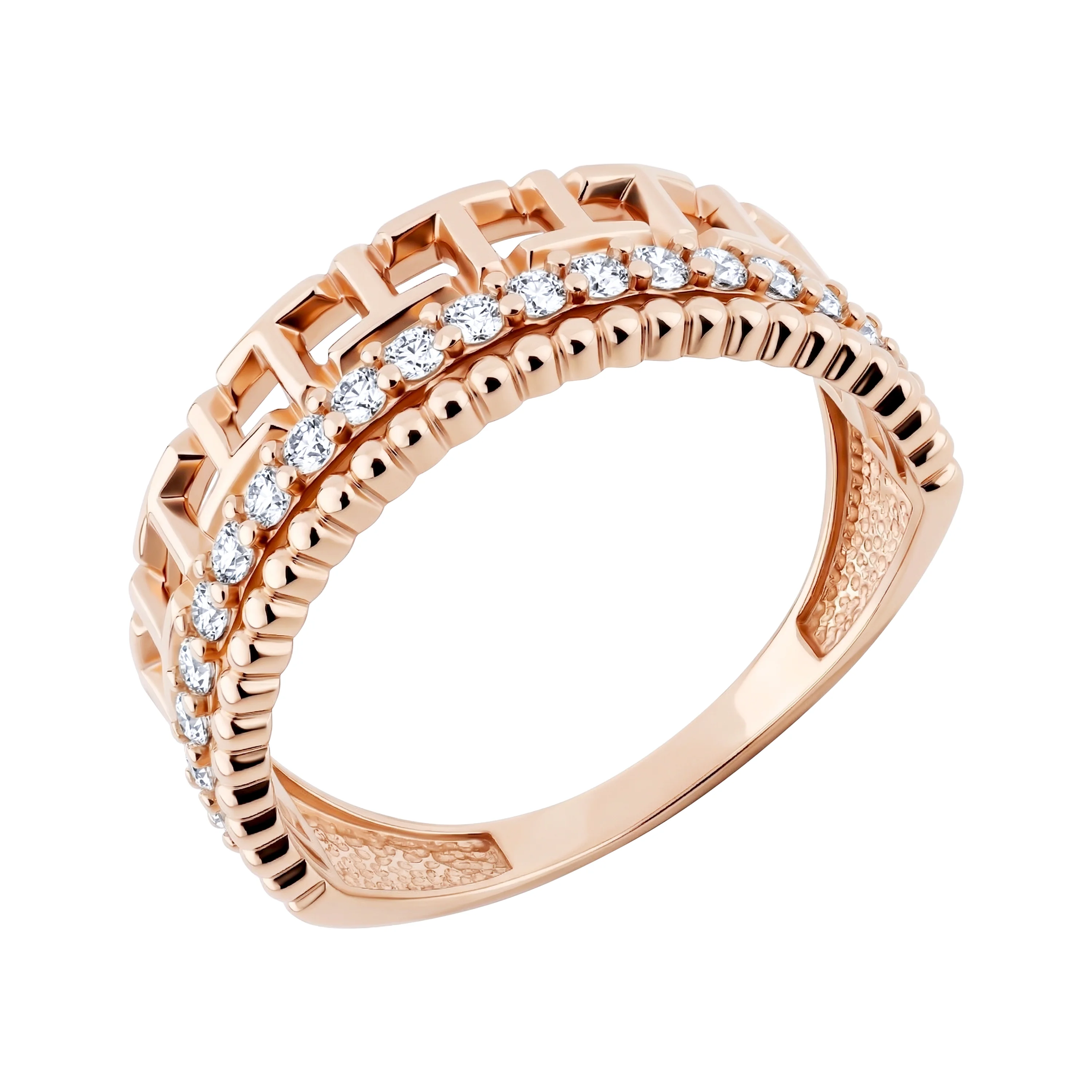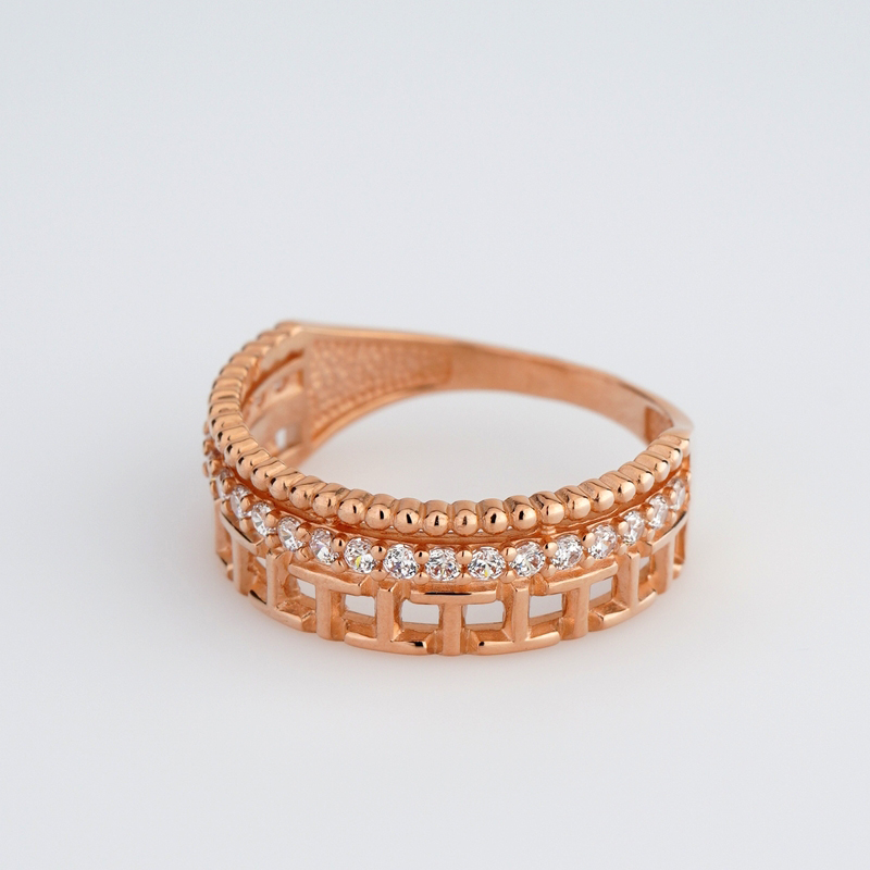 Елегантна каблучка з червоного золота з фіанітами - 2214501