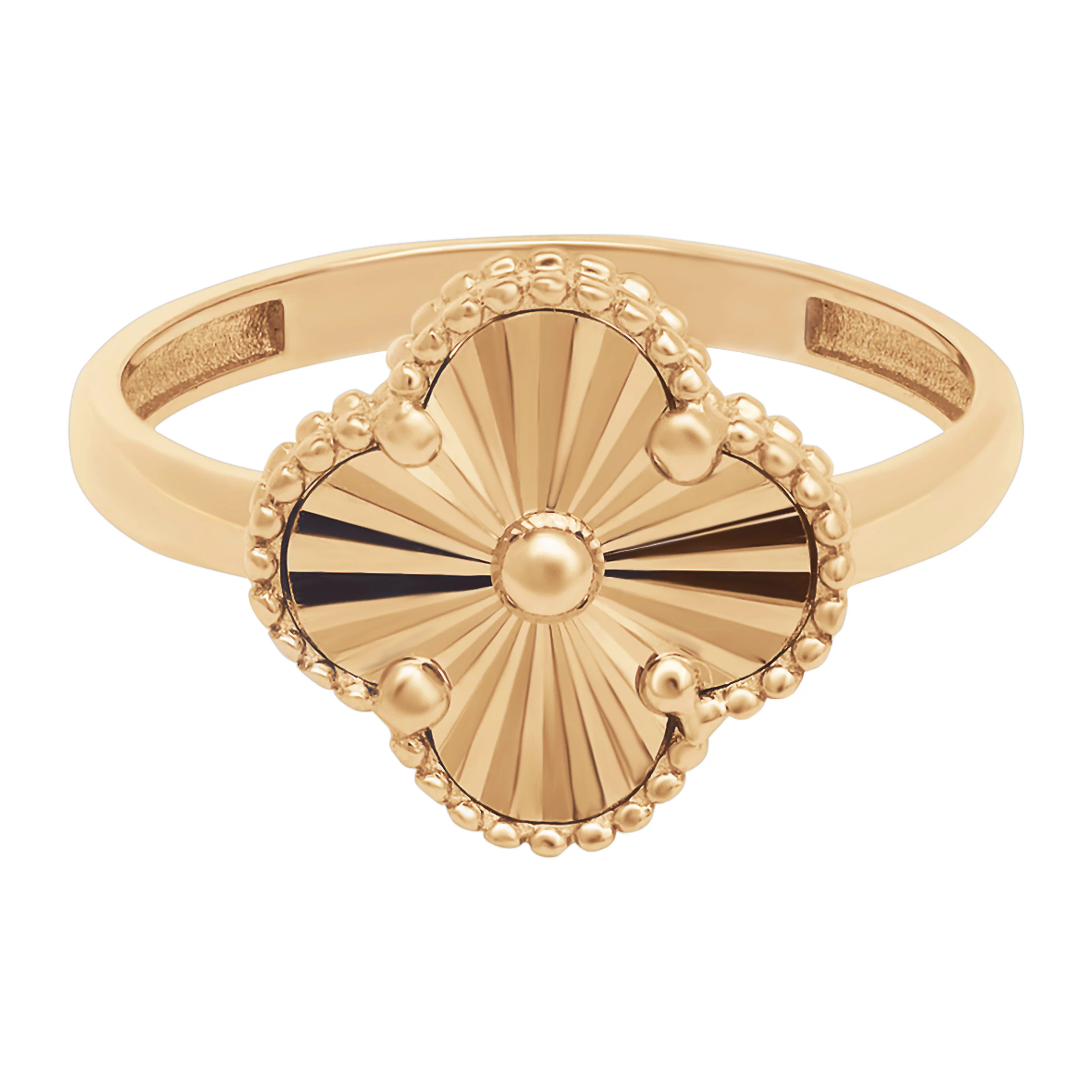 Елегантна каблучка "Конюшина" у червоному золоті - 1952605