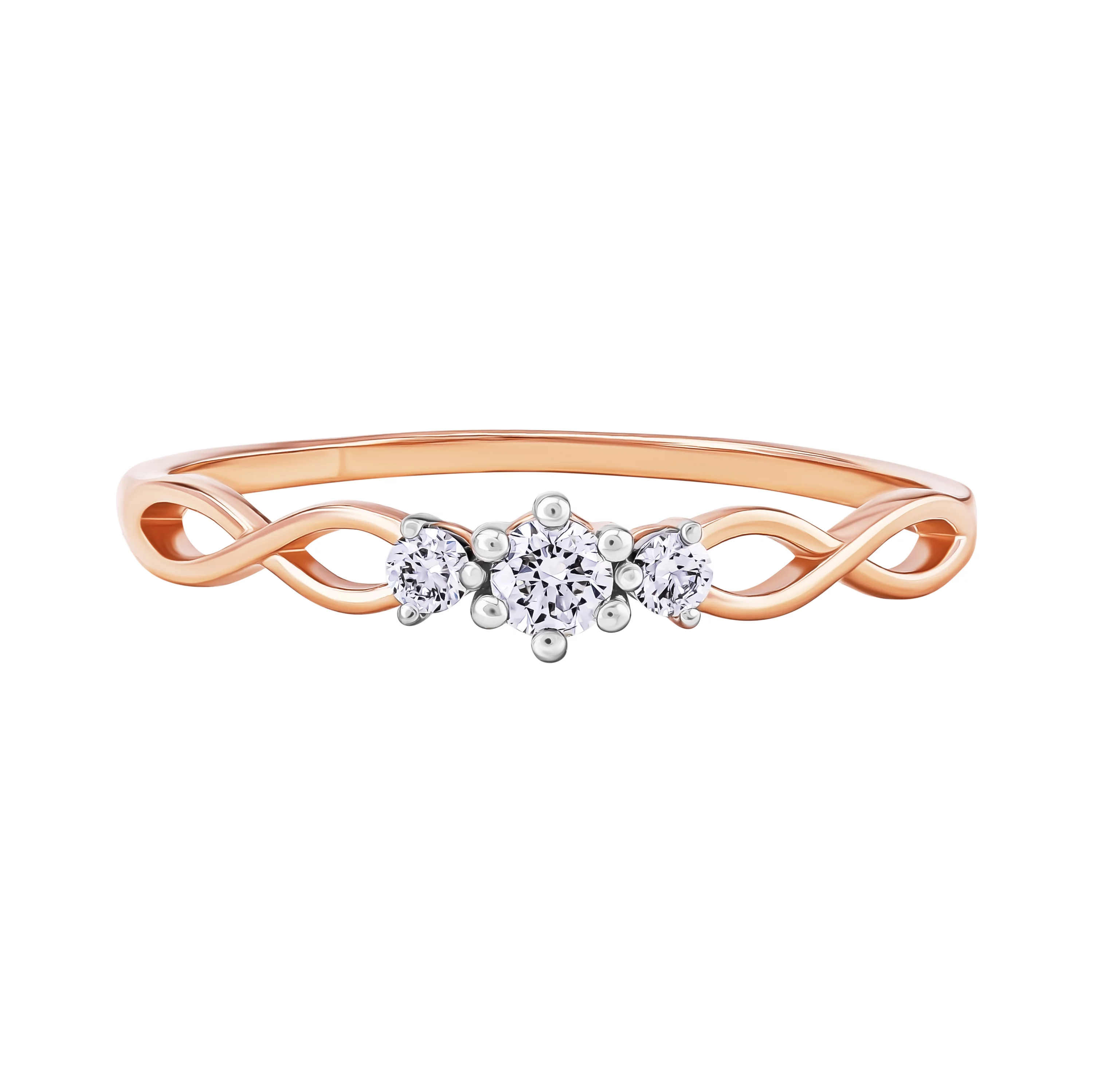 Каблучка в мінімалістичному стилі в комбінованому золоті з діамантом - 1875485