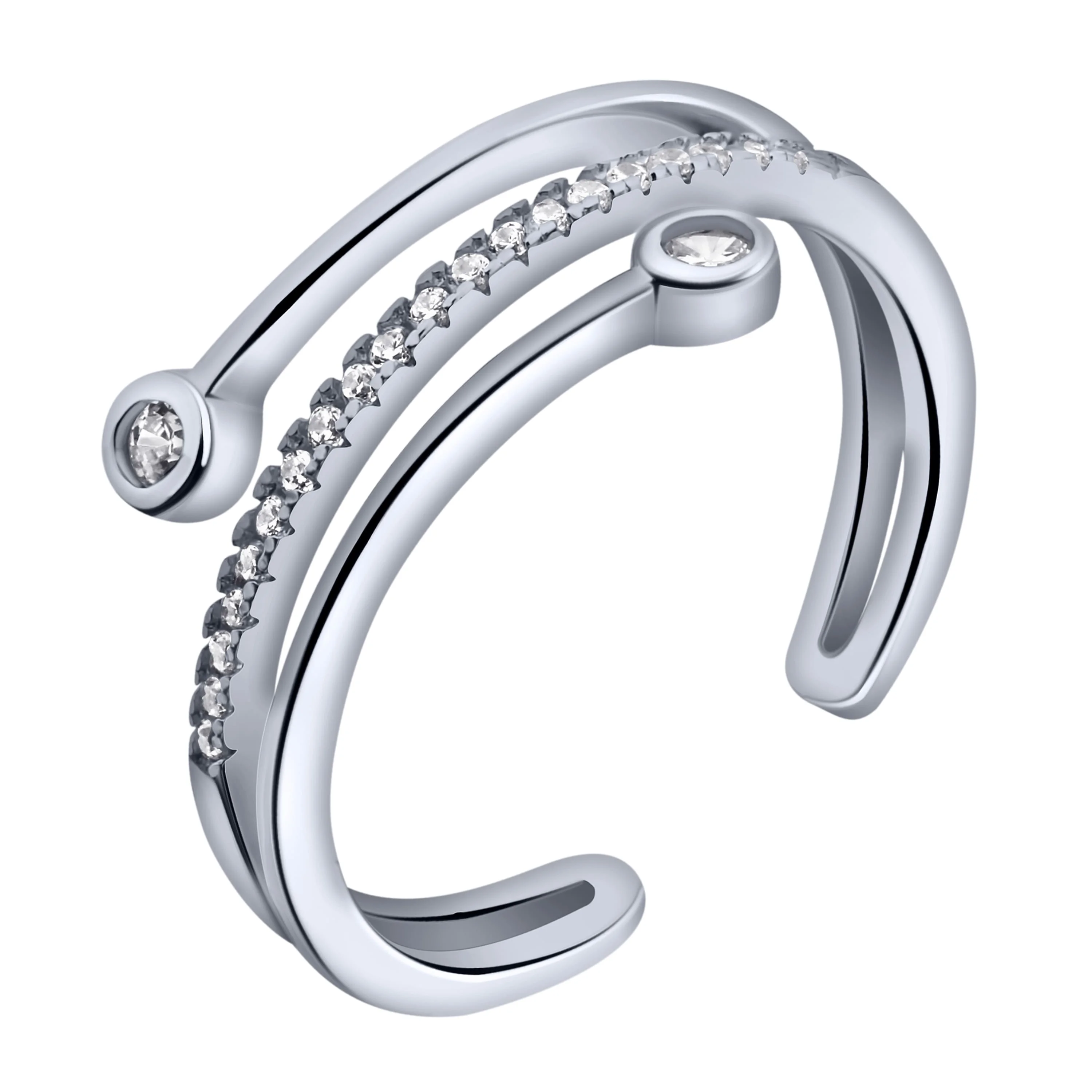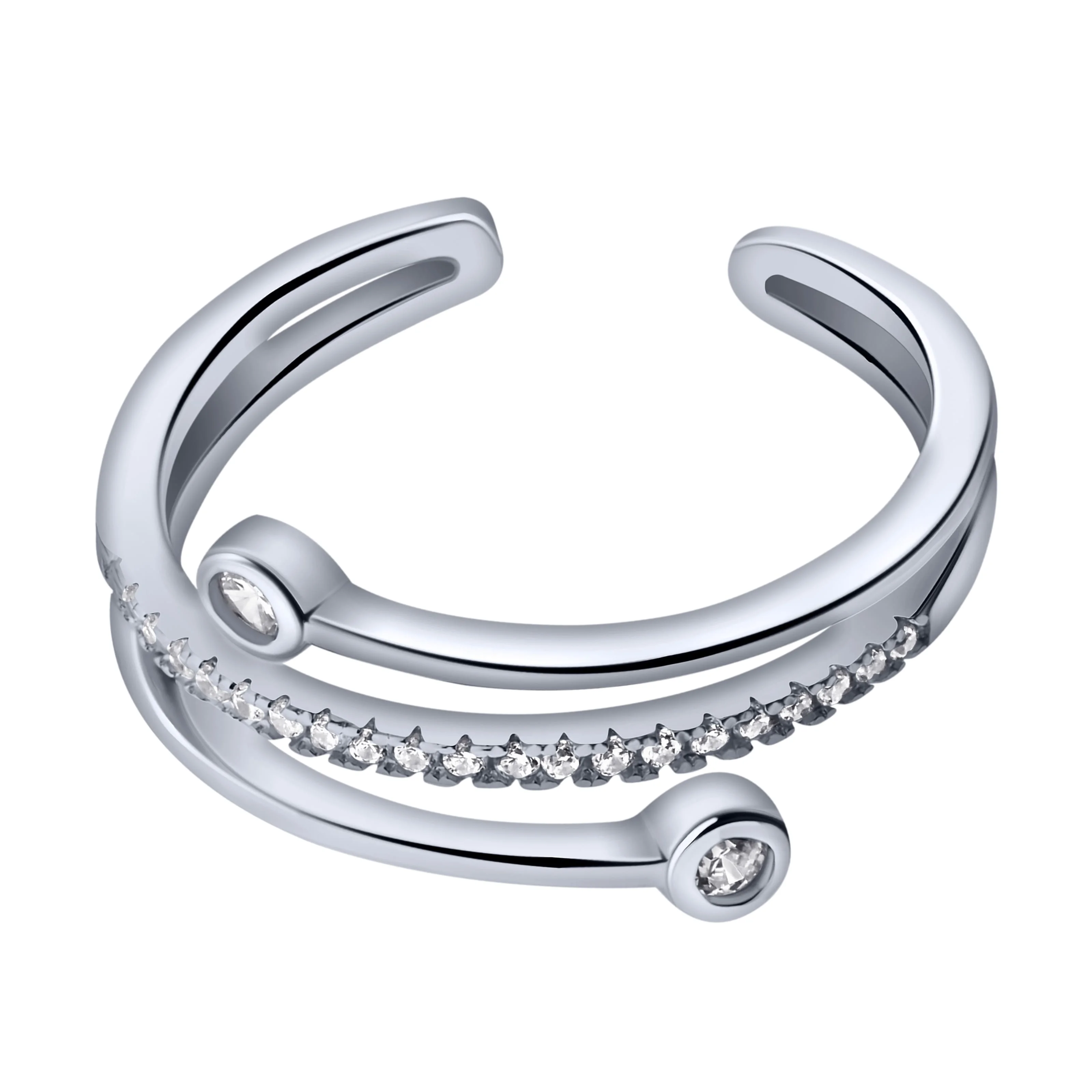 Незамкнена срібна каблучка з фіанітами - 1978393