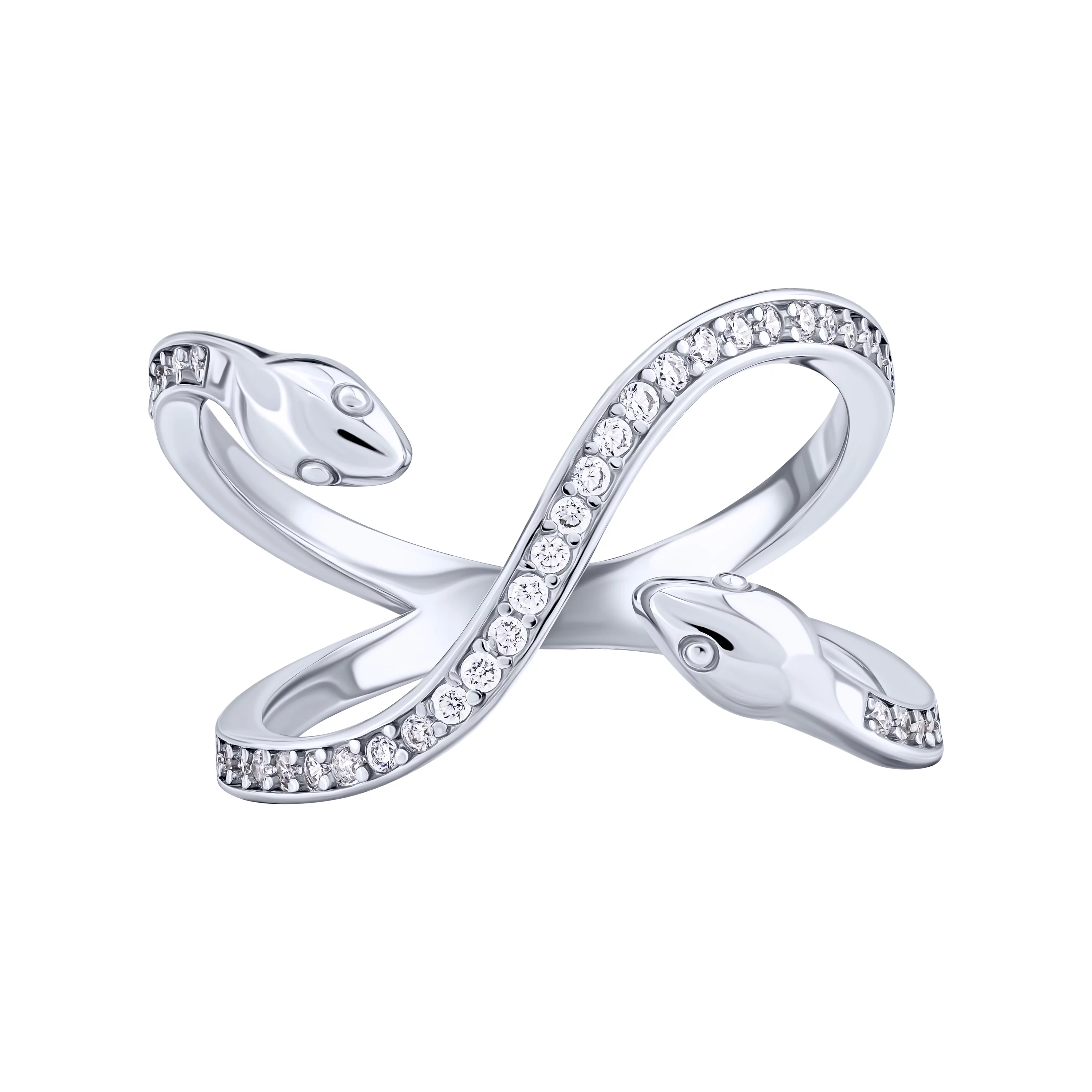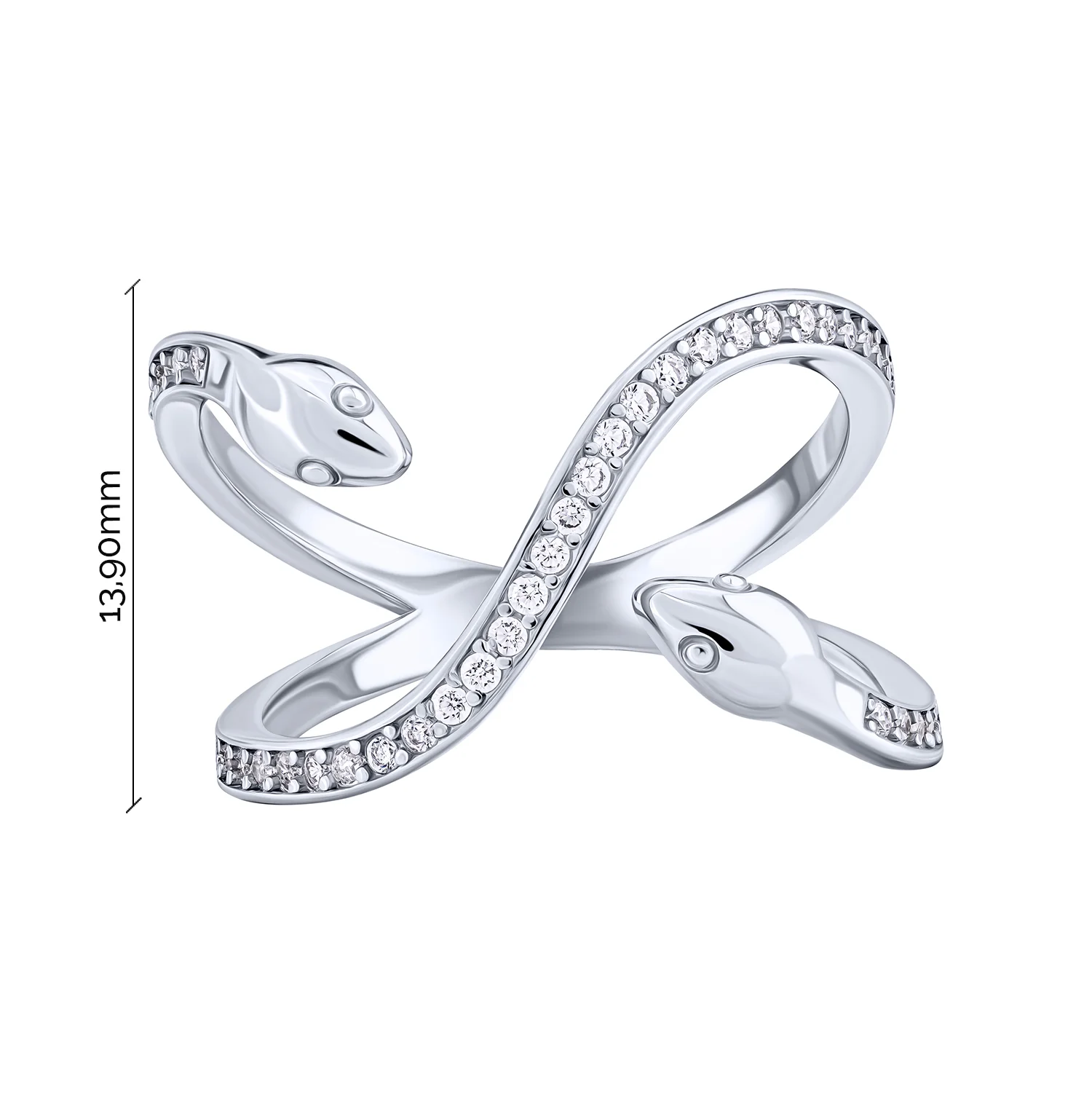 Елегантна срібна каблучка "Змія" з фіанітами - 1960843