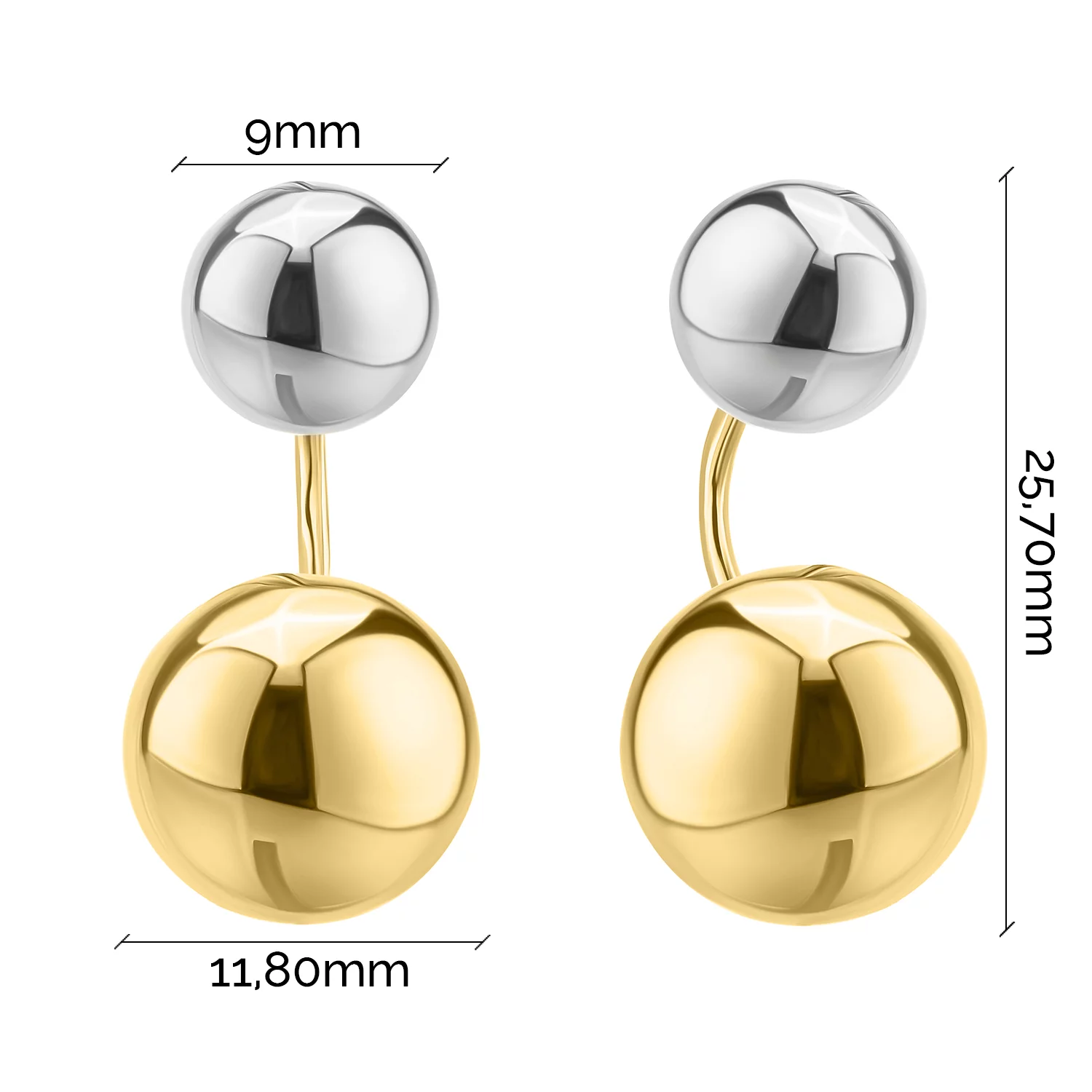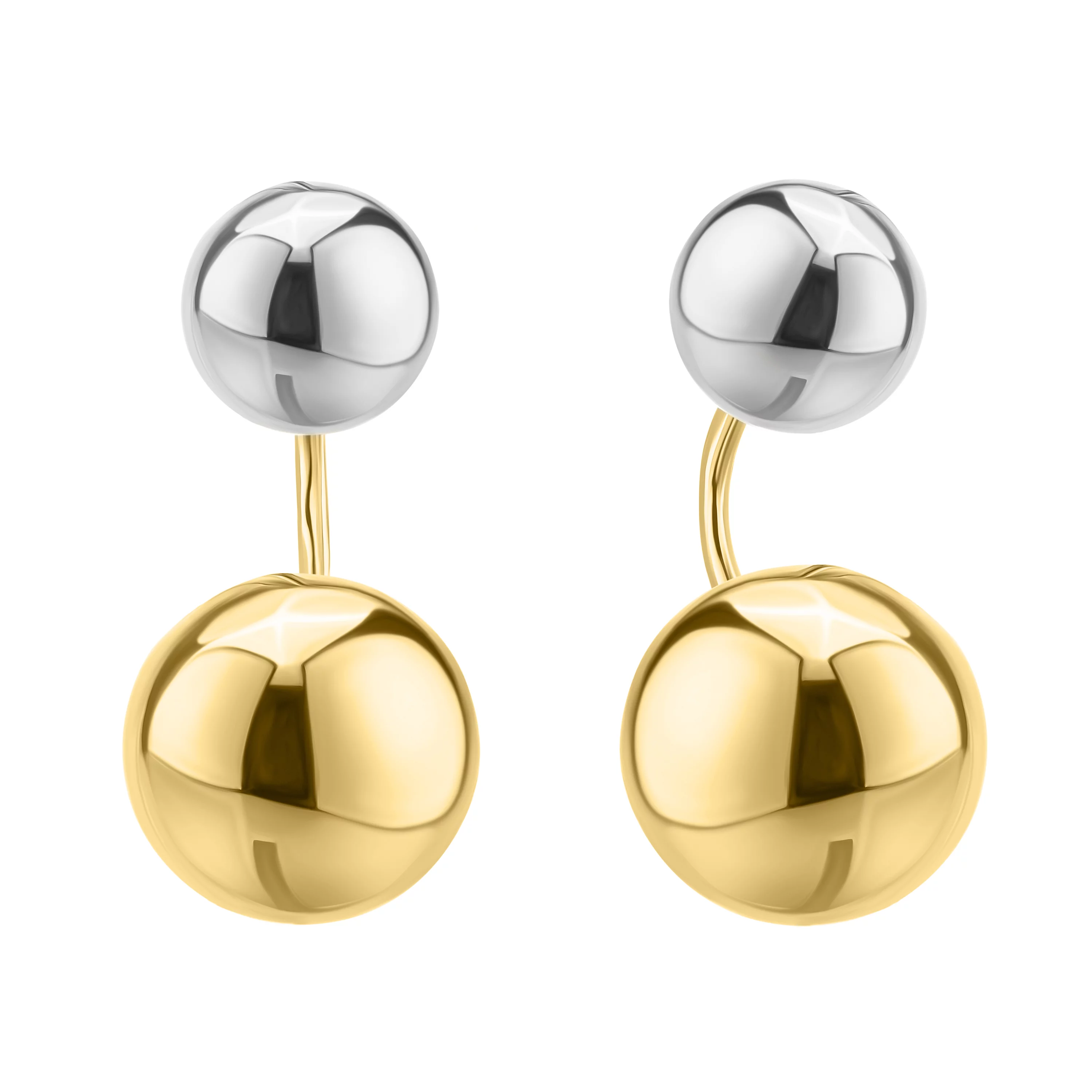 Елегантні сережки-гвоздики "Кулі" у червоному золоті з емаллю - 1926551