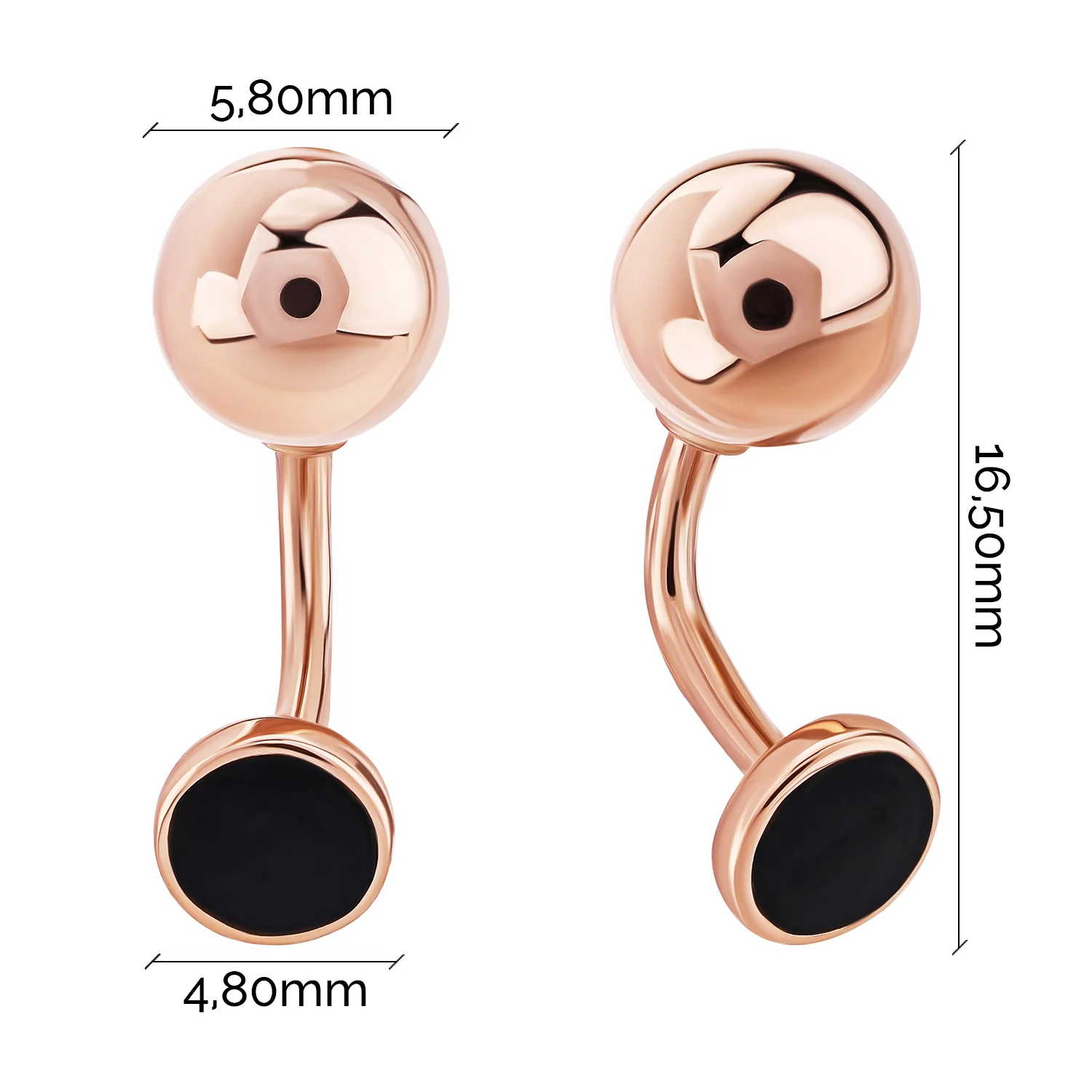 Сережки-гвоздики з червоного золота "Квадрат" зі знімною частиною - 1617432
