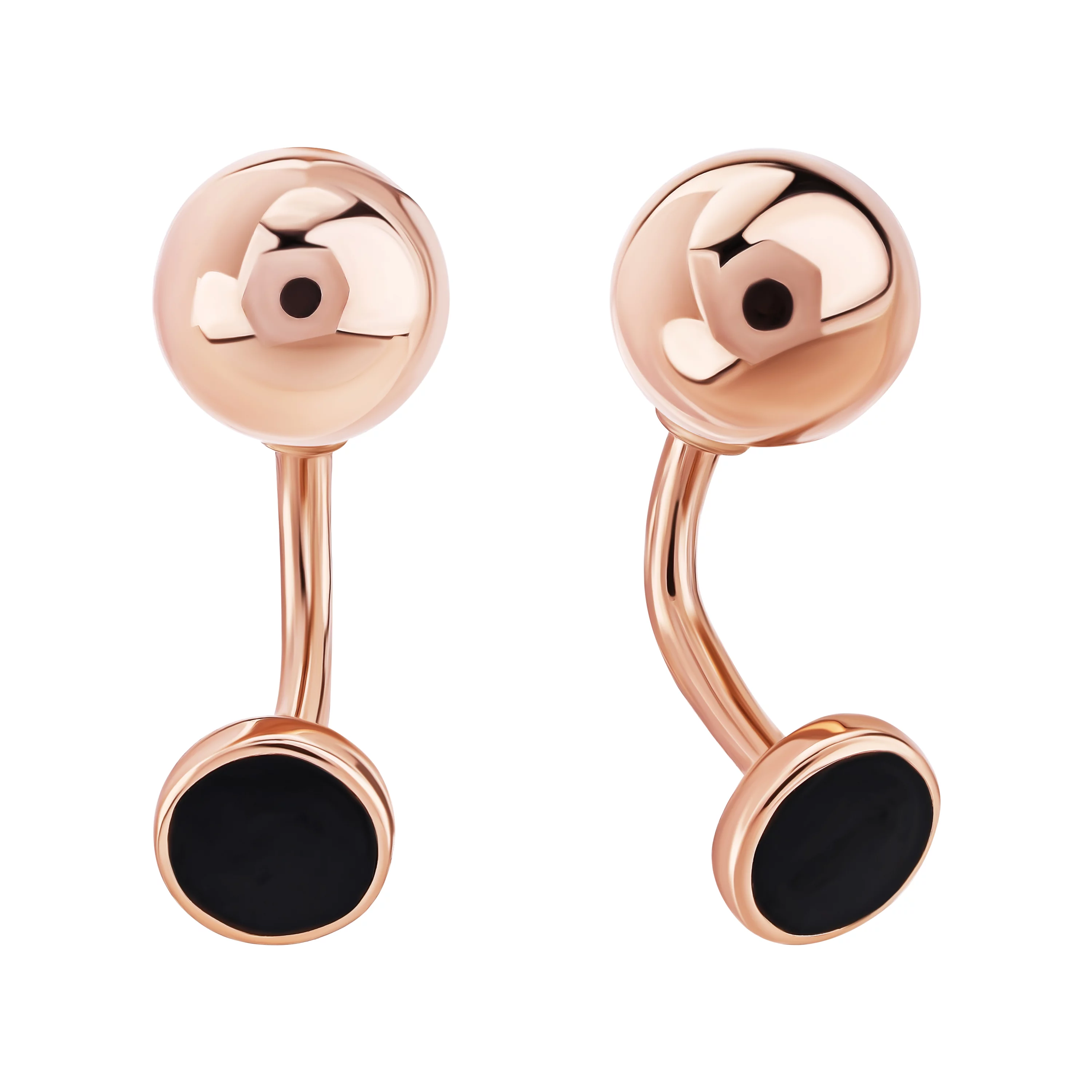 Сережки-гвоздики "Геометричні фігури" з червоного золота з емаллю - 1614827
