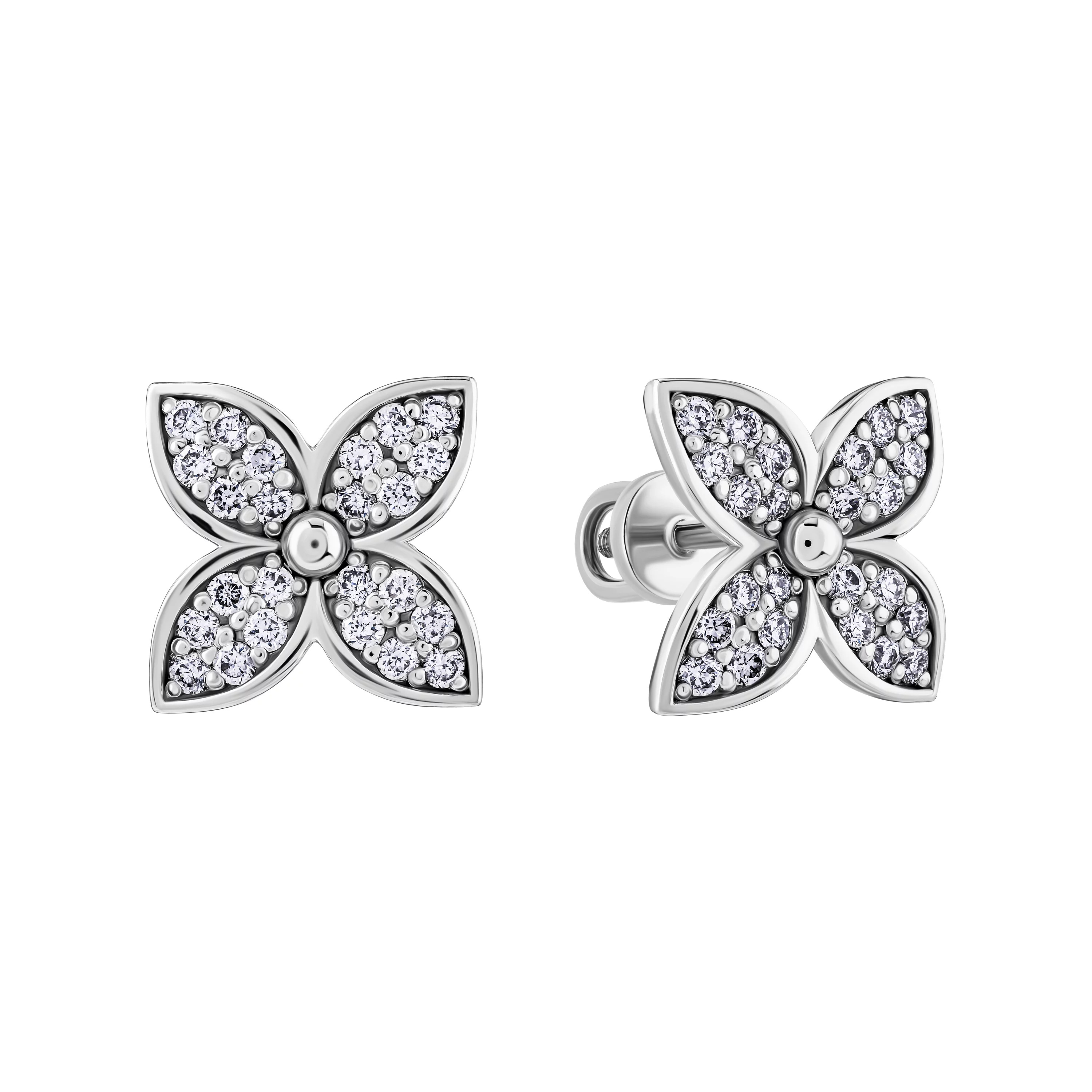 Сережки-гвоздики "Квіточка" з червоного золота з розсипом діамантів - 1532353