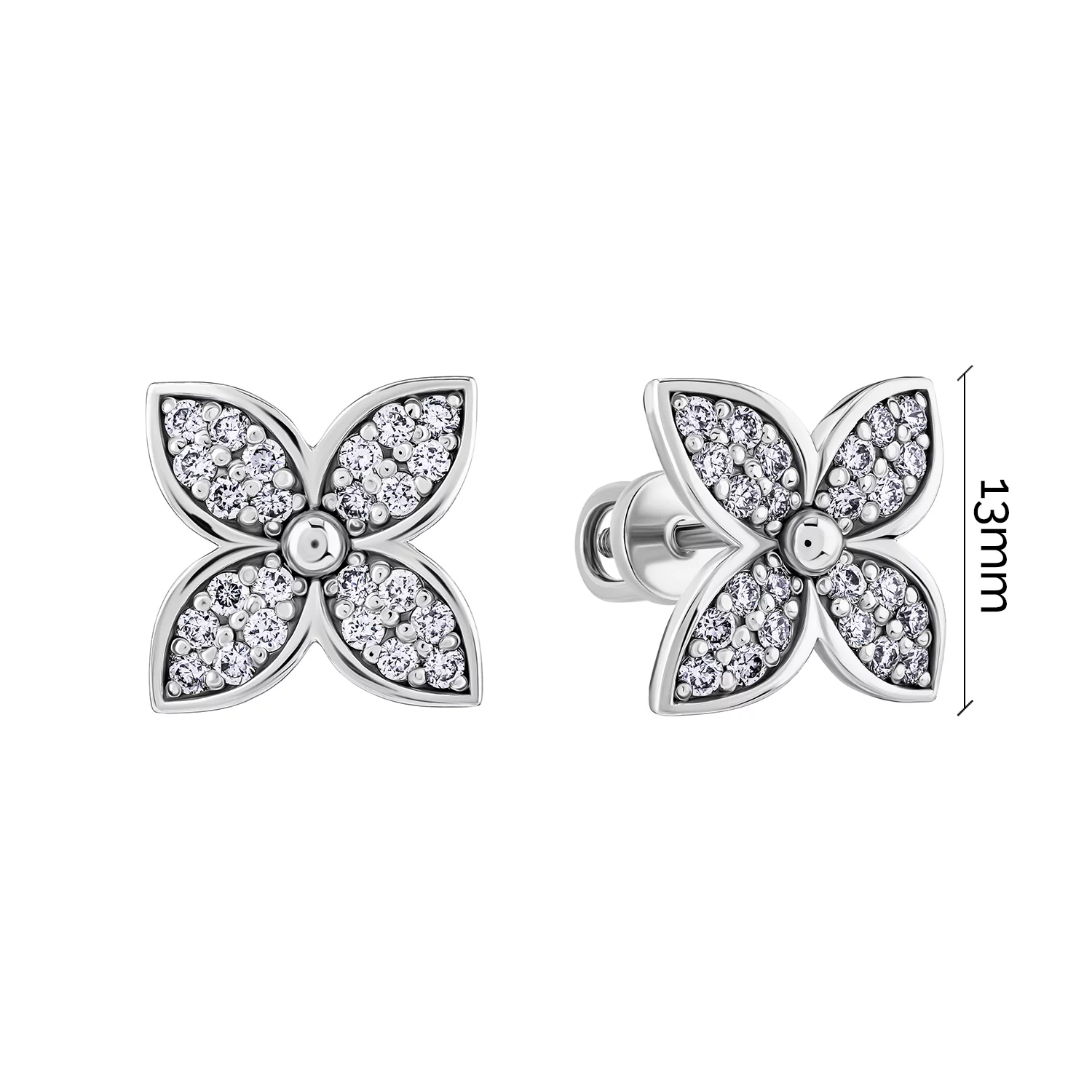Сережки-гвоздики "Квітка" з комбінованого золота з алмазною гранню - 1918776