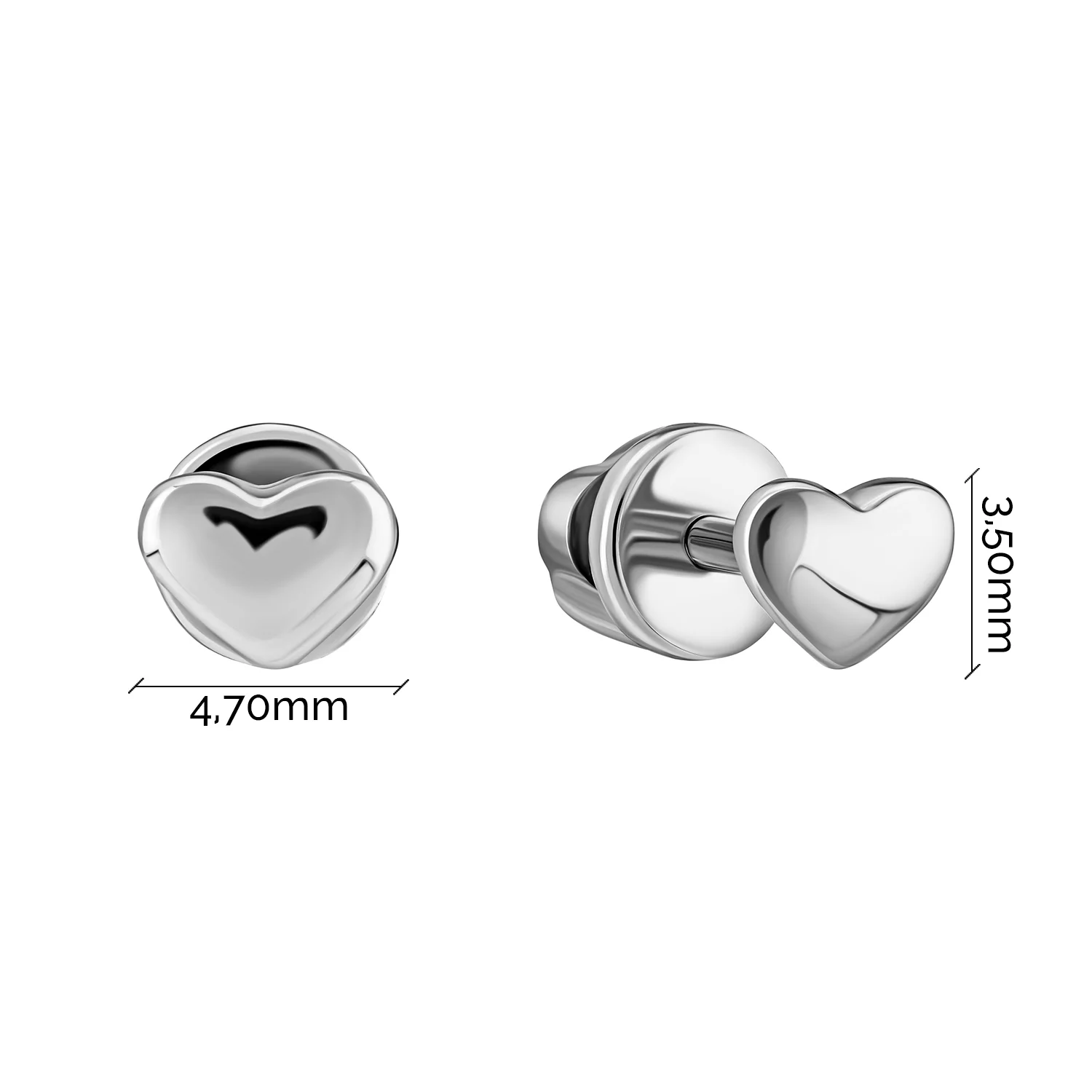 Елегантні сережки-пусети "Серце" у білому золоті - 1958608