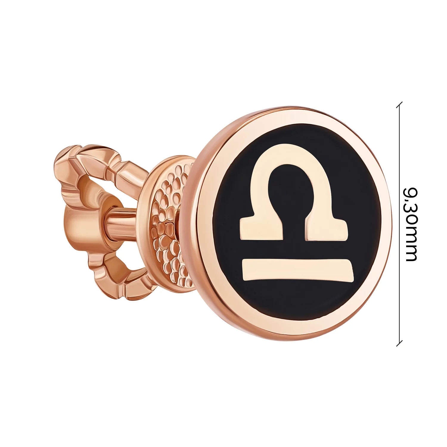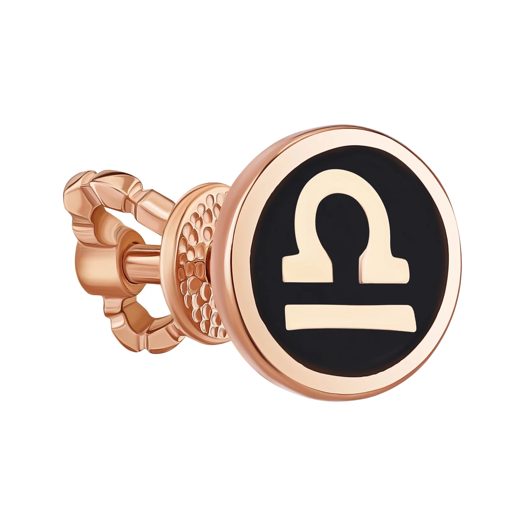 Моно сережка-пусет "Знак зодіаку-Лев" у червоному золоті з емаллю - 1918330