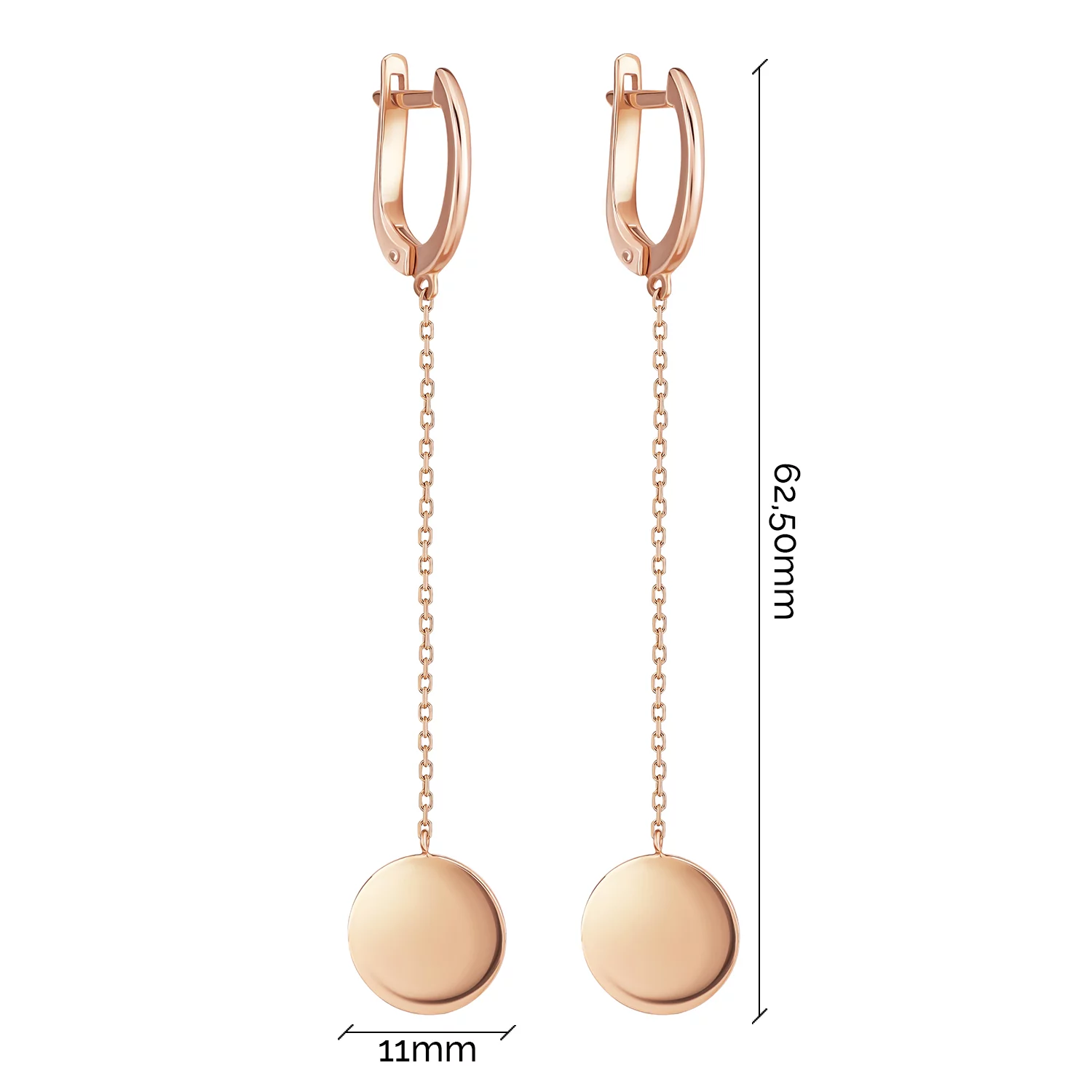 Сережки-гвоздики з ланцюжками у мінімалістичному стилі з червоного золота - 1942913