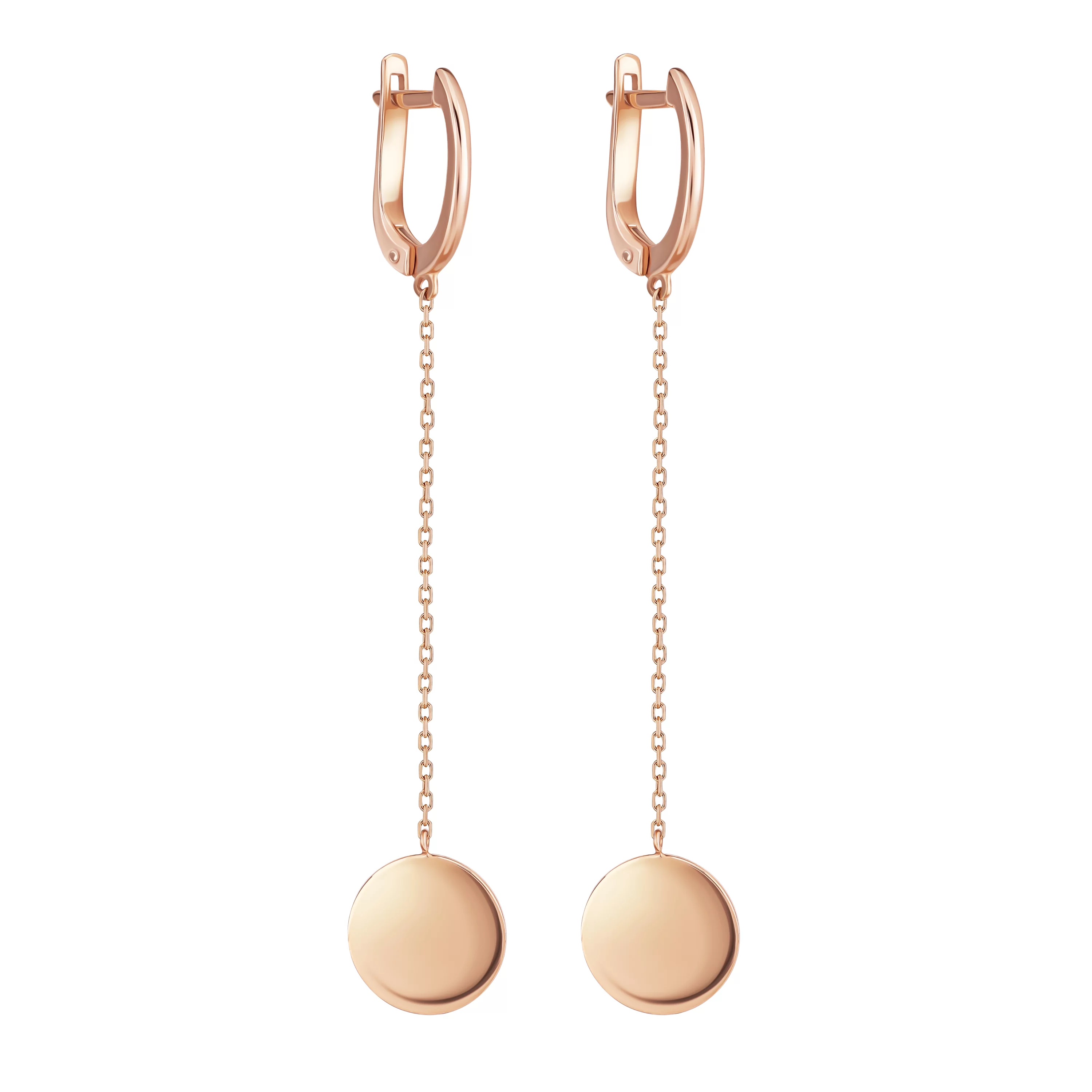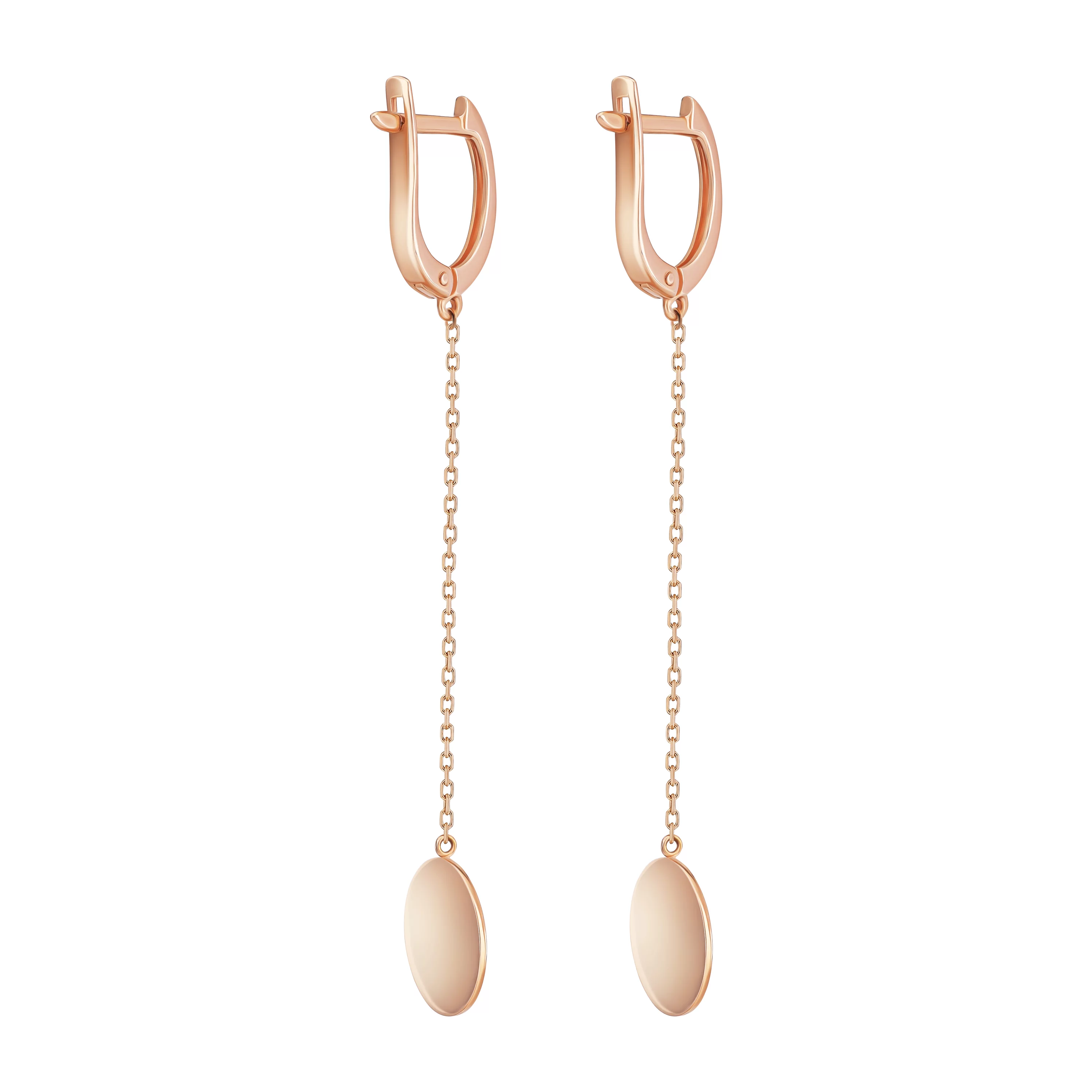 Сережки-кільця з підвісами з червоного золота в мінімалістичному стилі - 1690471