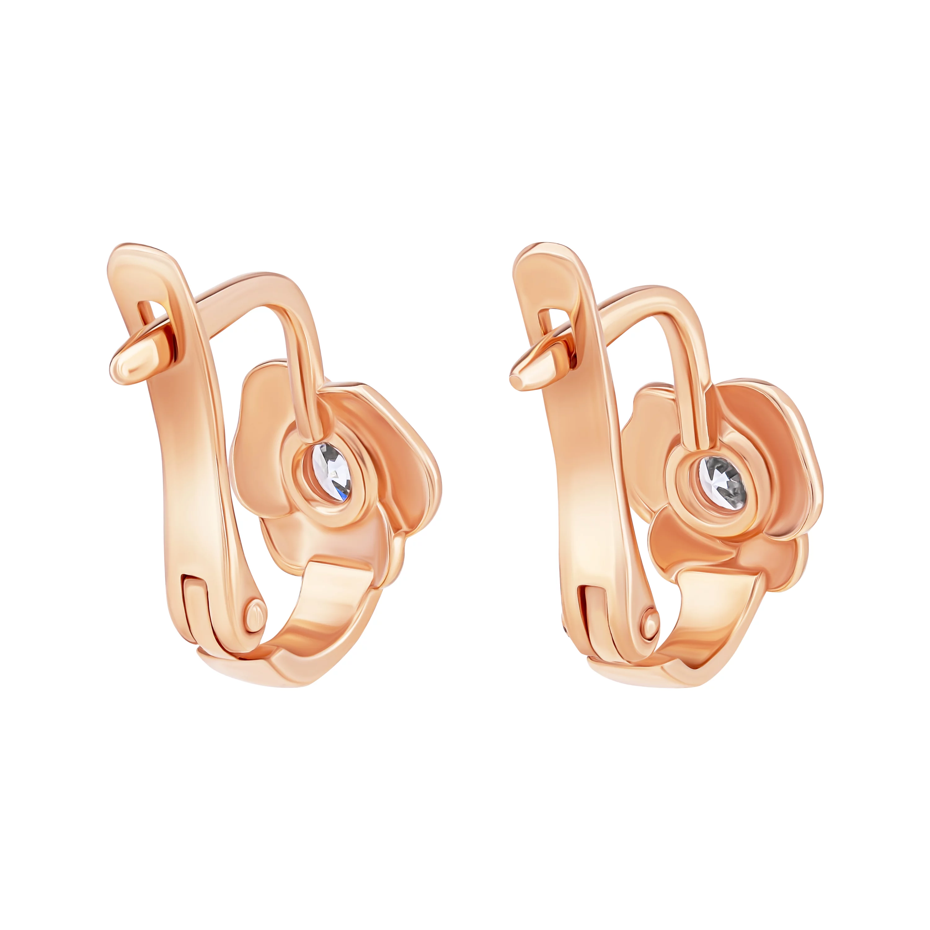 Дитячі сережки "Квіточка" з червоного золота з фіанітом та емаллю - 1919314
