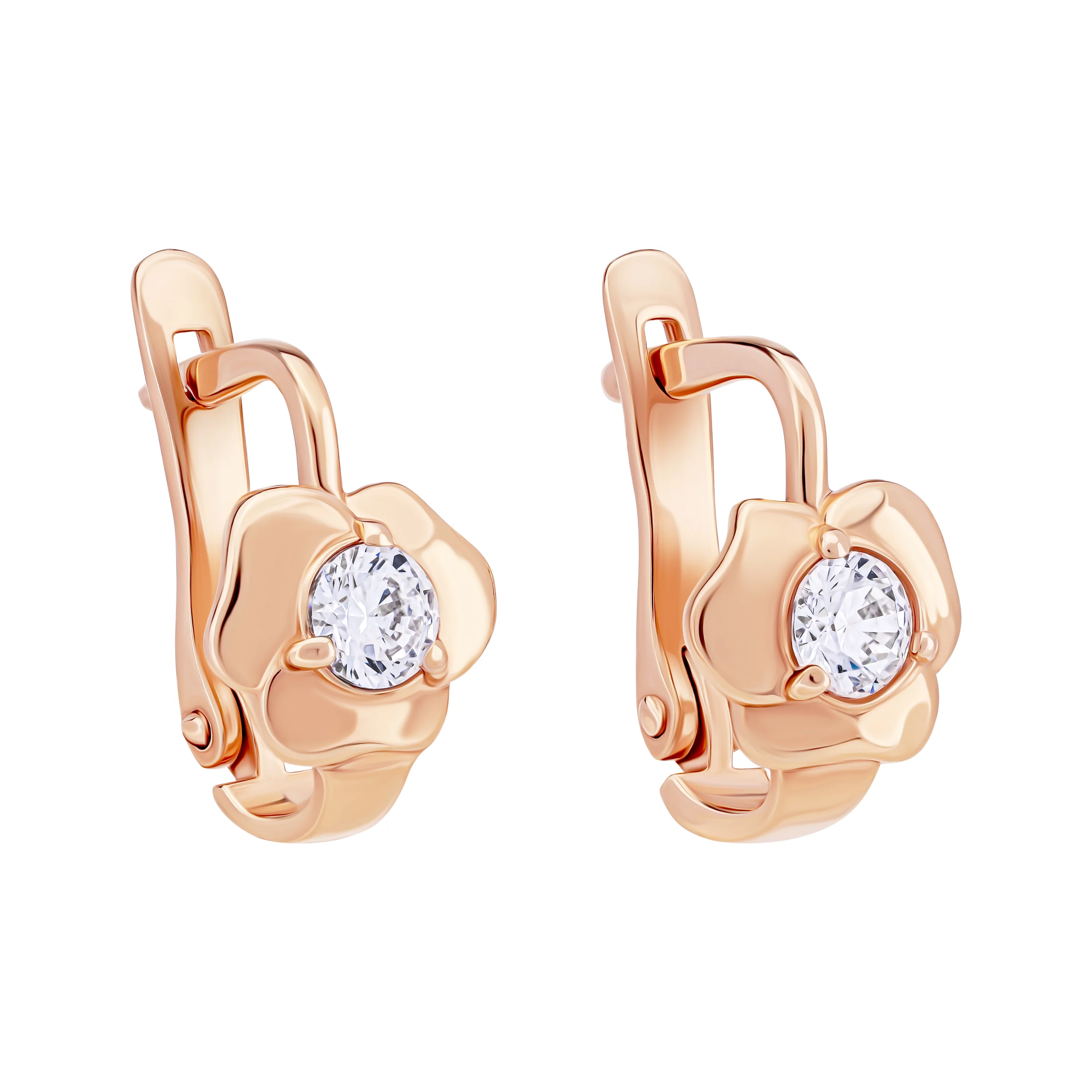 Сережки-гвоздики у формі квіточки з червоного золота з фіанітом - 1723157