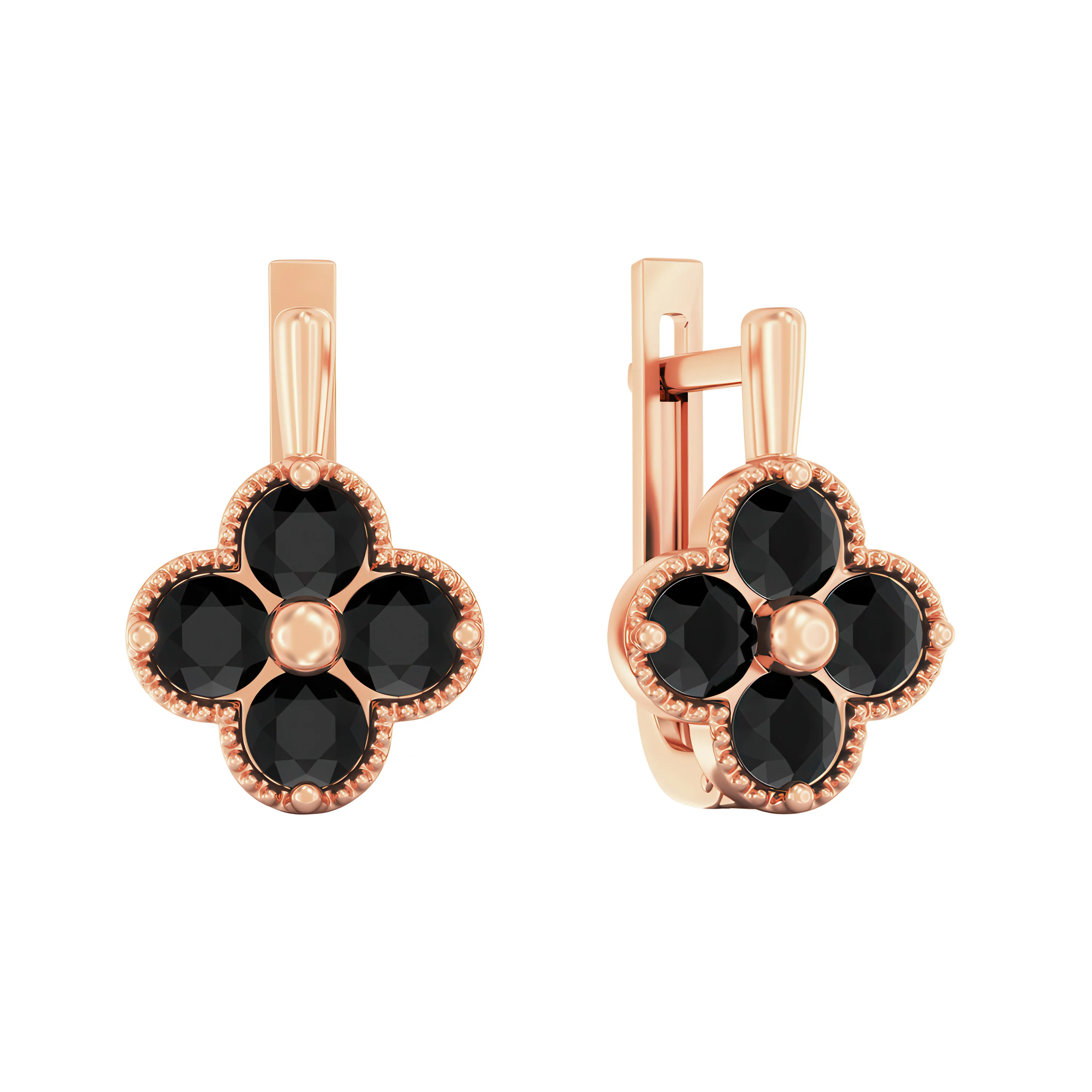 Елегантні сережки "Конюшина" у червоному золоті з фіанітами - 2118501