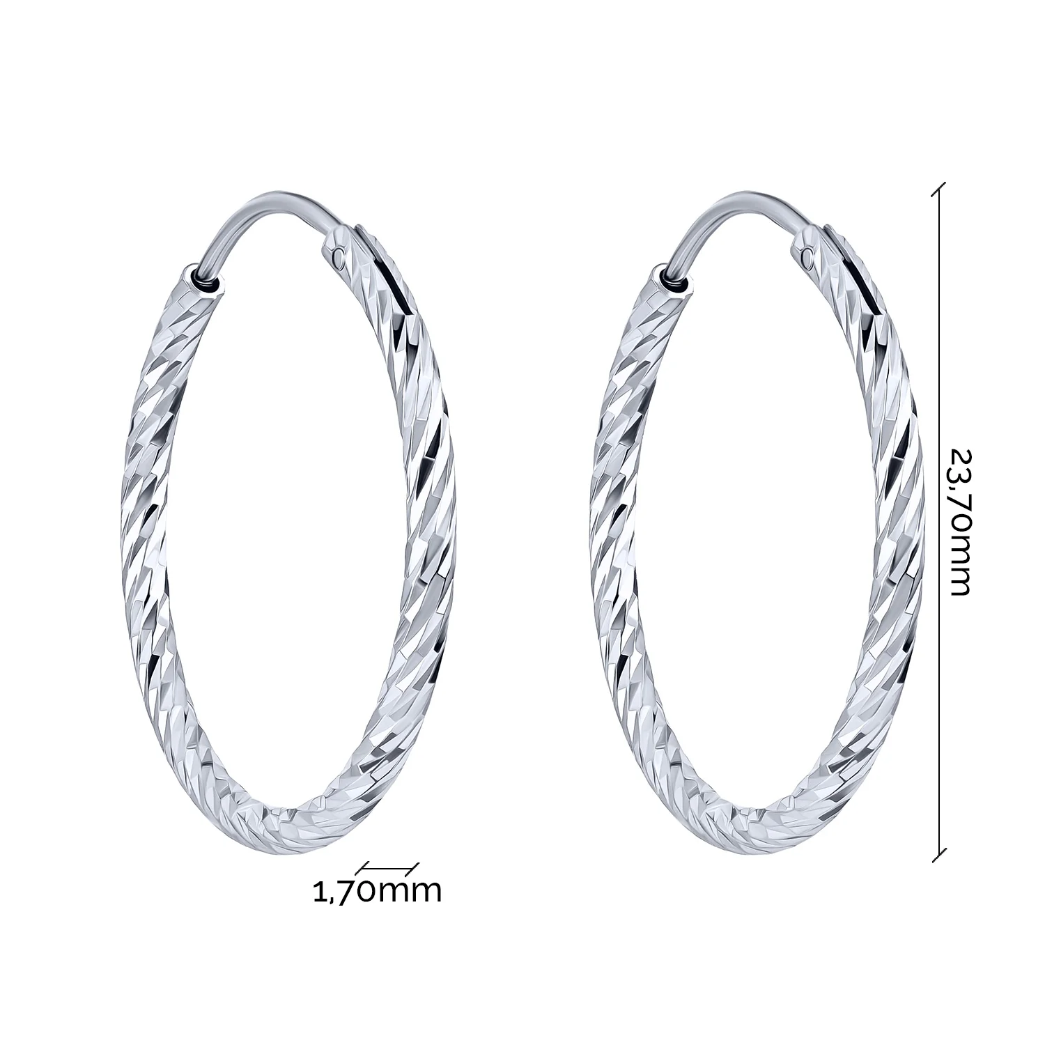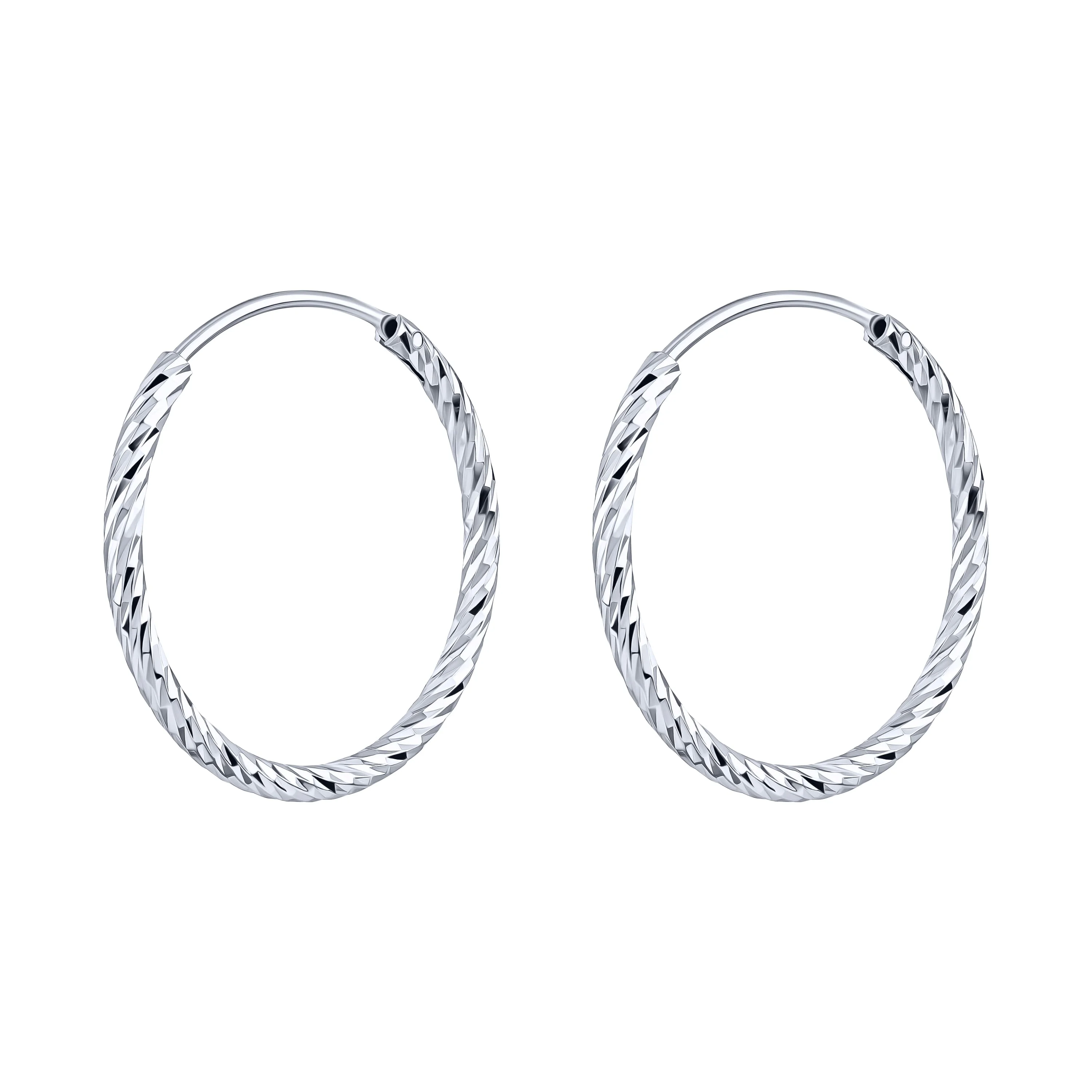Елегантні сережки-кільця з алмазною гранню у сріблі - 1989167