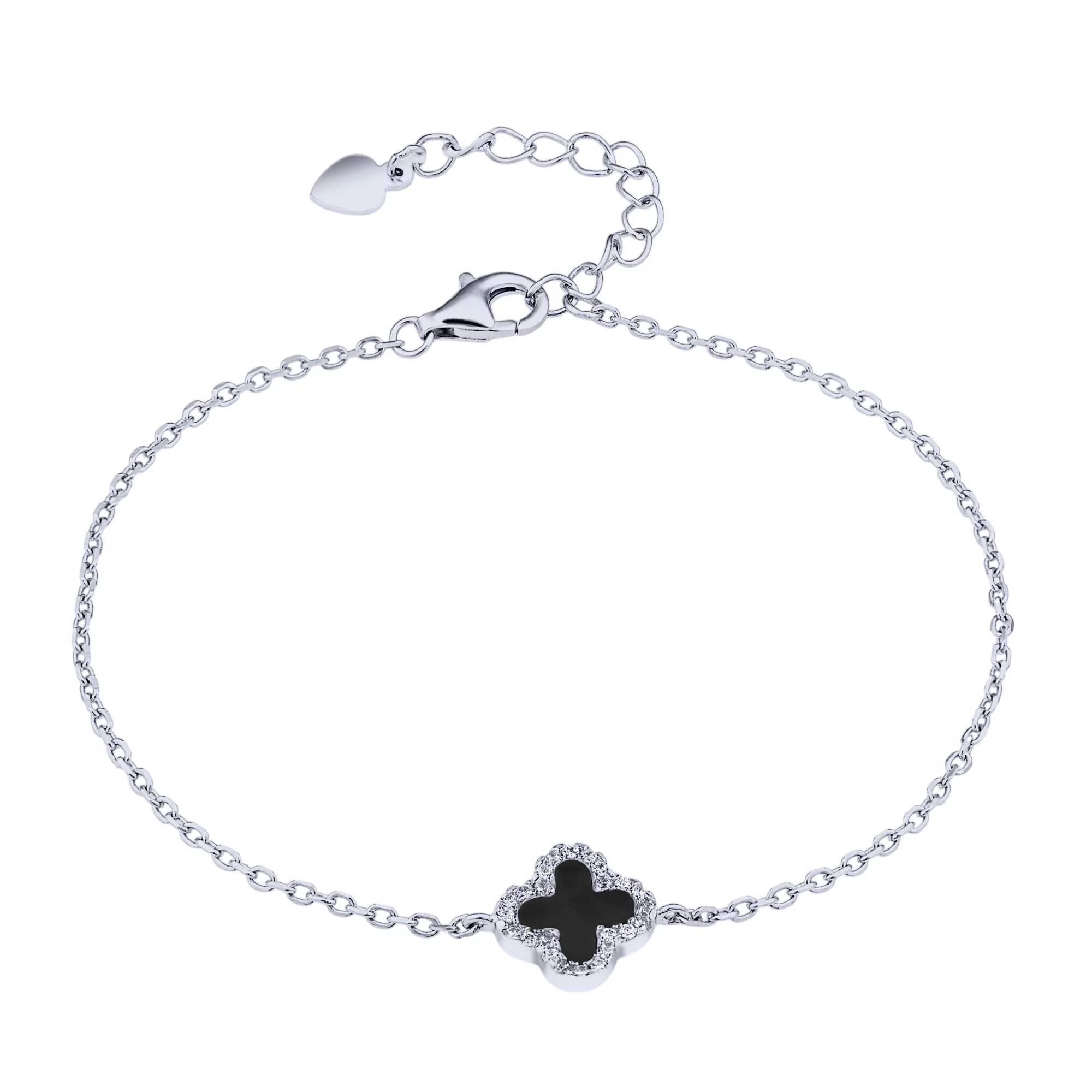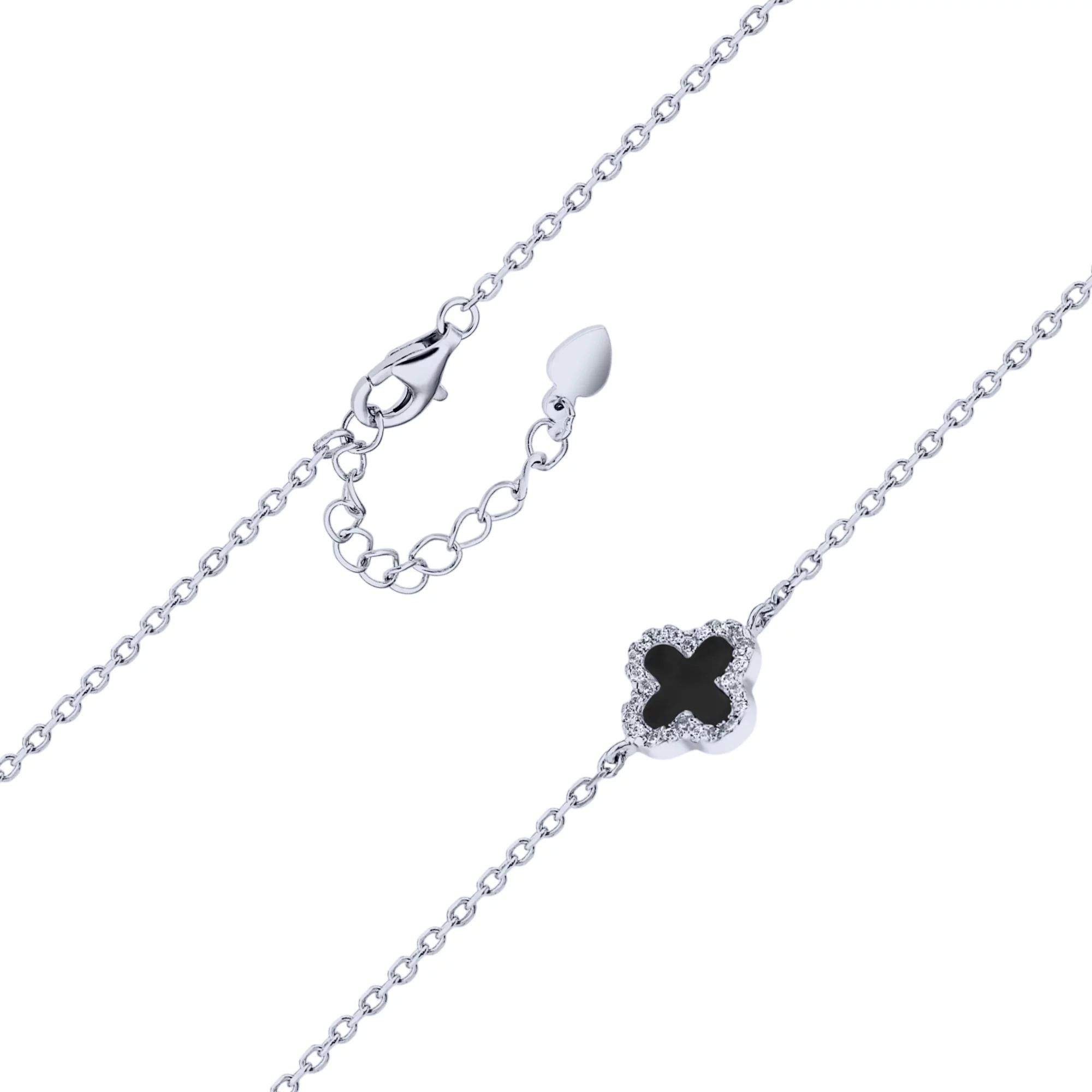 Елегантний браслет з підвісами "Конюшина" з срібла з оніксом та плетінням якір та шопард - 1961614