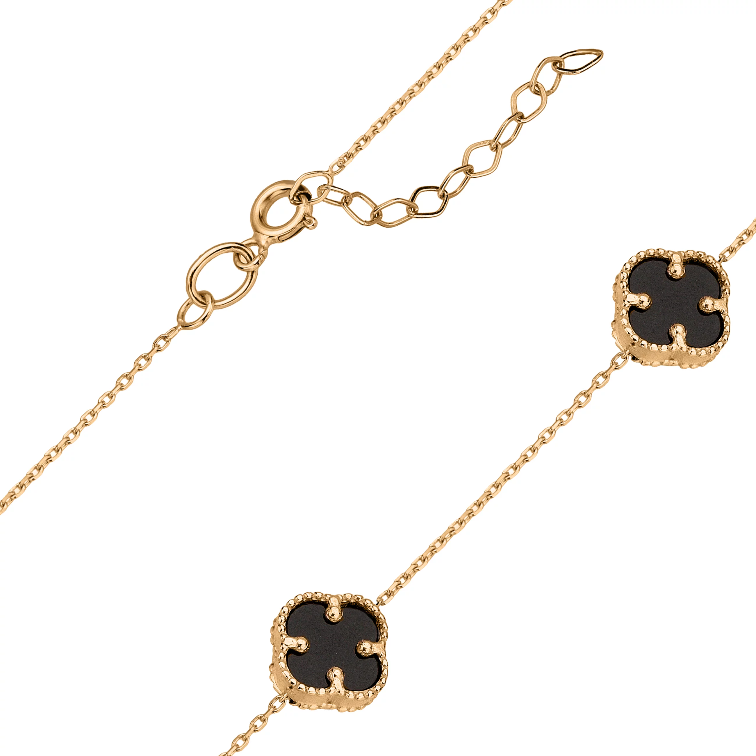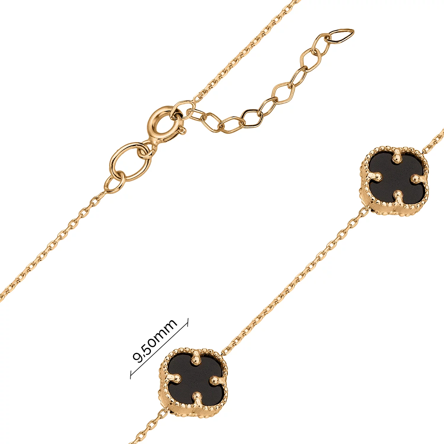 Браслет з червоного золота "Конюшина" з оніксом і перламутром - 1761586