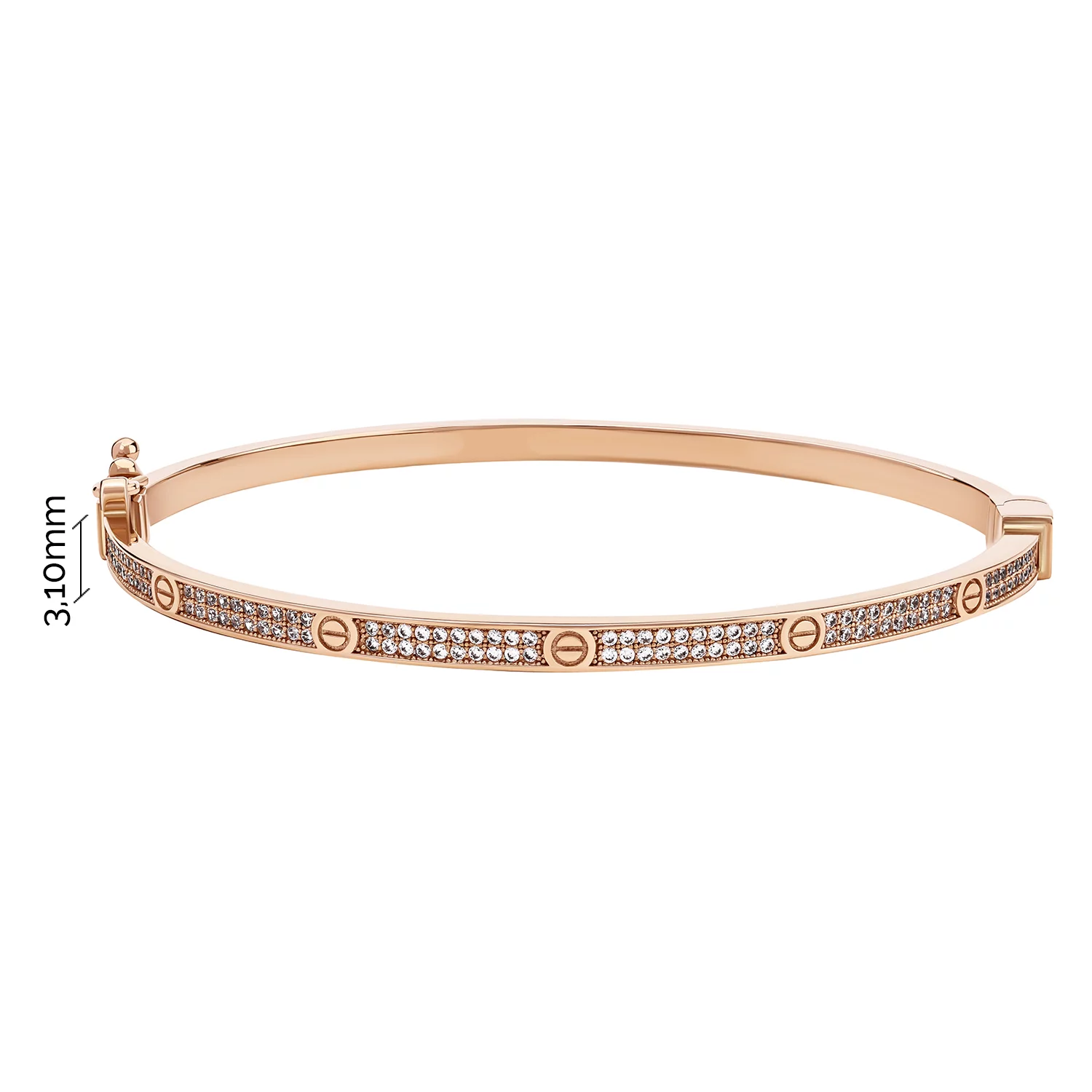 Браслет-жорсткий у червоному золоті "Змія" з розсипом фіанітів - 1870010