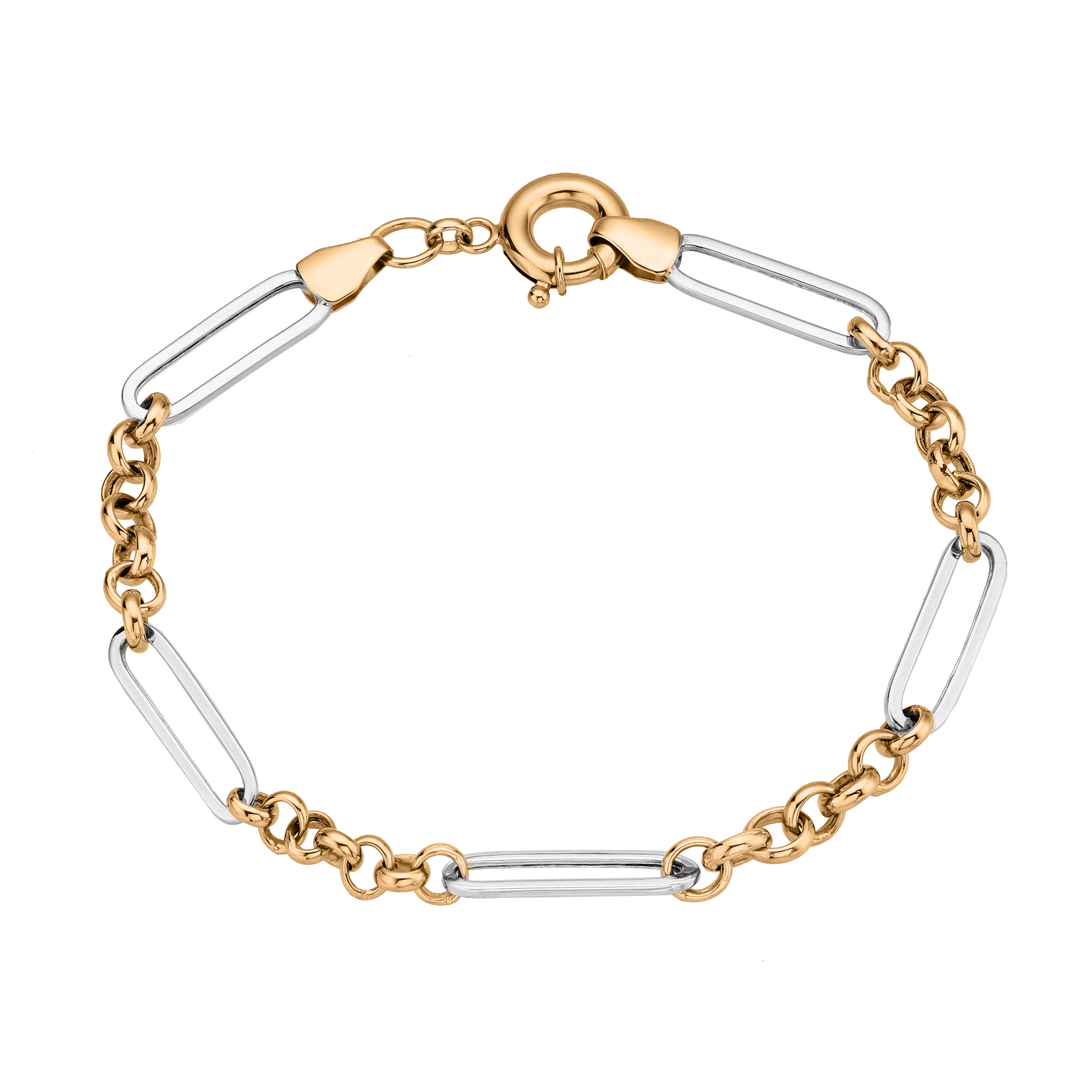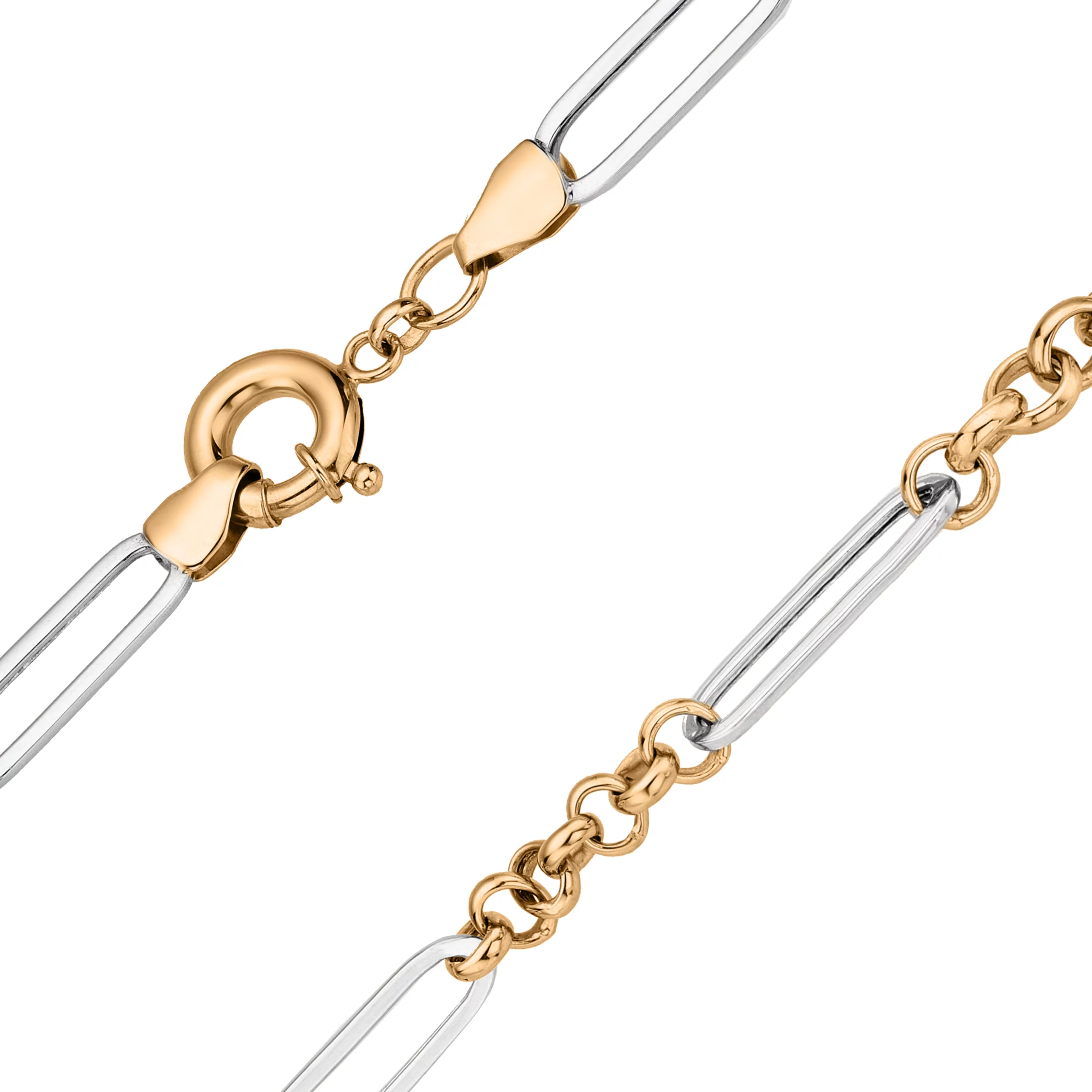 Елегантний браслет з плетінням шопард та якір з комбінованого золота - 1857451