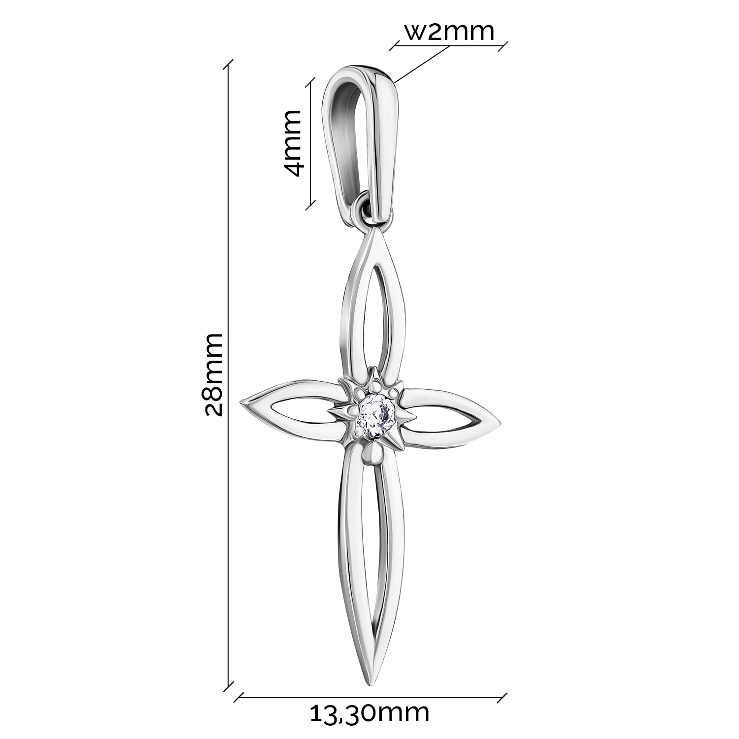 Двосторонній хрест із червоного золота з чорними і білими фіанітами - 466174