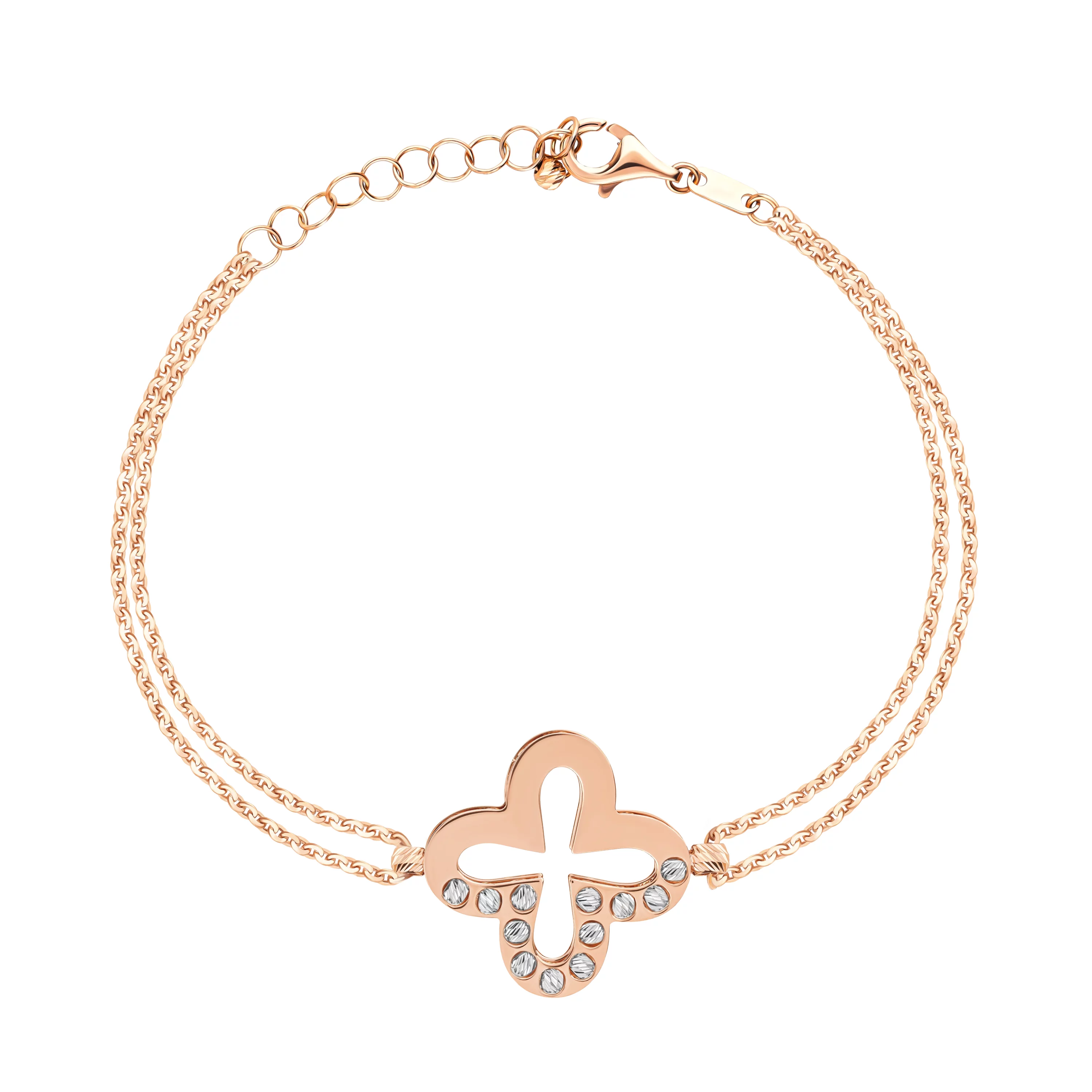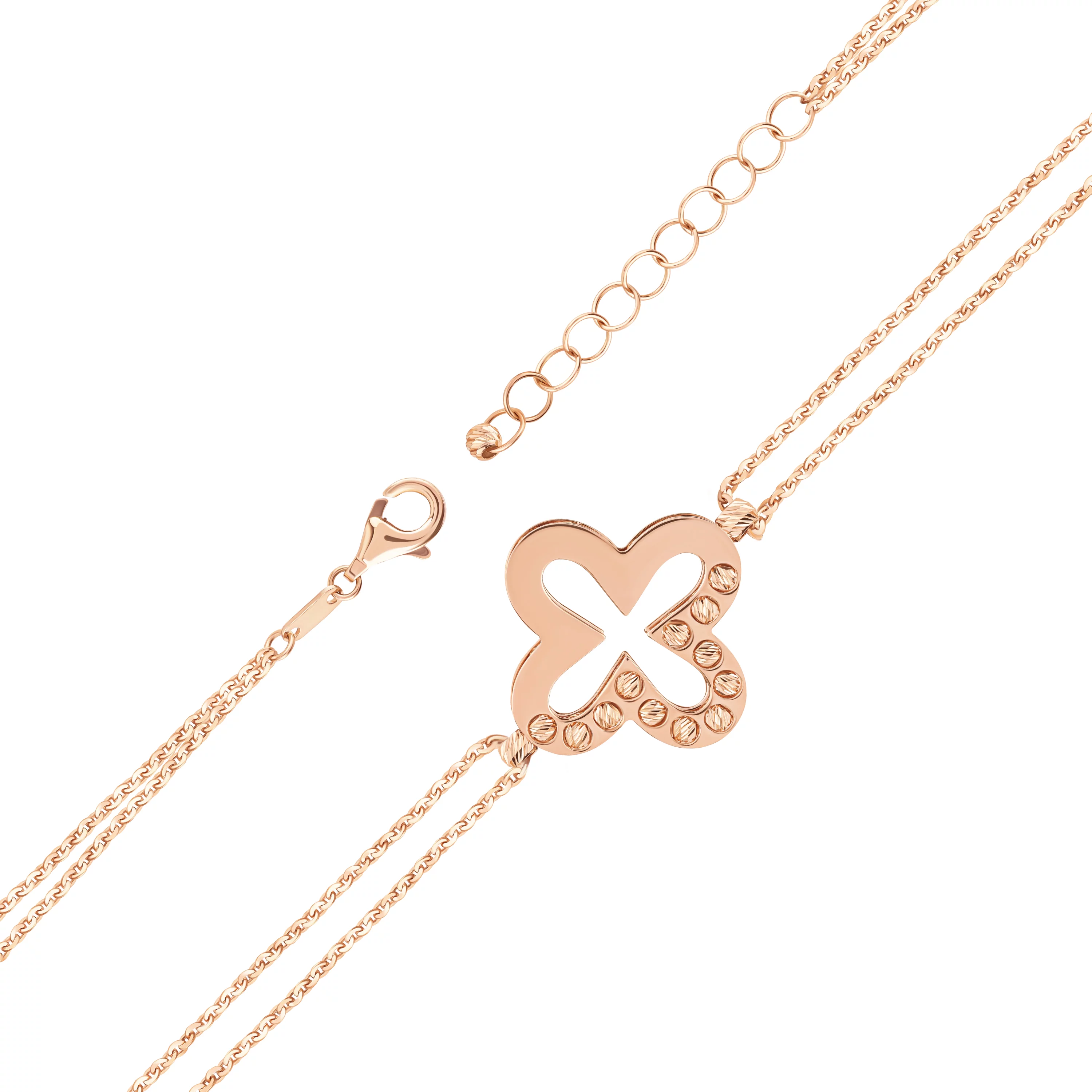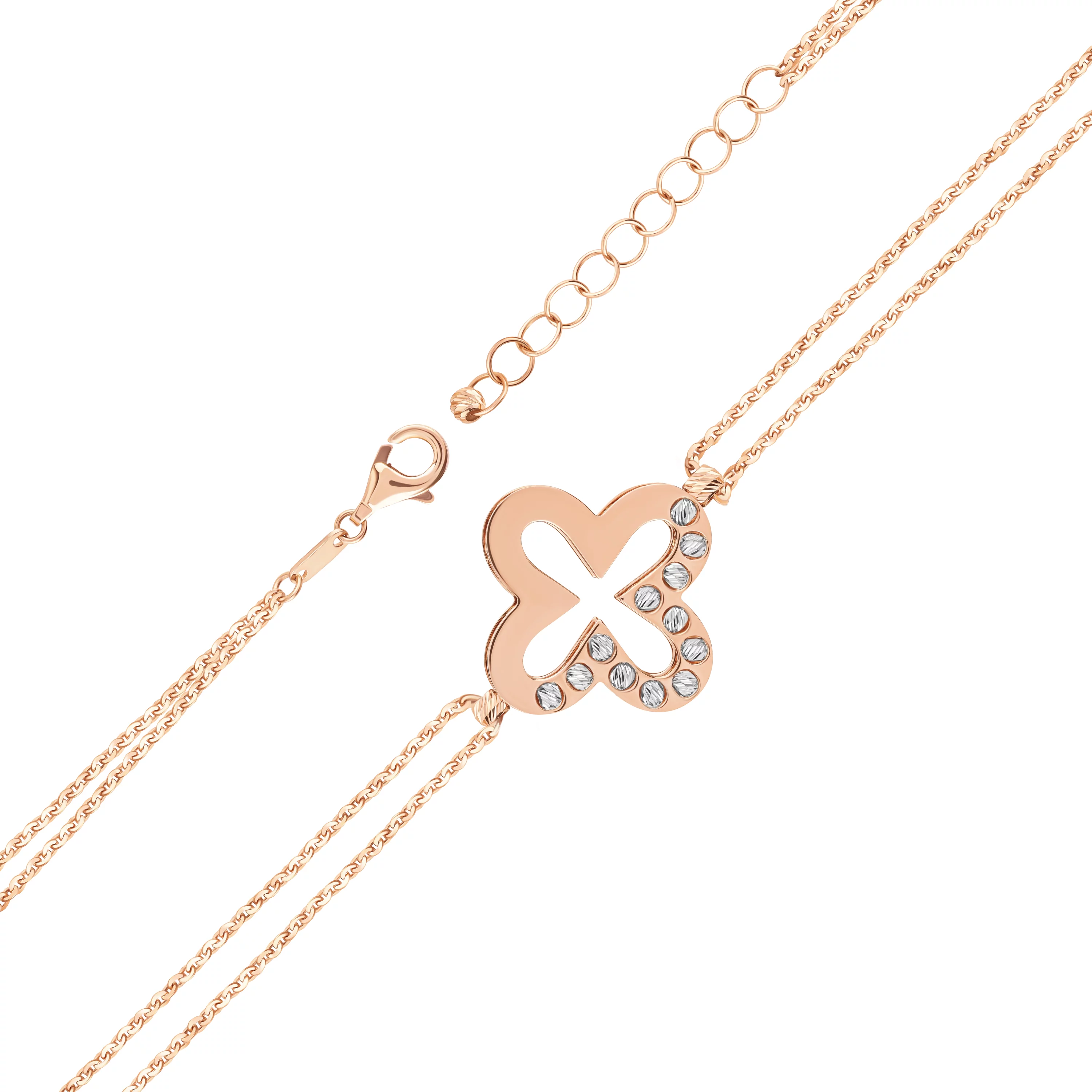 Браслет із комбінованого золота "Метелик і Квіточка" плетіння якір - 1526701