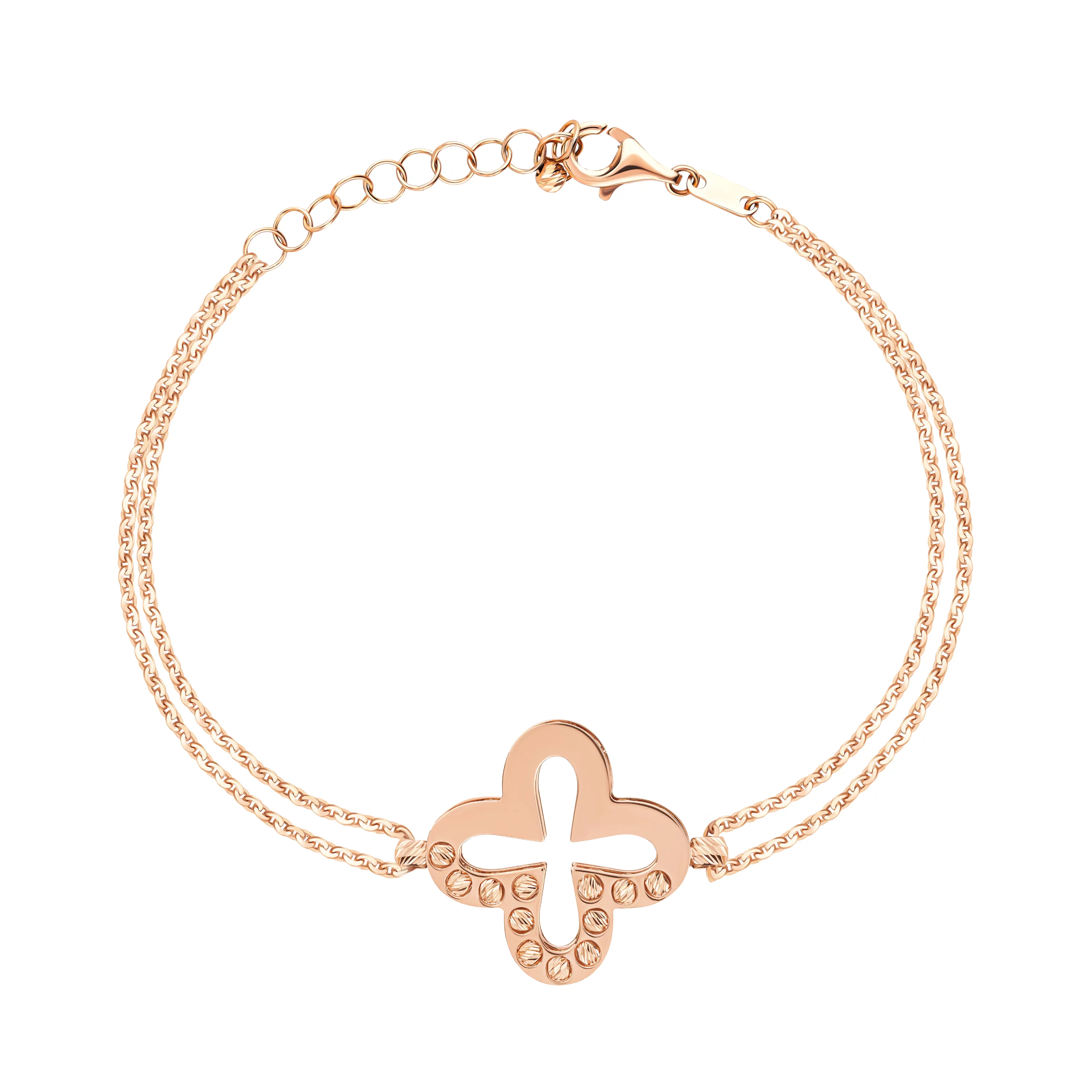 Браслет у мінімалістичному стилі з алмазною гранню в червоному золоті та якірним плетінням - 1858739