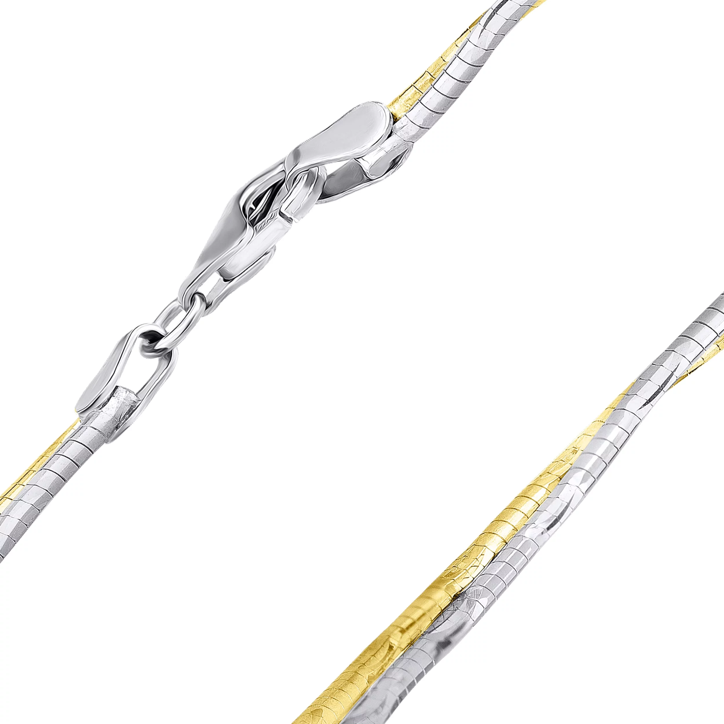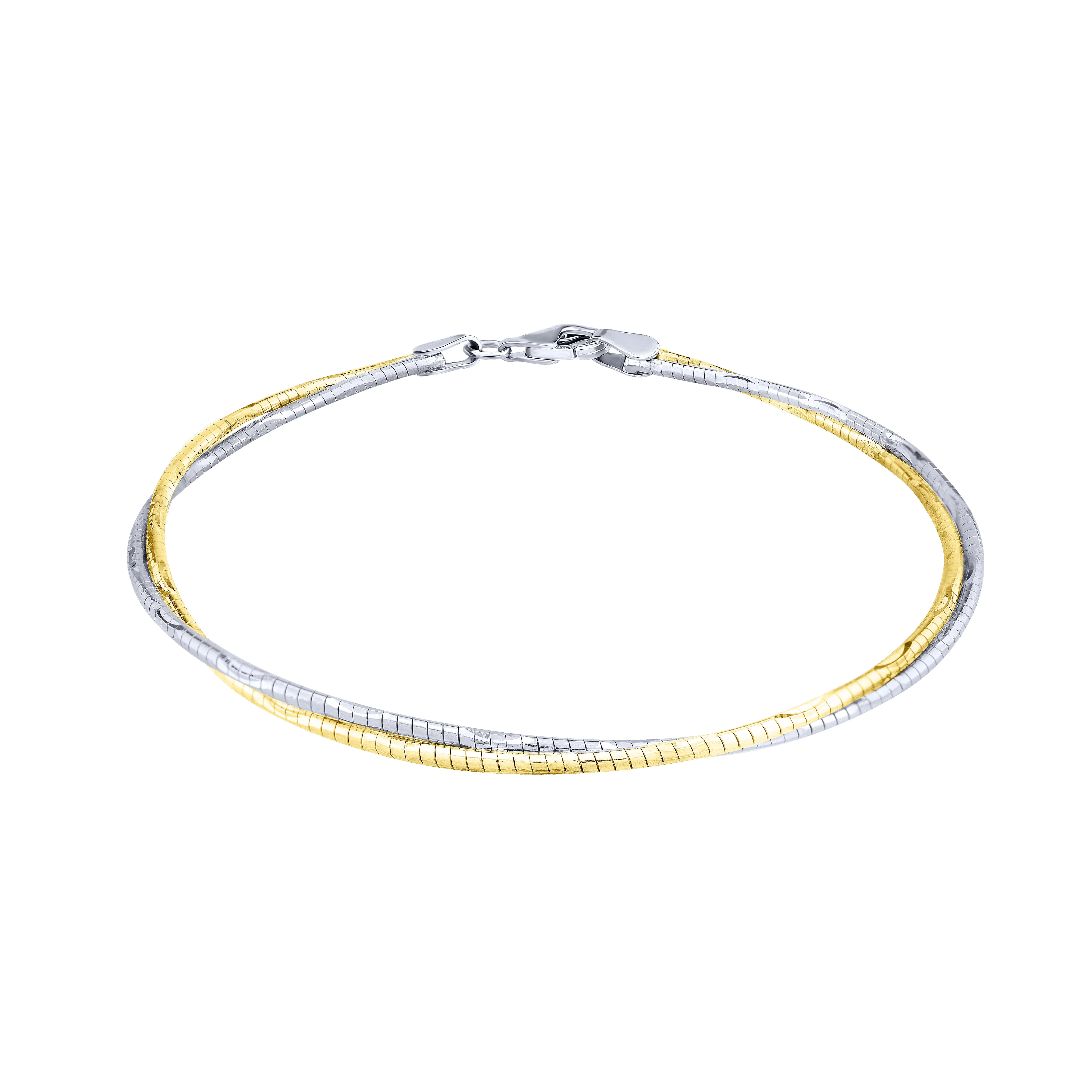 Елегантний подвійний браслет з срібла з комбінованим родіюванням та з плетінням снейк - 1957338