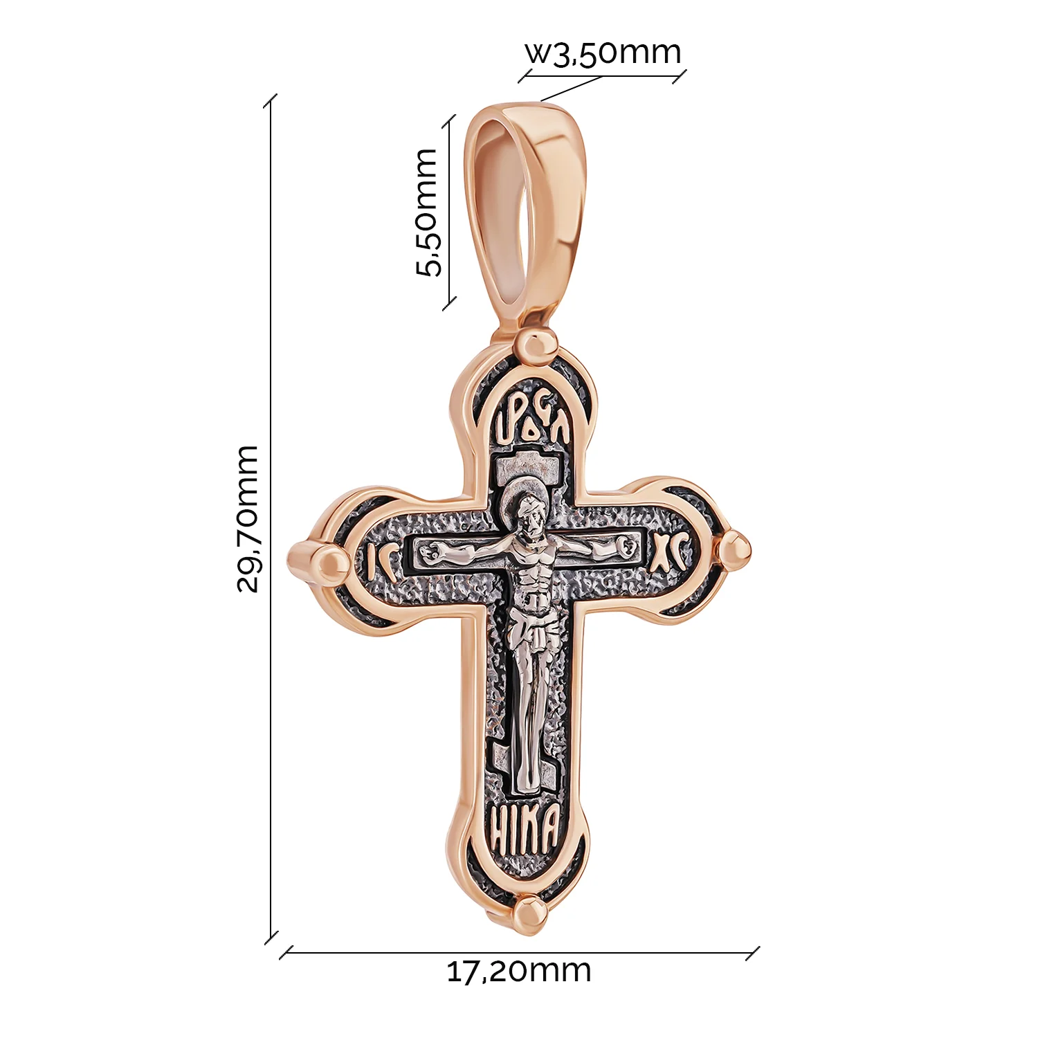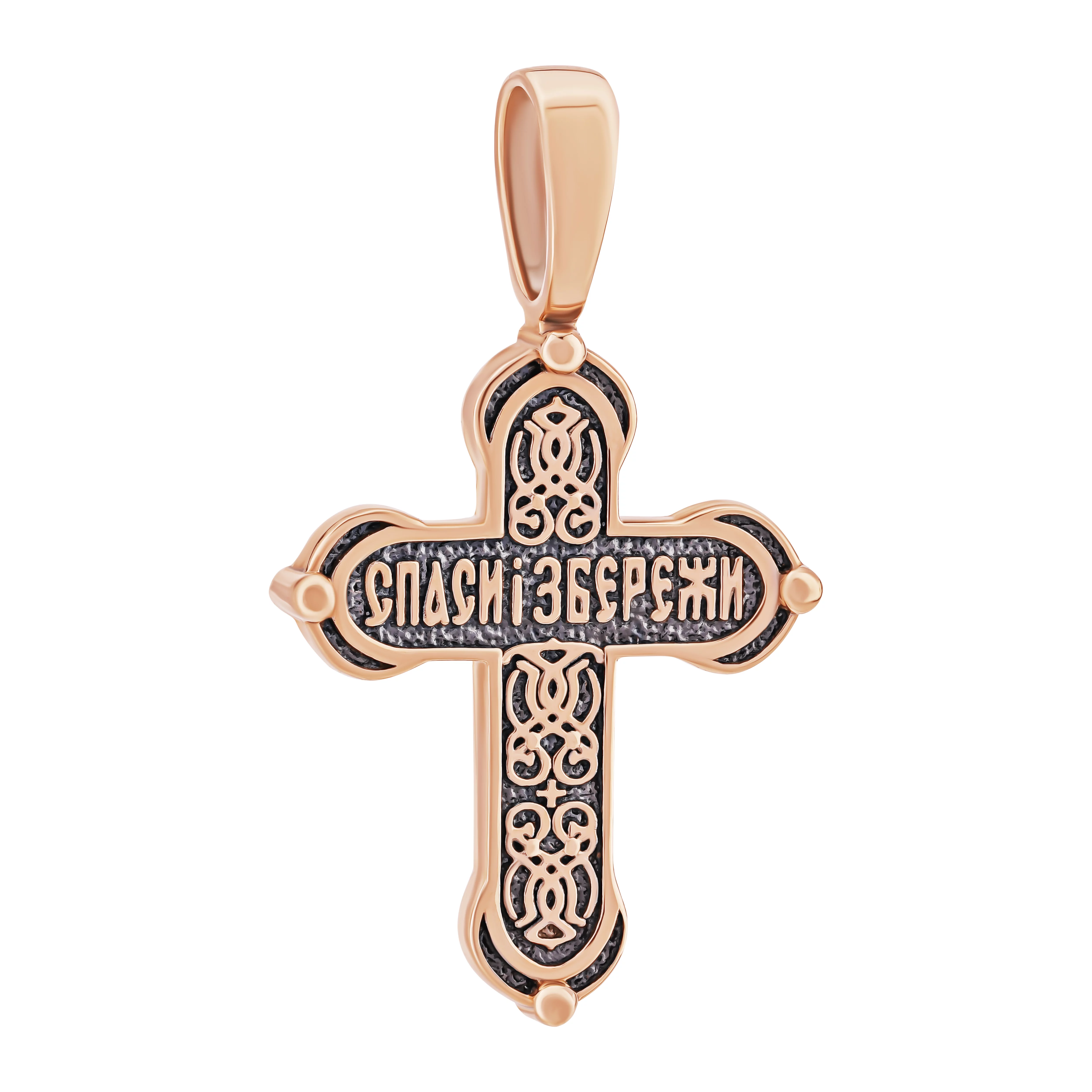 Елегантний хрестик "Ісус Христос" з червоного золота з чорнінням - 1916327