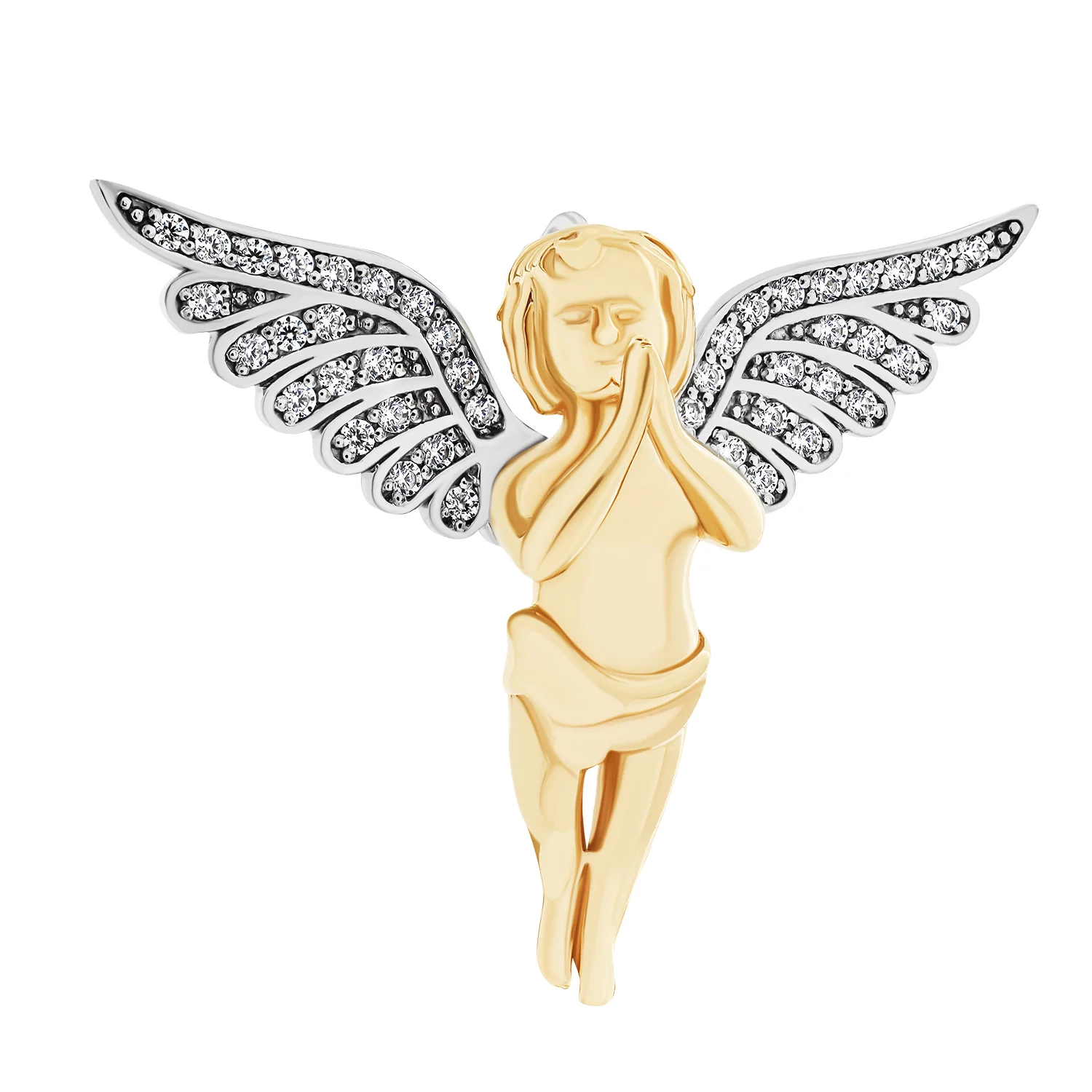 Підвіс "Янгол з серцем" з червоного золота з розсипом діамантів - 1819289