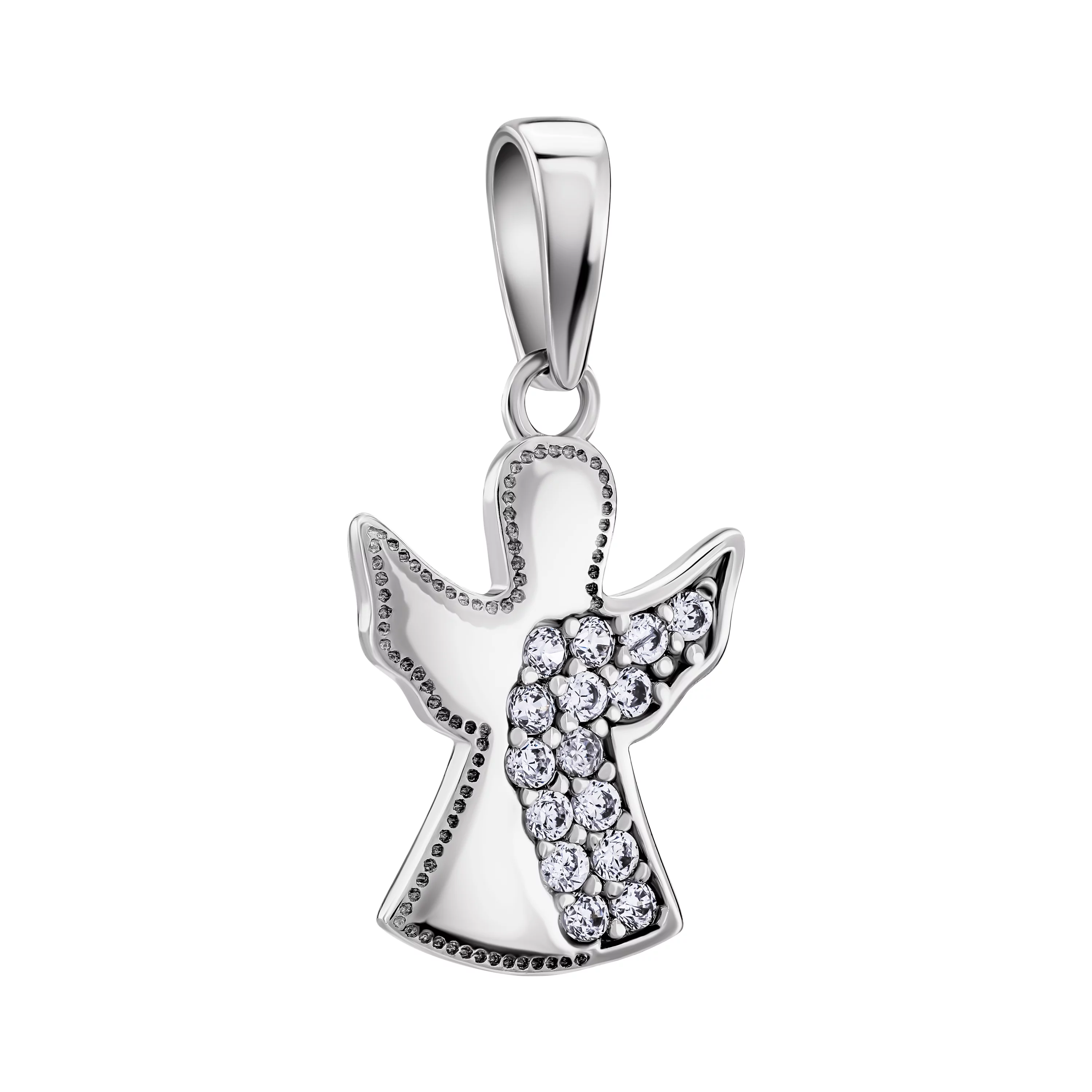 Елегантний підвіс "Янгол" у білому золоті з фіанітами - 1965113