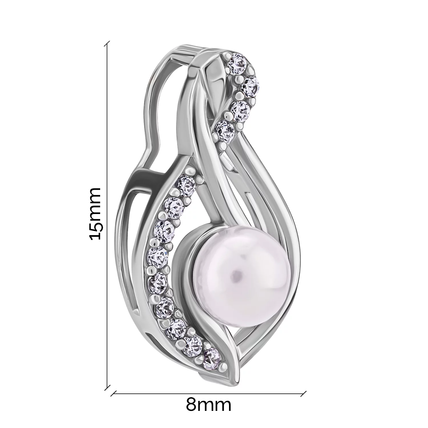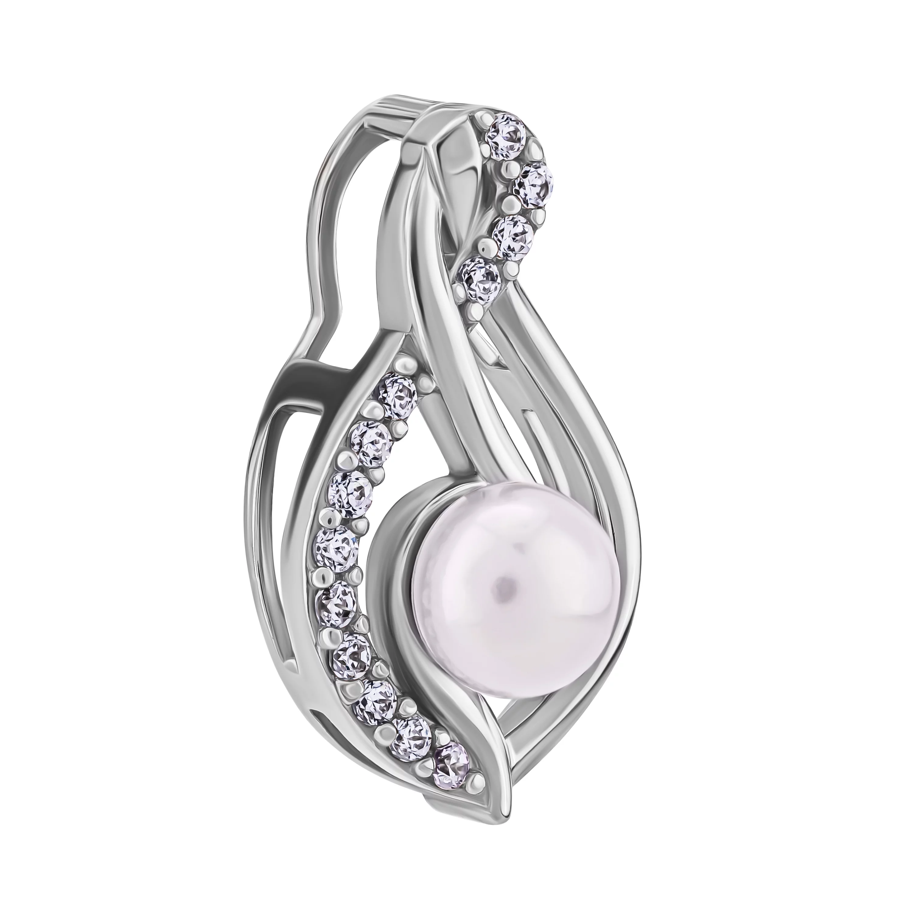 Стильний підвіс "Флора" у білому золоті з емаллю, перлиною та фіанітами - 1938503