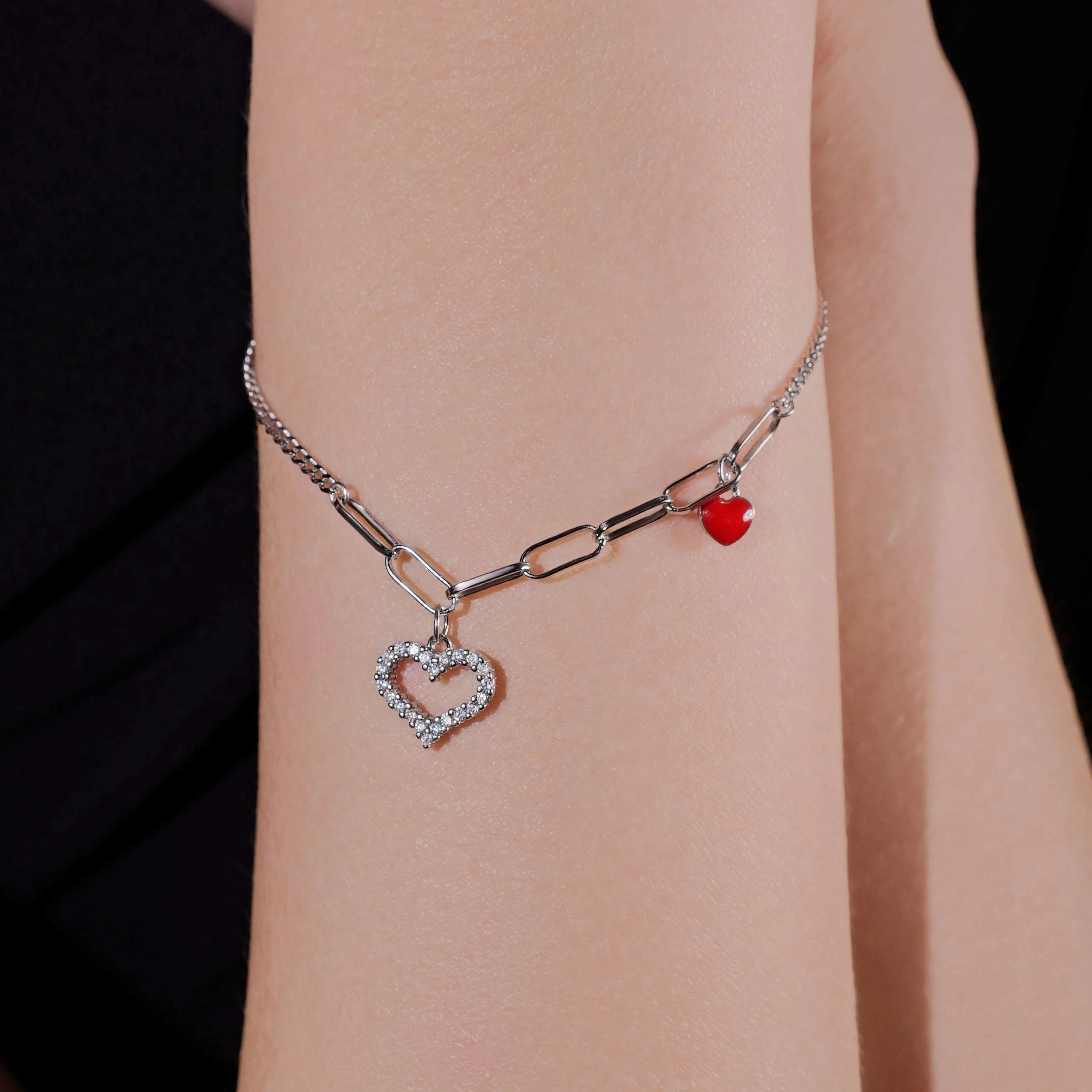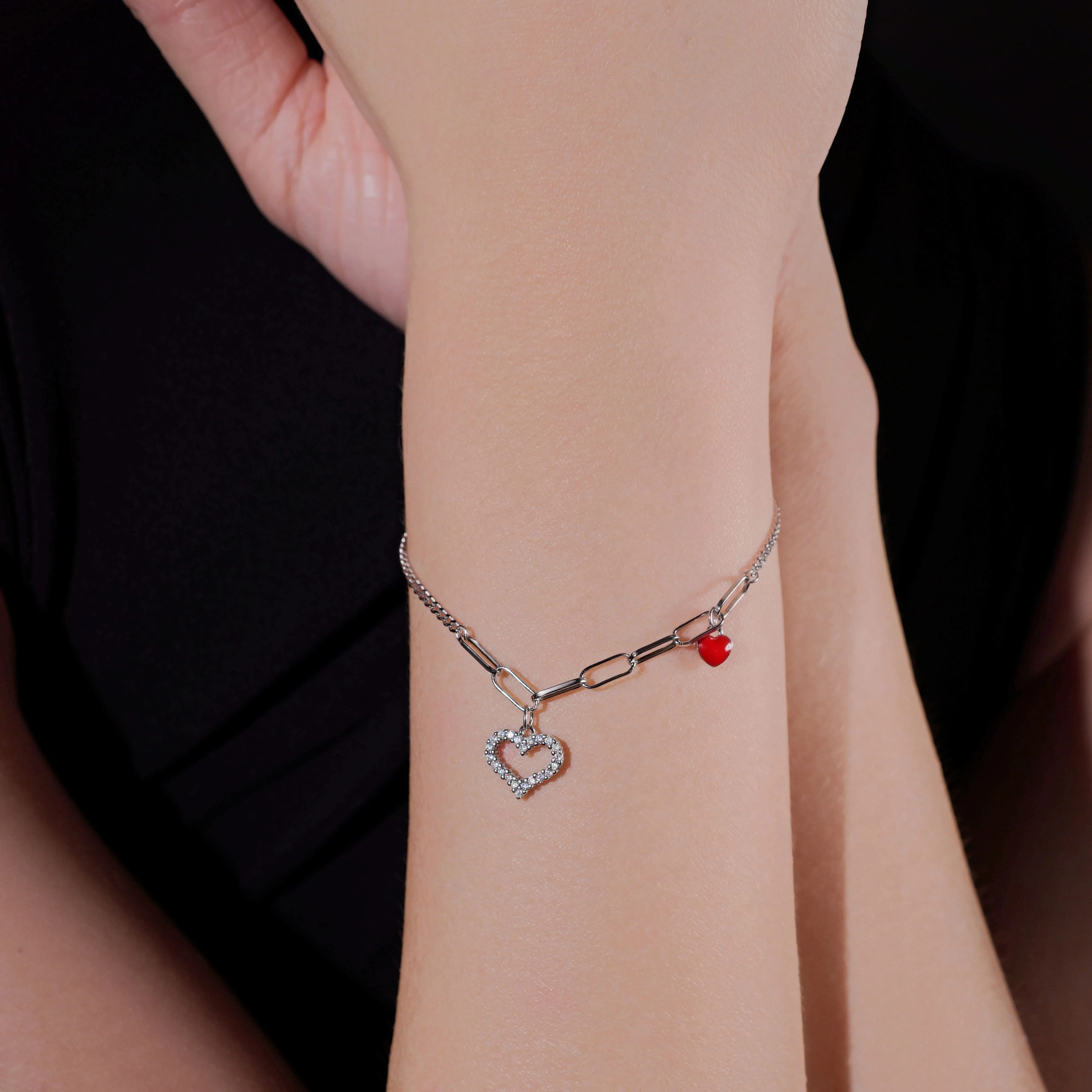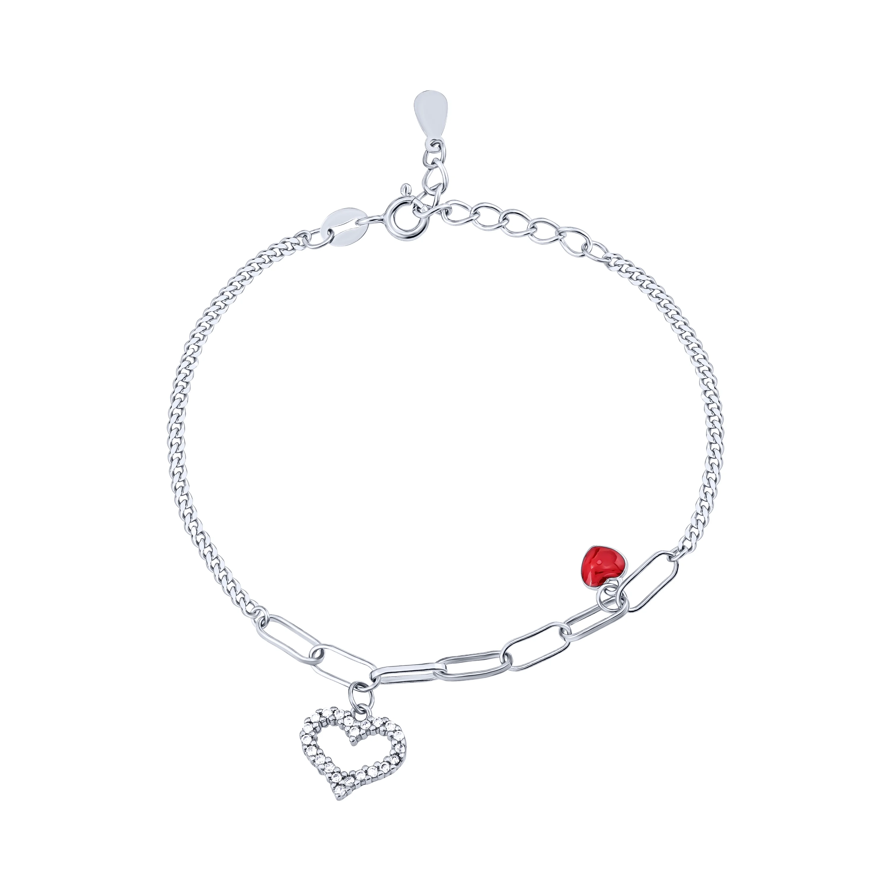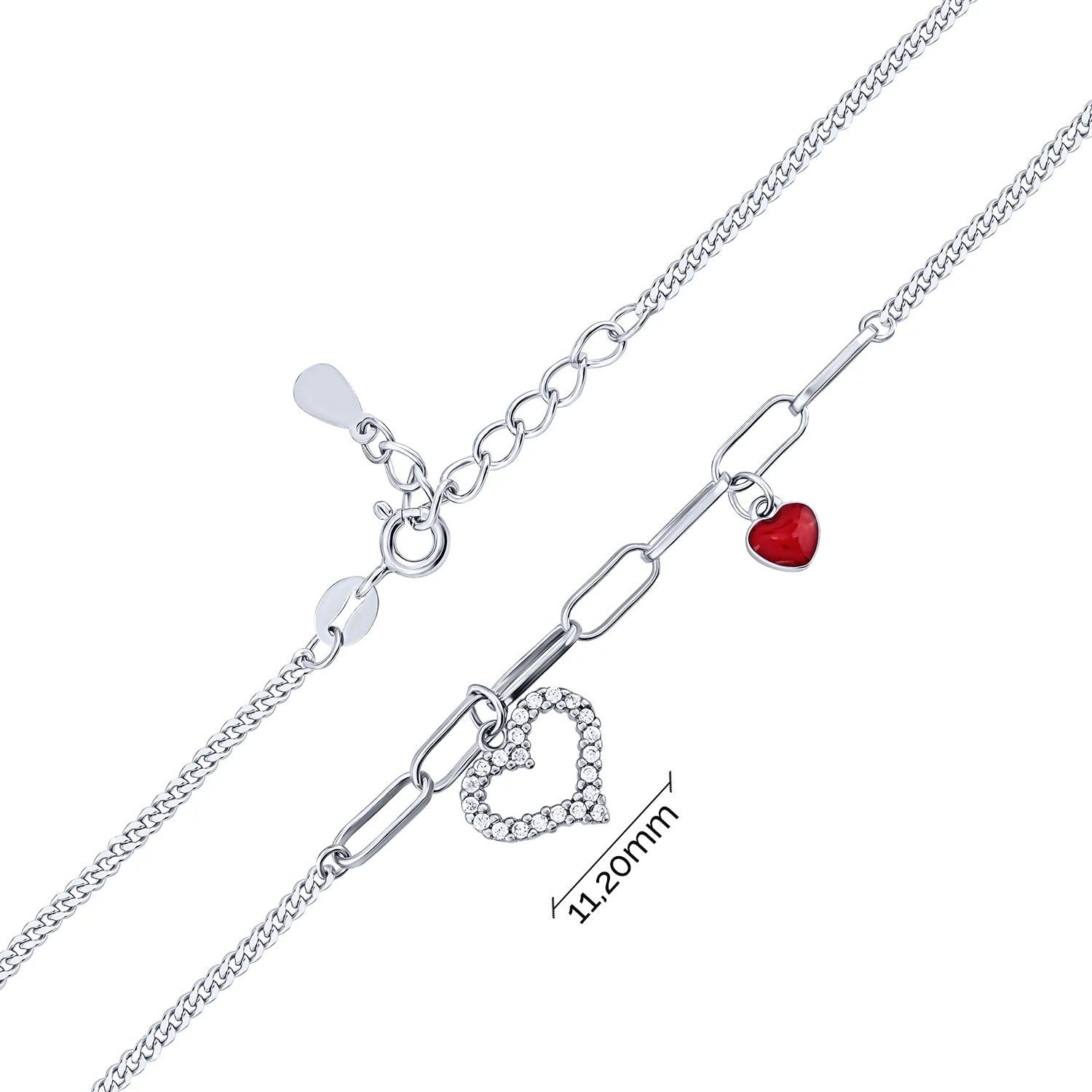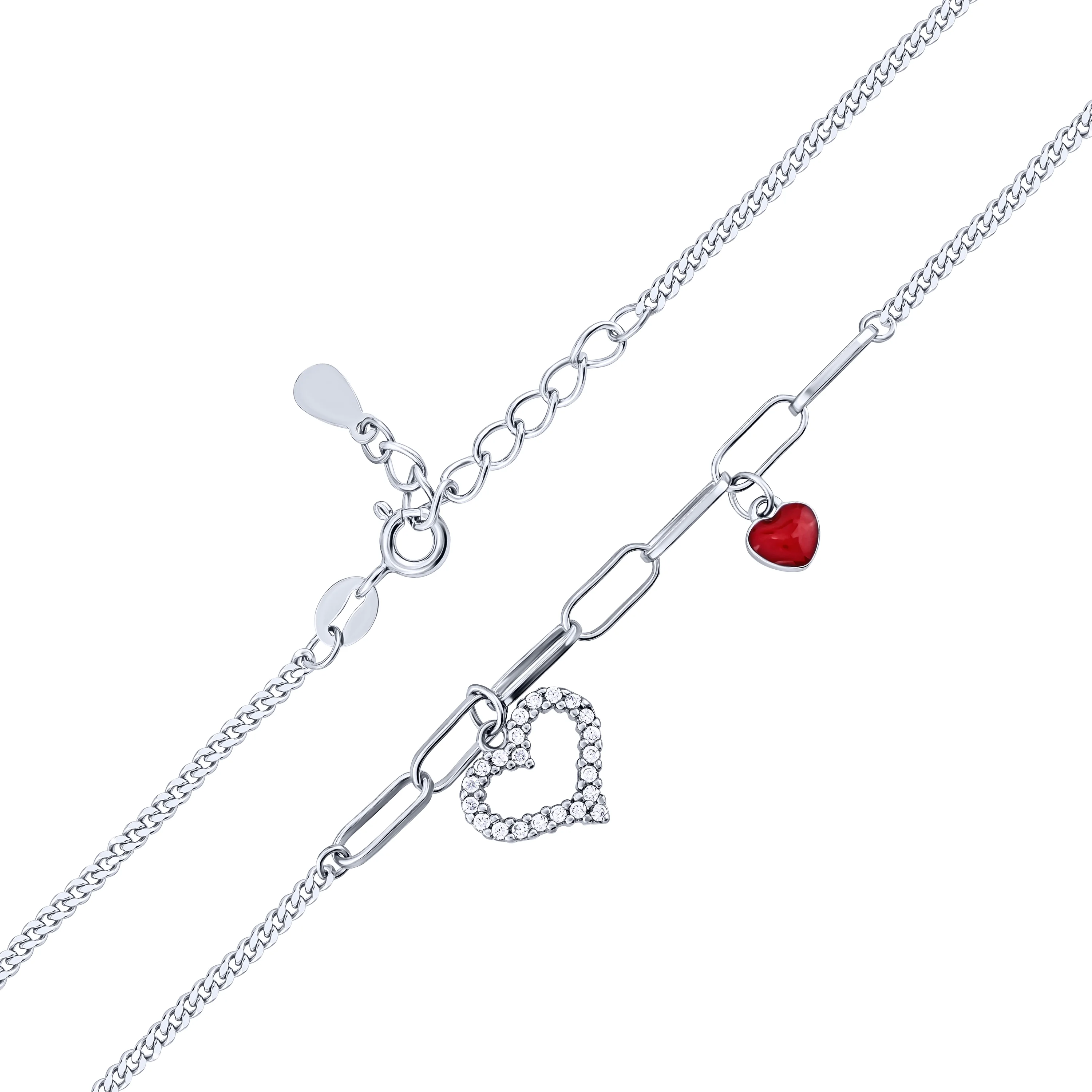 Срібний браслет з підвісами "Сердечка" з фіанітами плетіння якір - 1612545