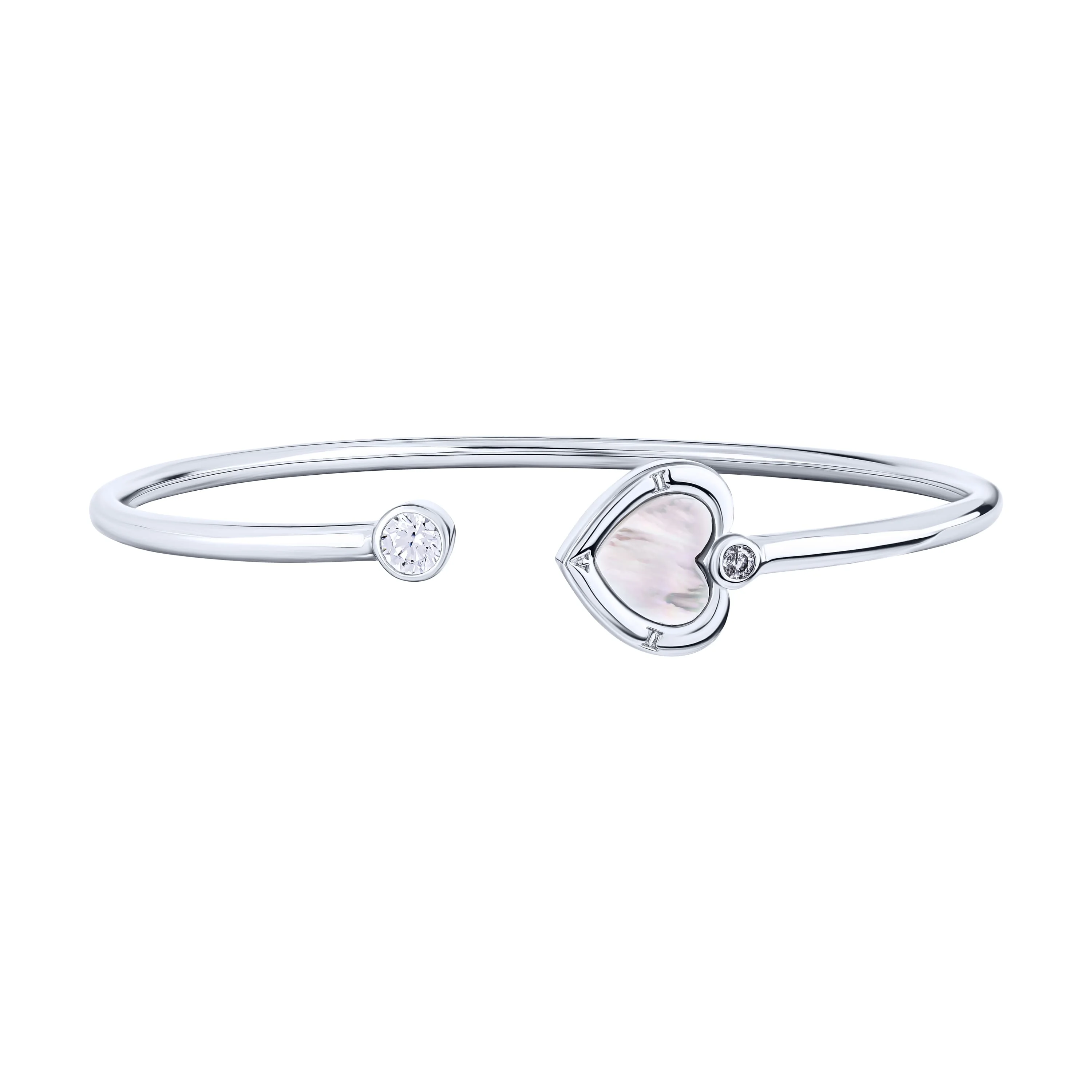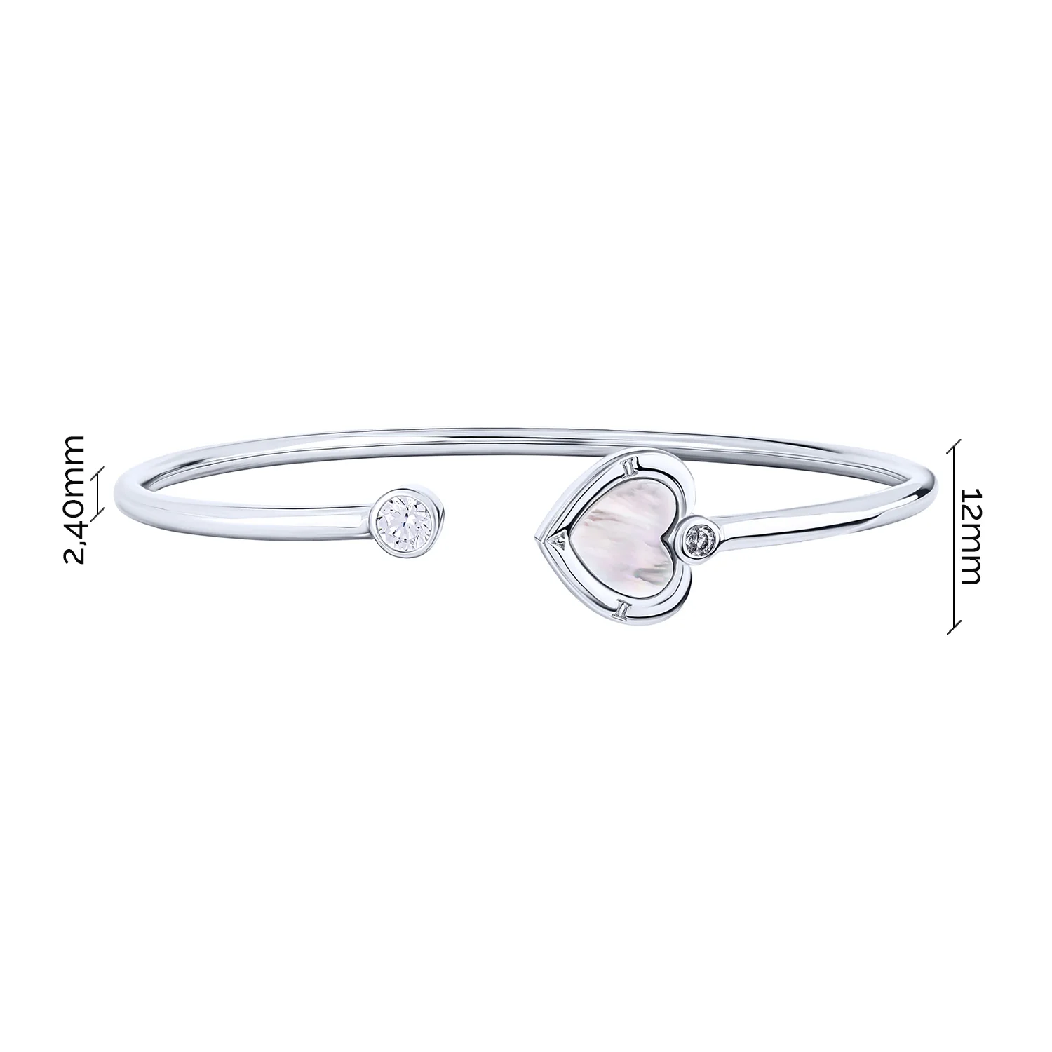Елегантний срібний жорсткий браслет "Серце" з перламутром та фіанітами - 1982537