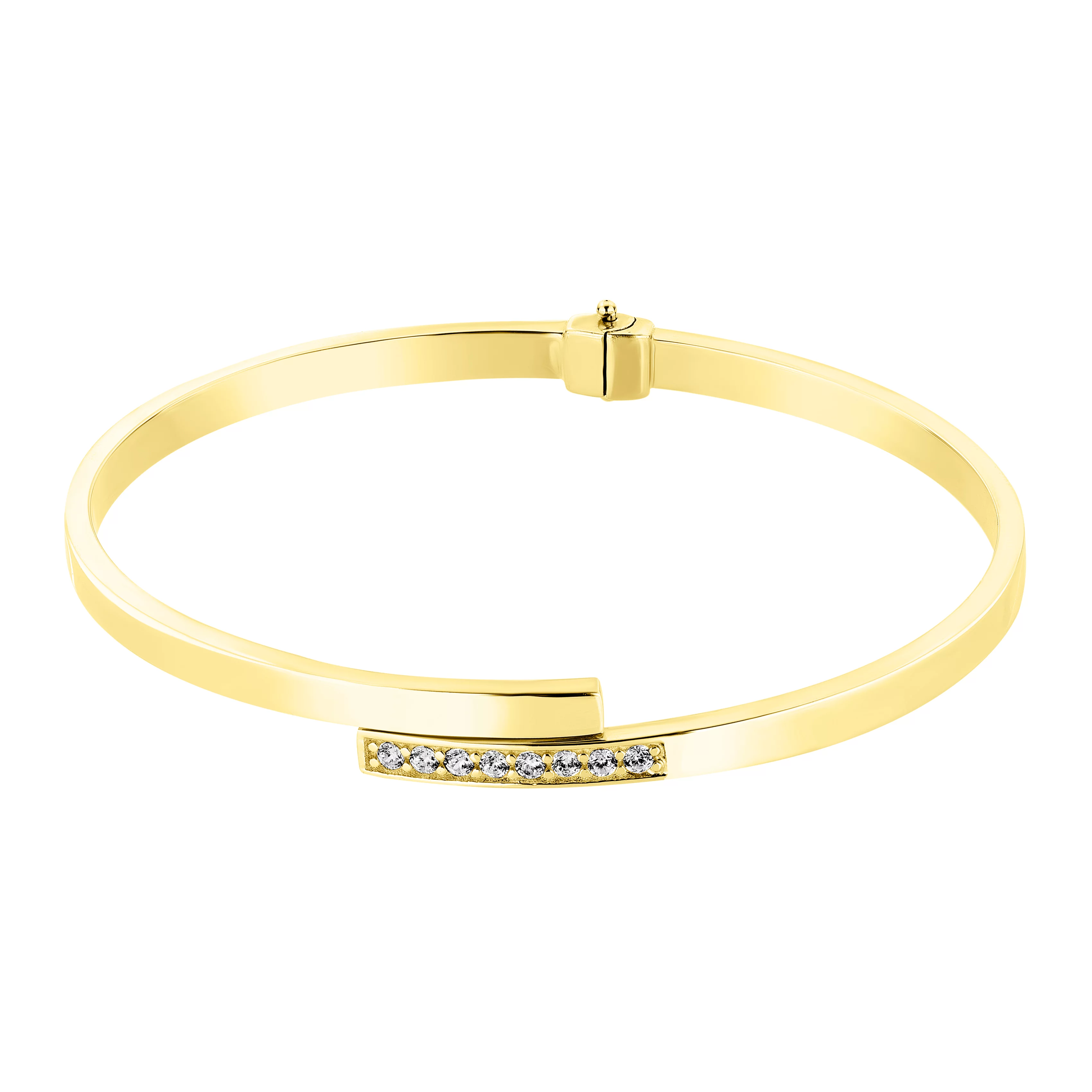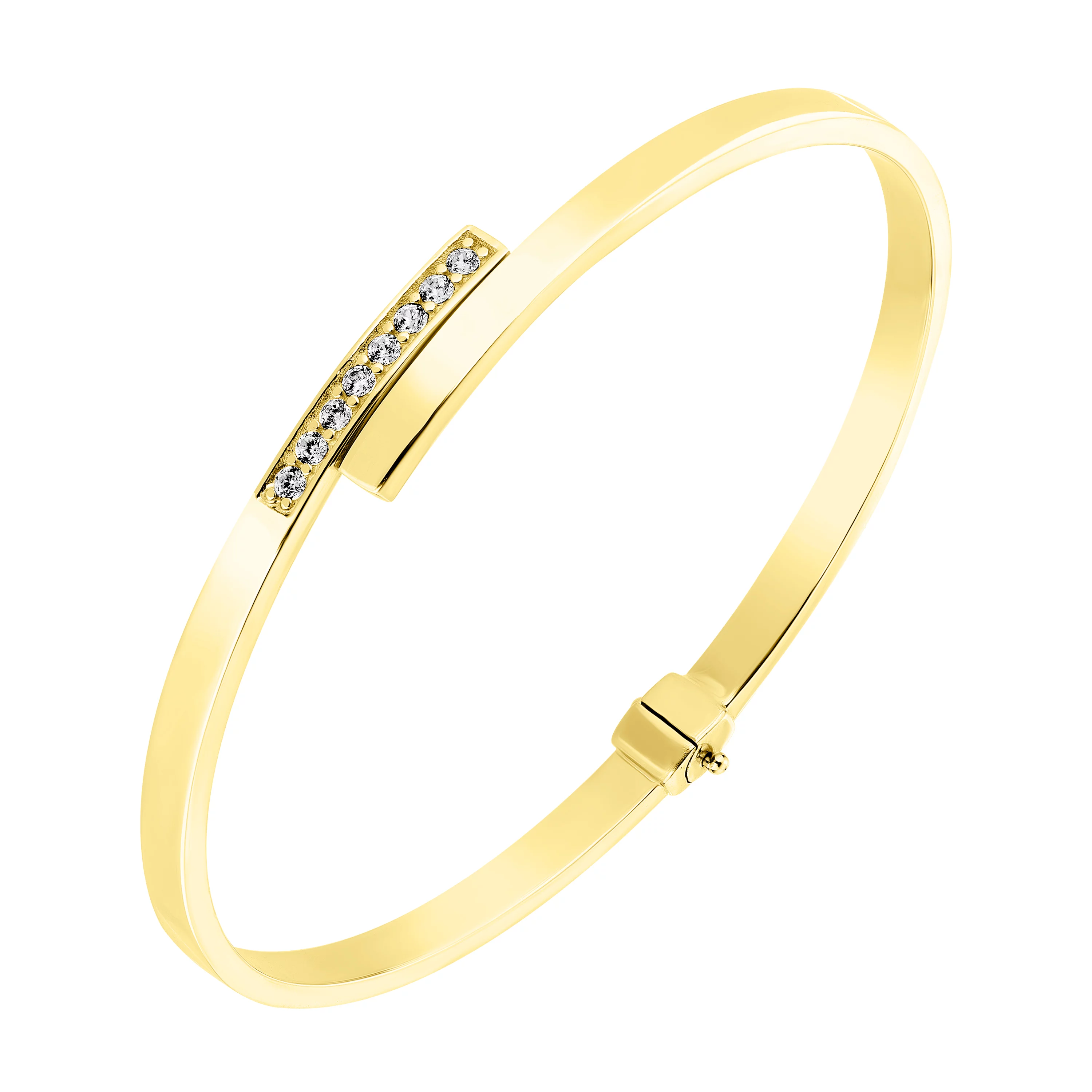 Елегантний жорсткий браслет "Змія" в жовтому золоті з фіанітами - 1861186