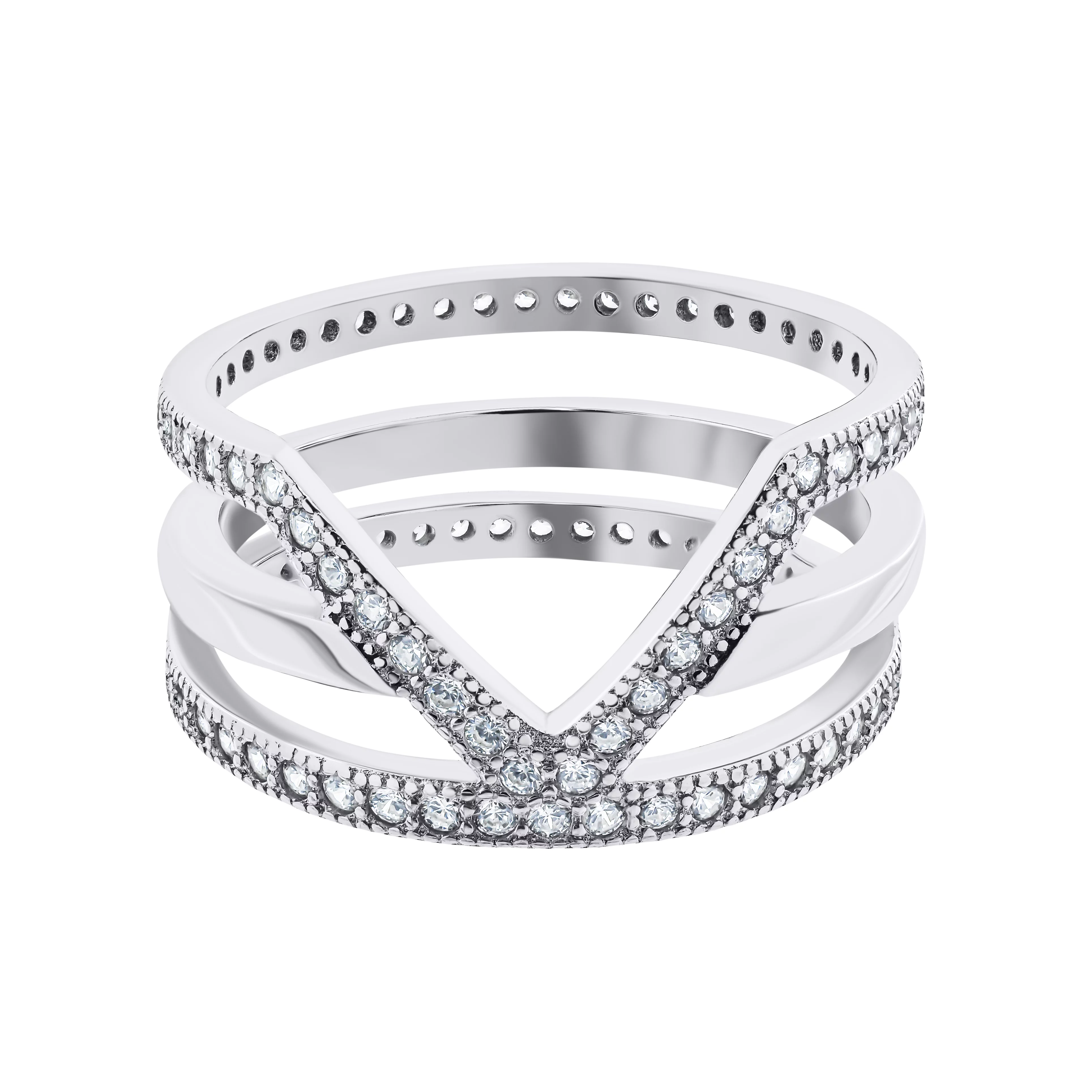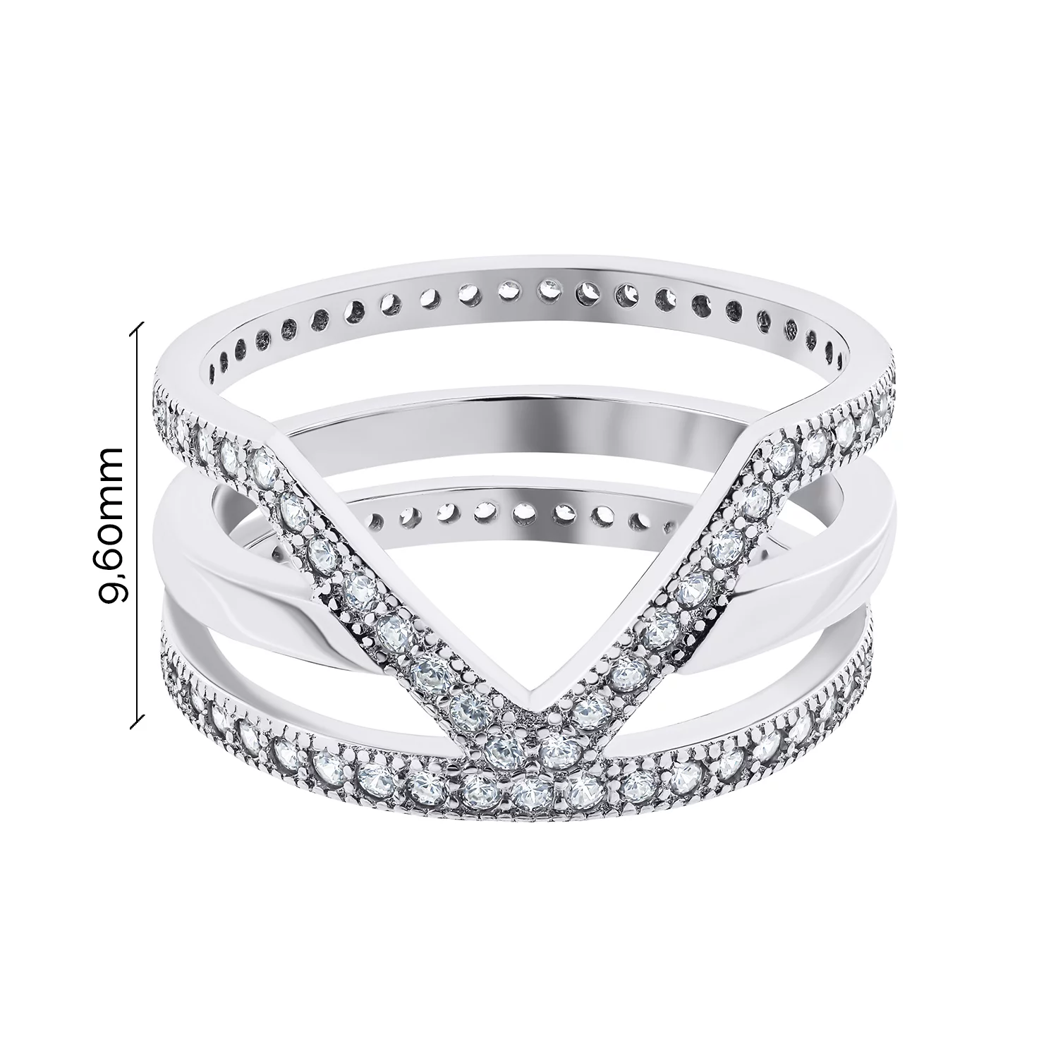 Каблучка подвійна зі срібла з фіанітами та ланцюжками на фалангу - 1528915