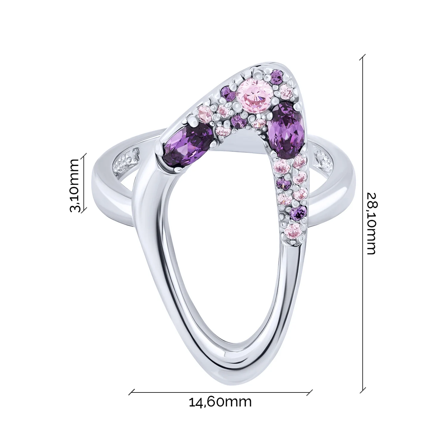 Фігурна каблучка в сріблі з фіанітами - 2104396