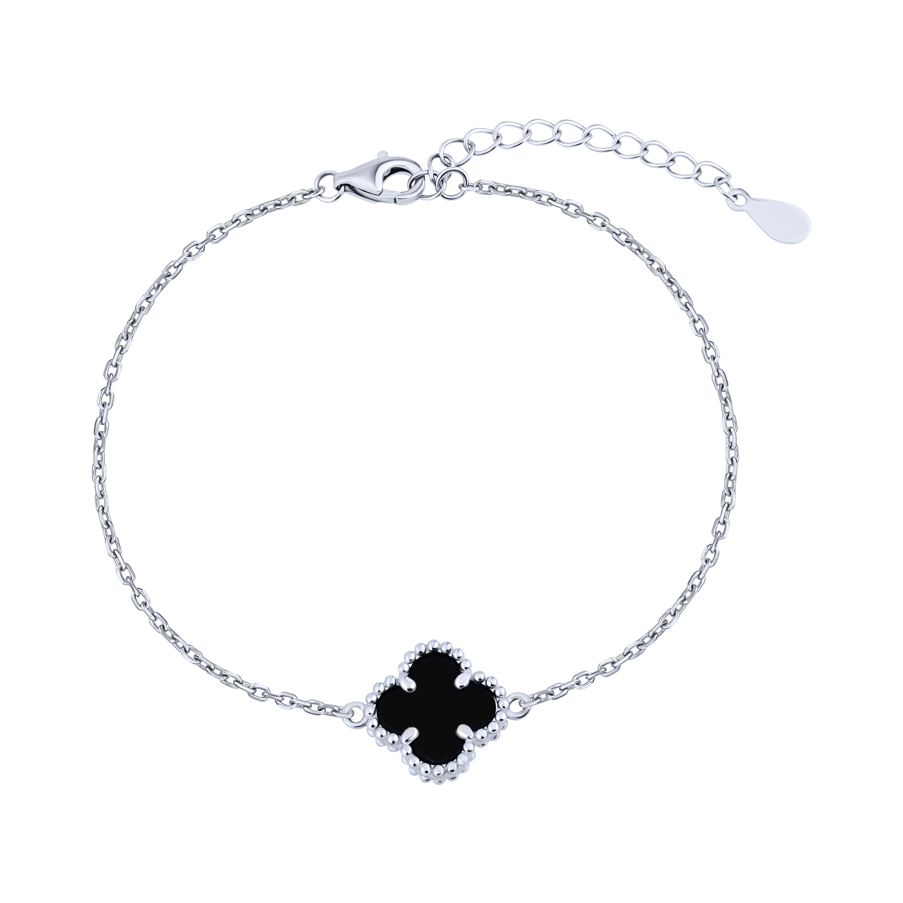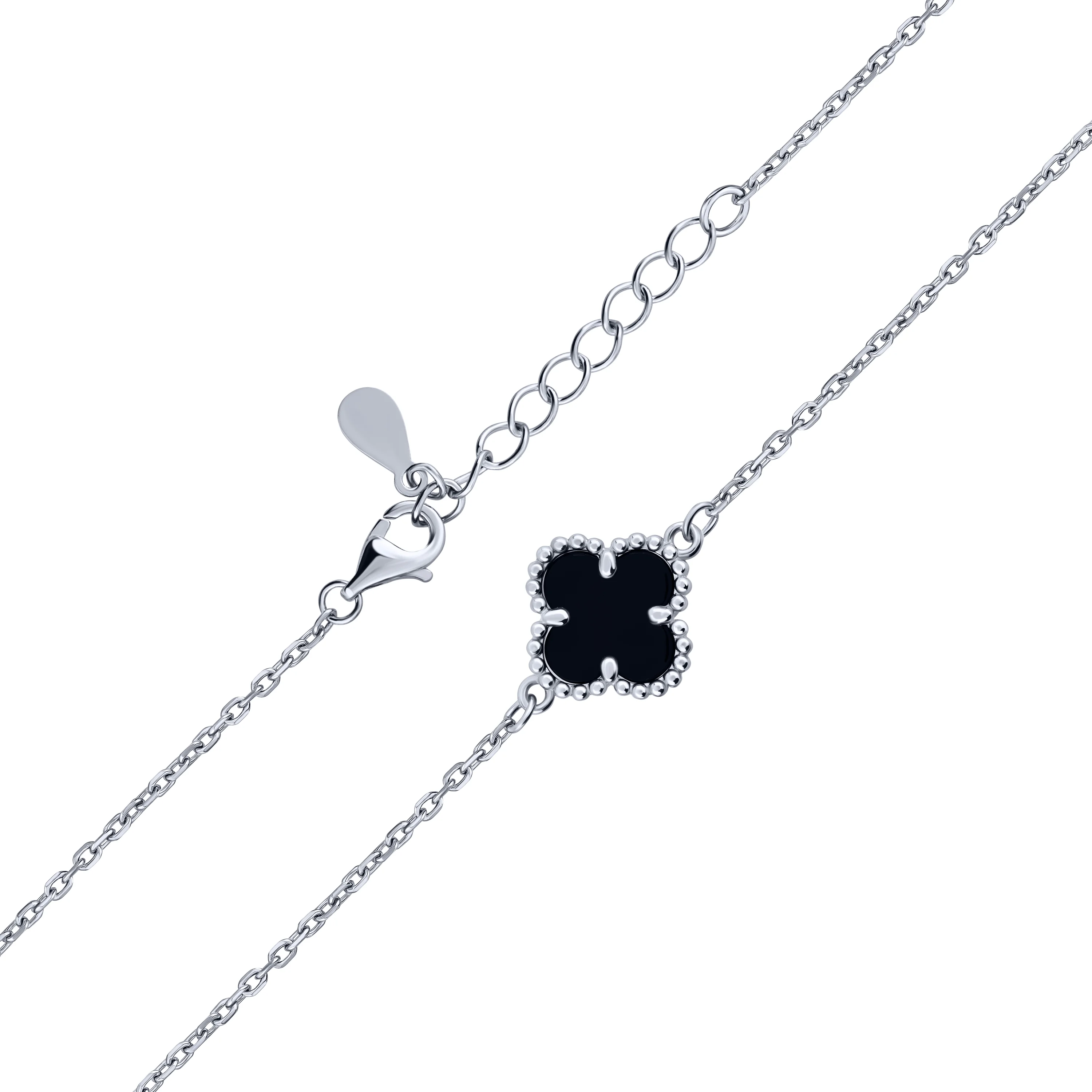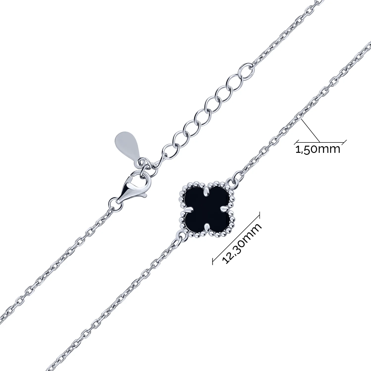 Витончений браслет "Конюшина" в сріблі з оніксом якірне плетіння - 2028381