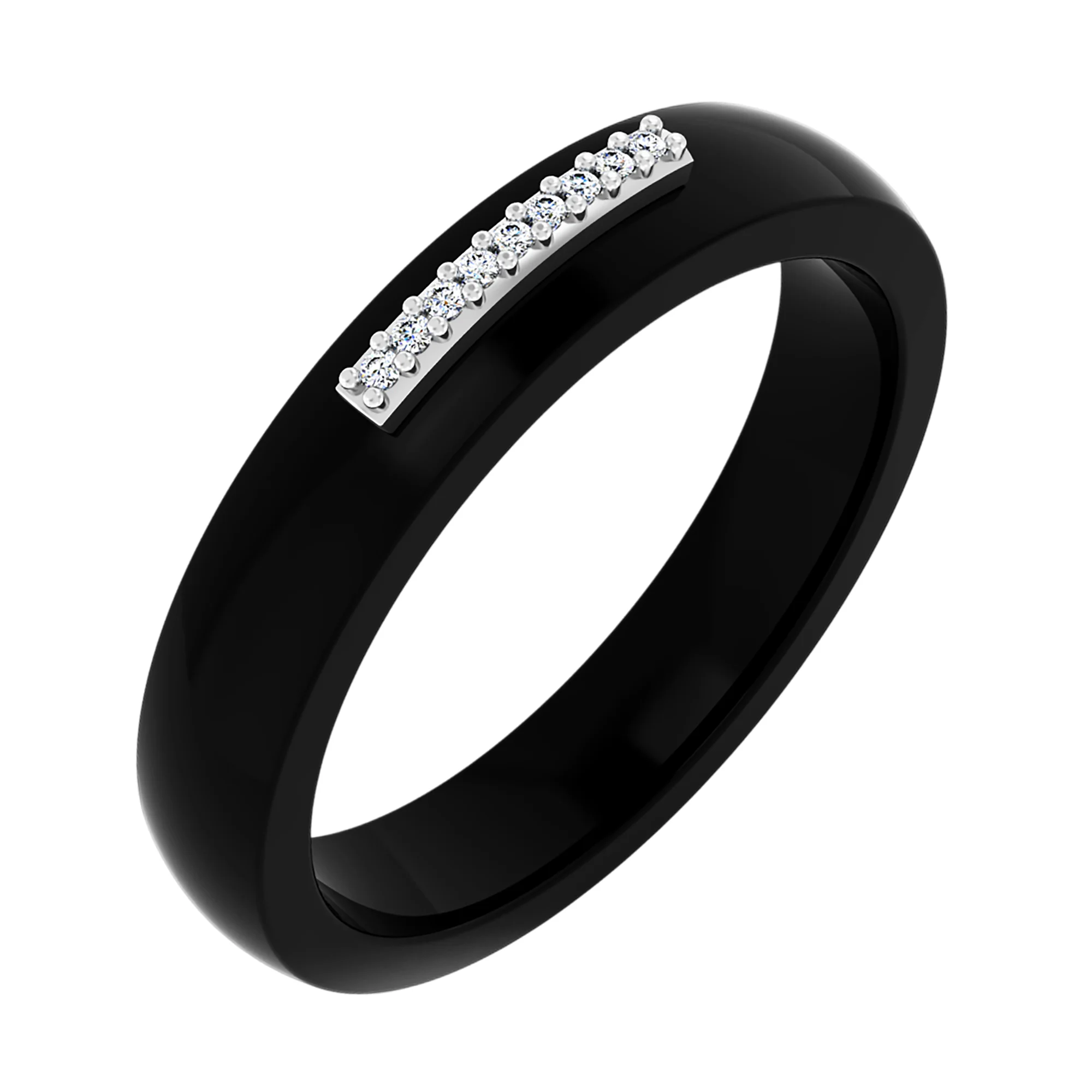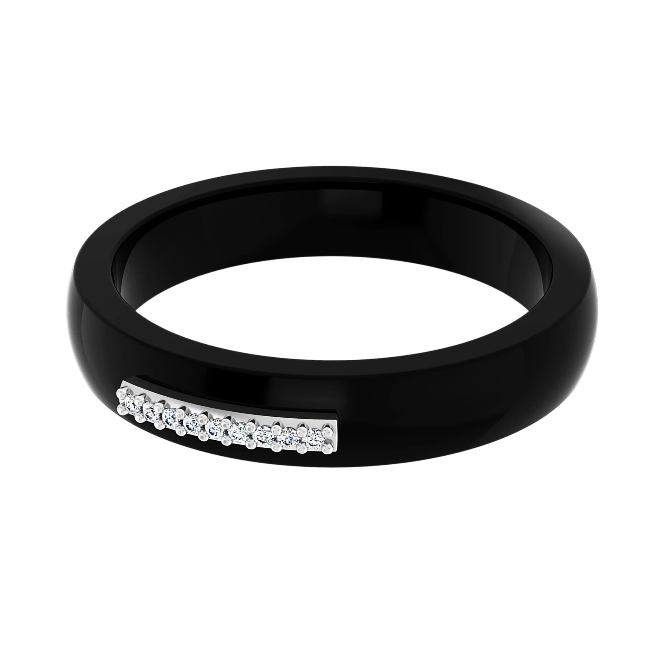 Керамічна каблучка зі вставкою з білого золота з доріжкою діамантів - 2129623