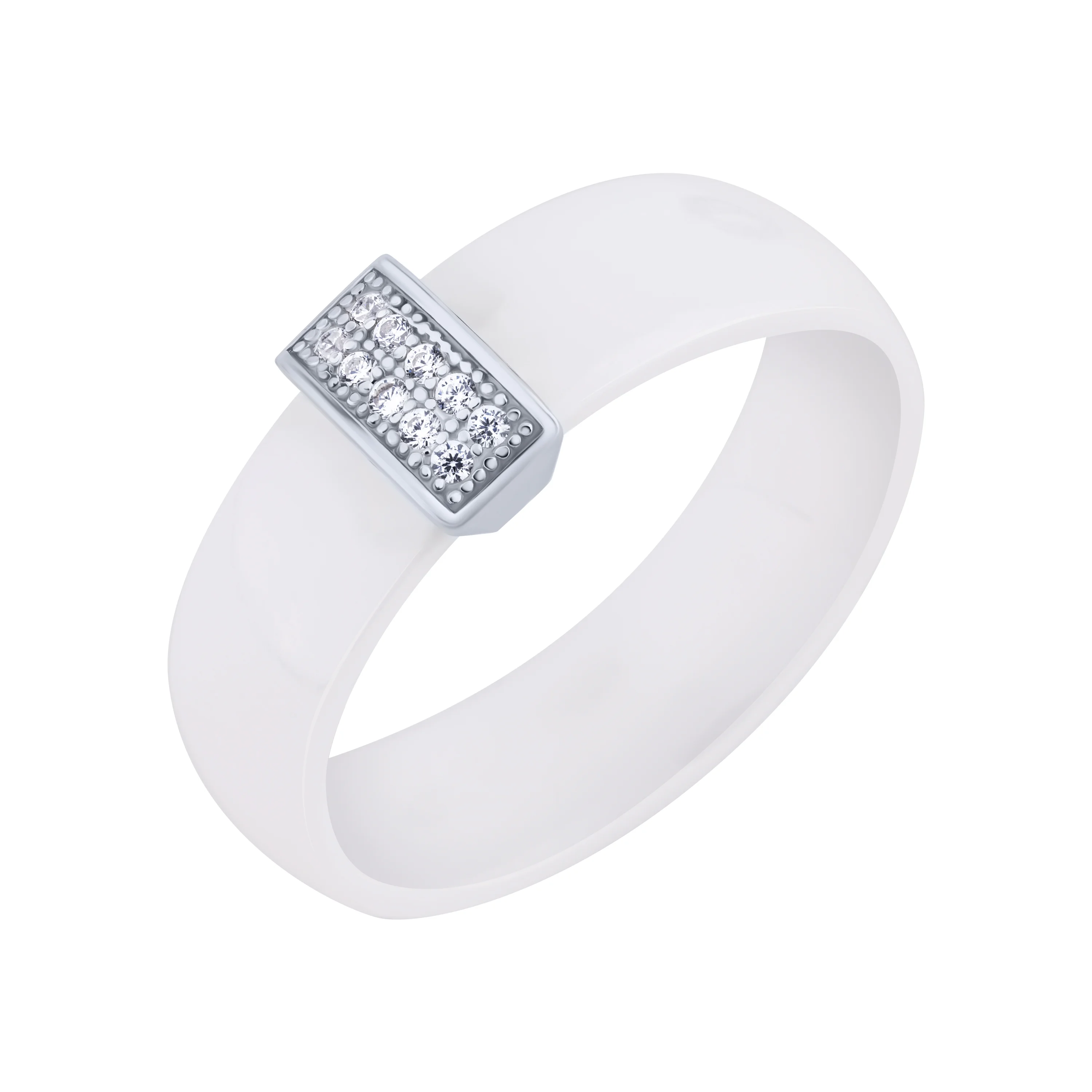 Керамічна каблучка із вставкою зі срібла з фіанітами - 2138127