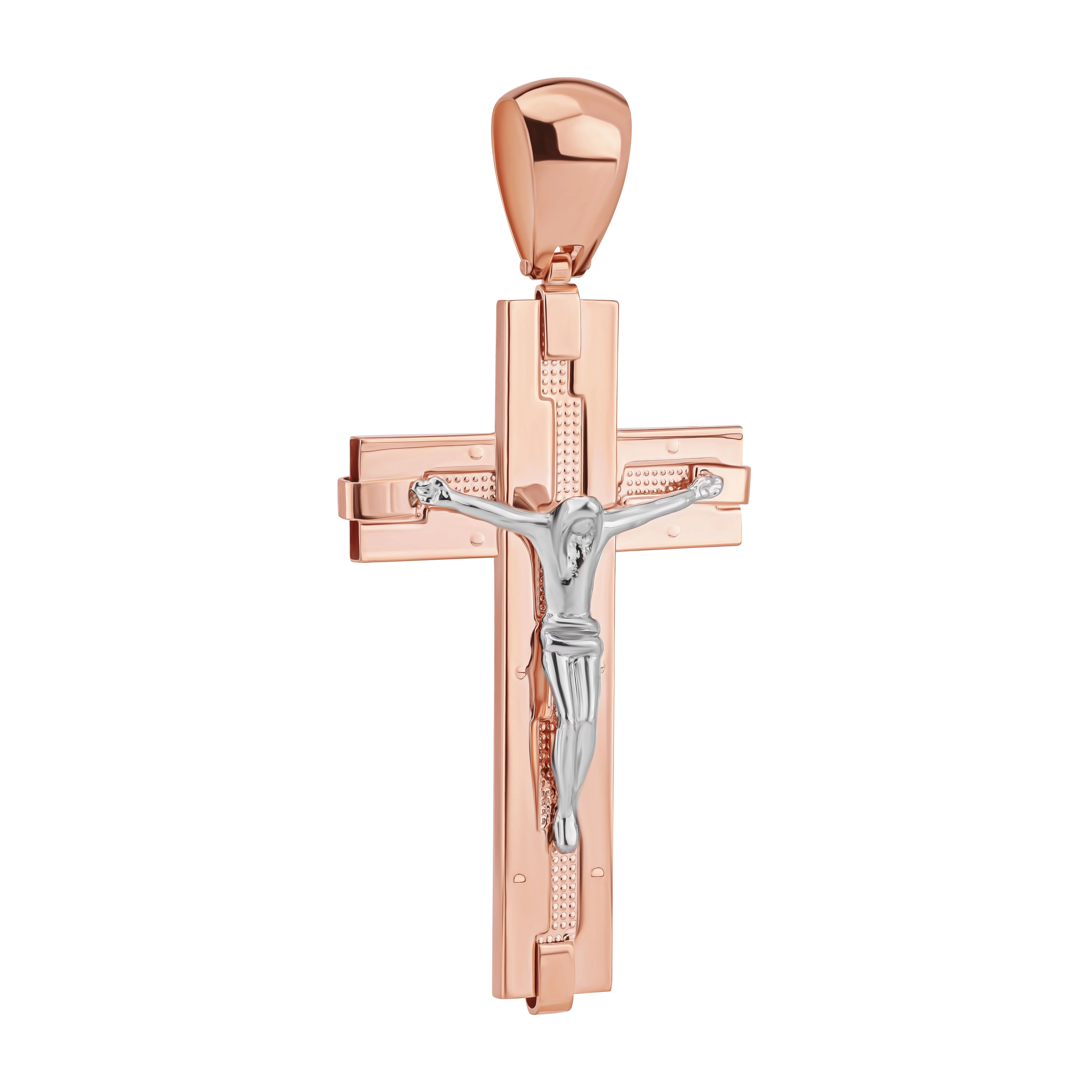 Хрестик з комбінованого золота "Ісус Христос" - 1942955