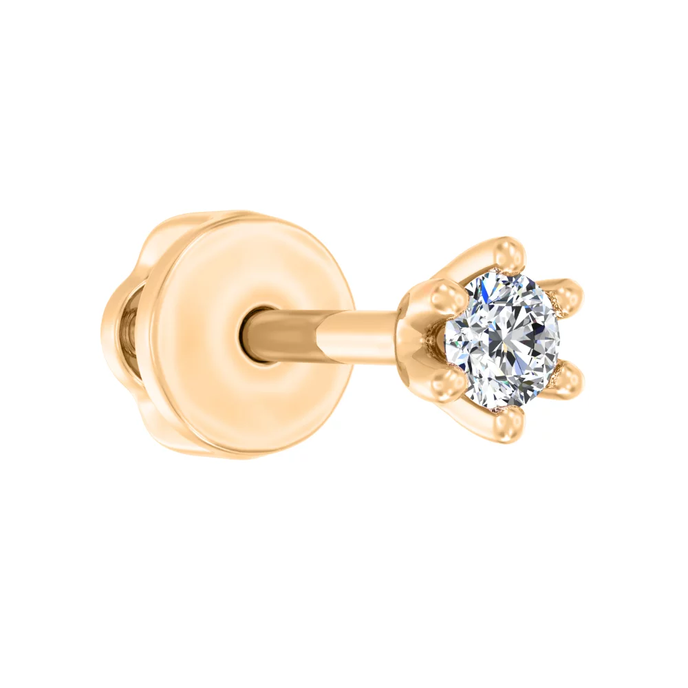 Сережки-гвоздики з діамантом у стилі мінімалізм у червоному золоті - 1801732