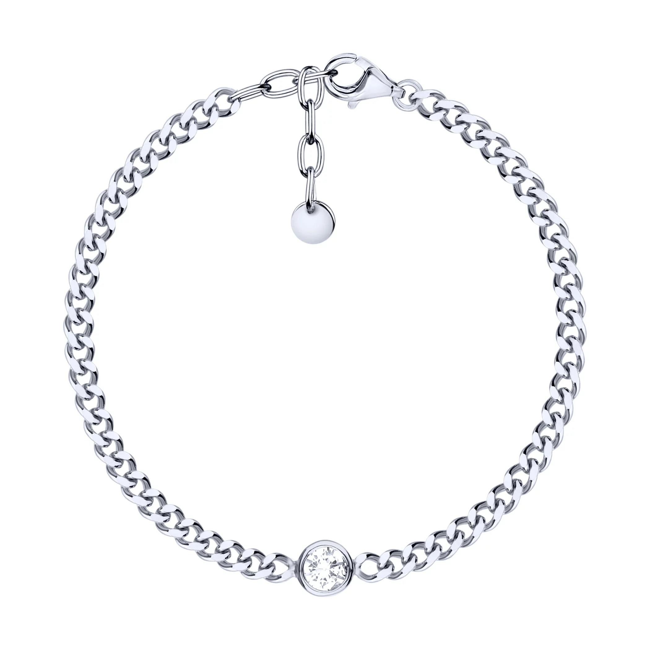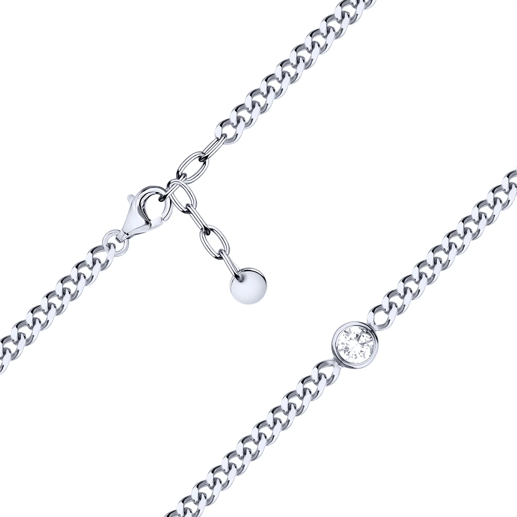 Браслет з подвійним плетінням "Підкова" з білого золота та фіанітами - 1858272
