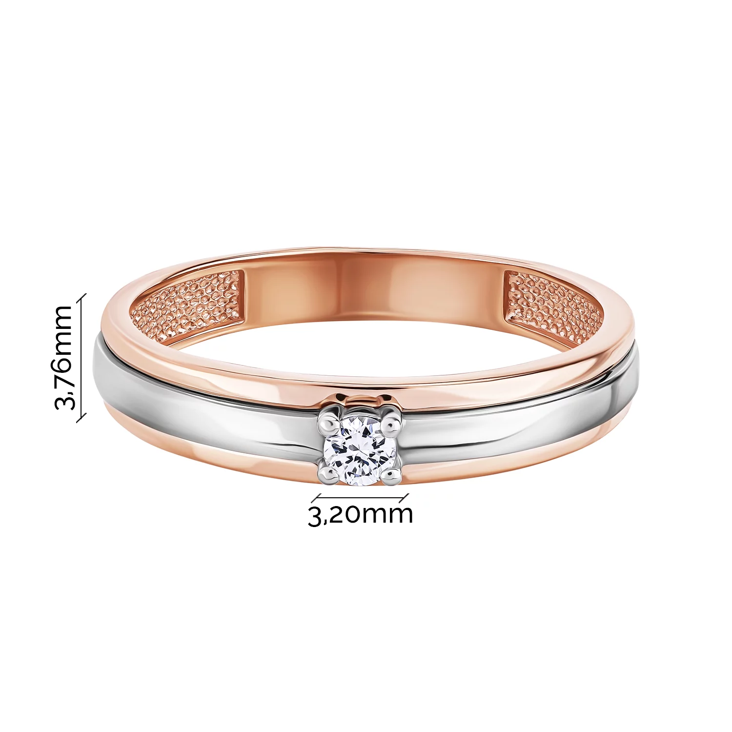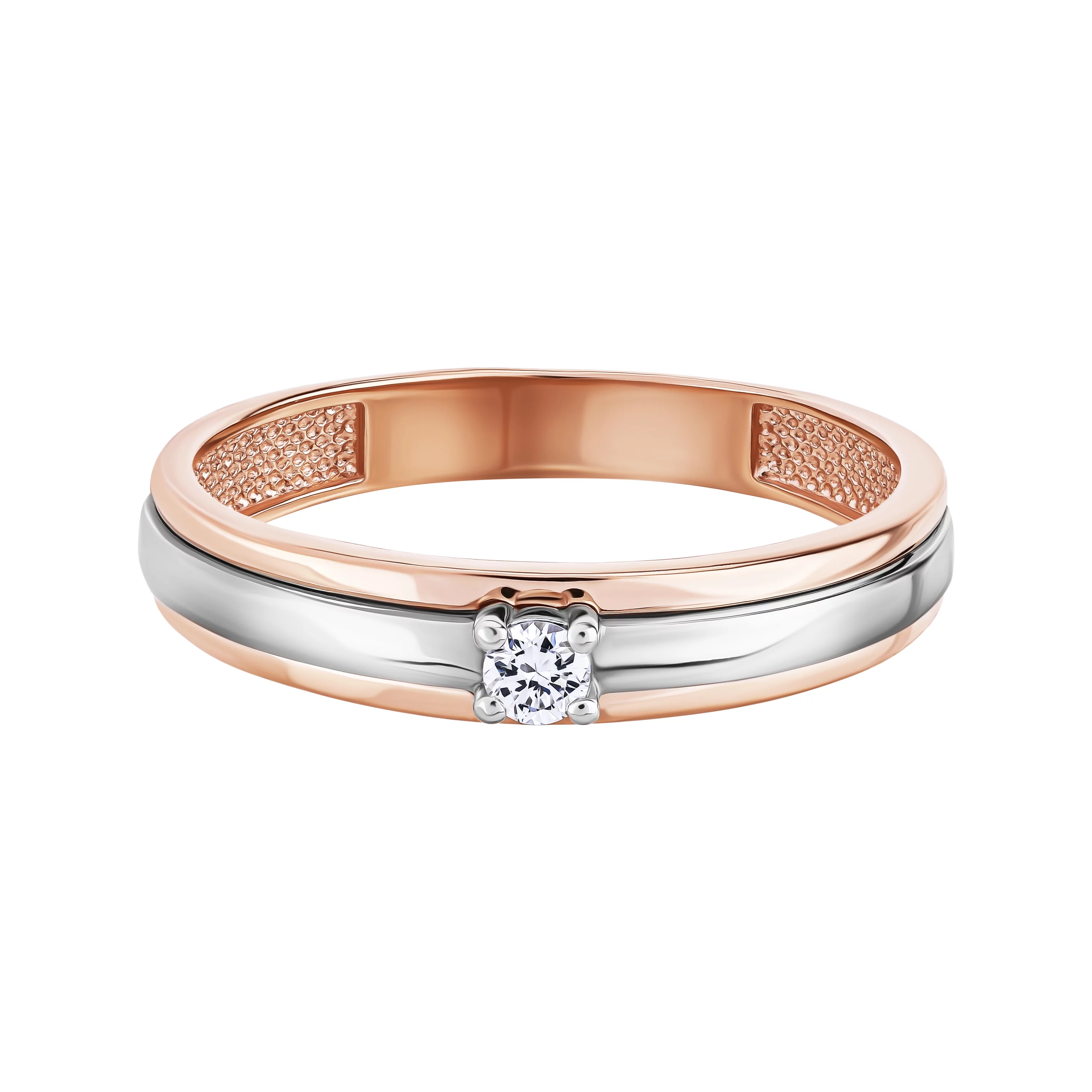 Каблучка в мінімалістичному стилі в комбінованому золоті з діамантом - 1875485