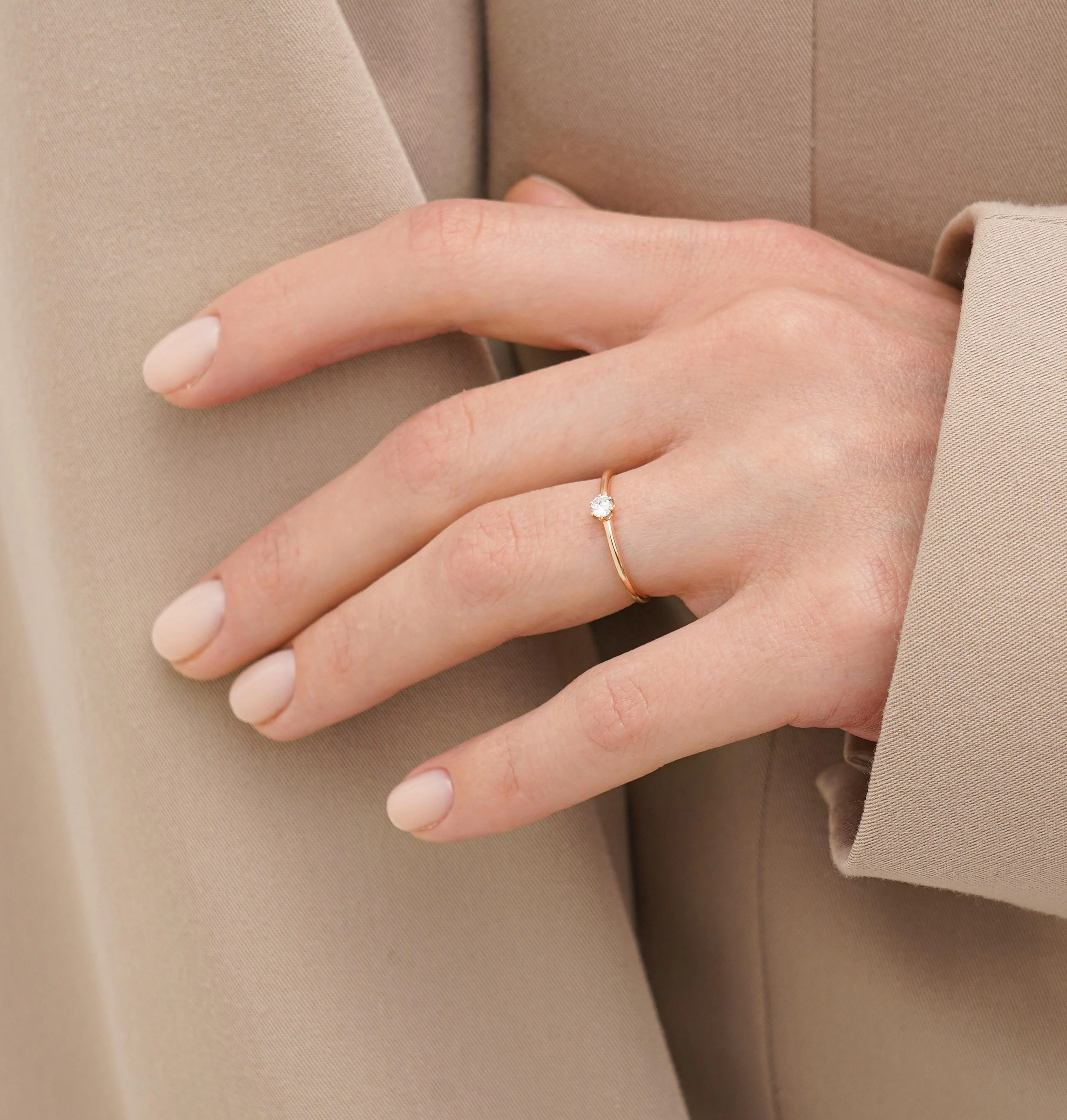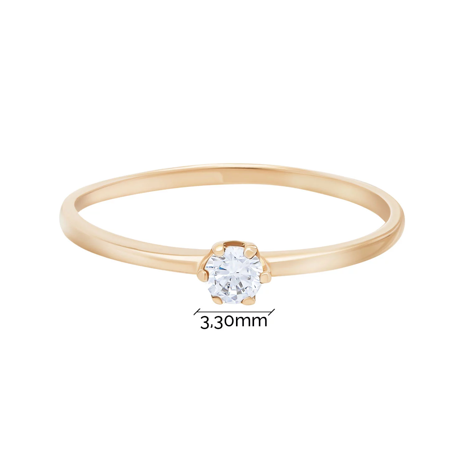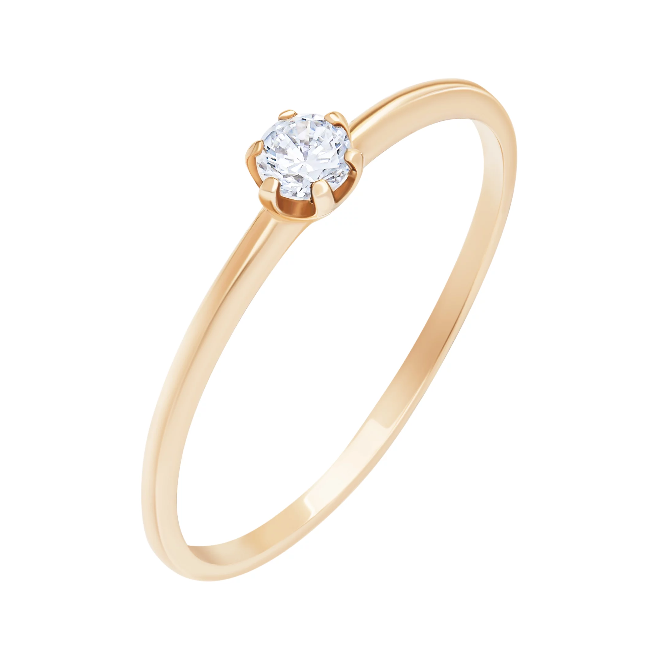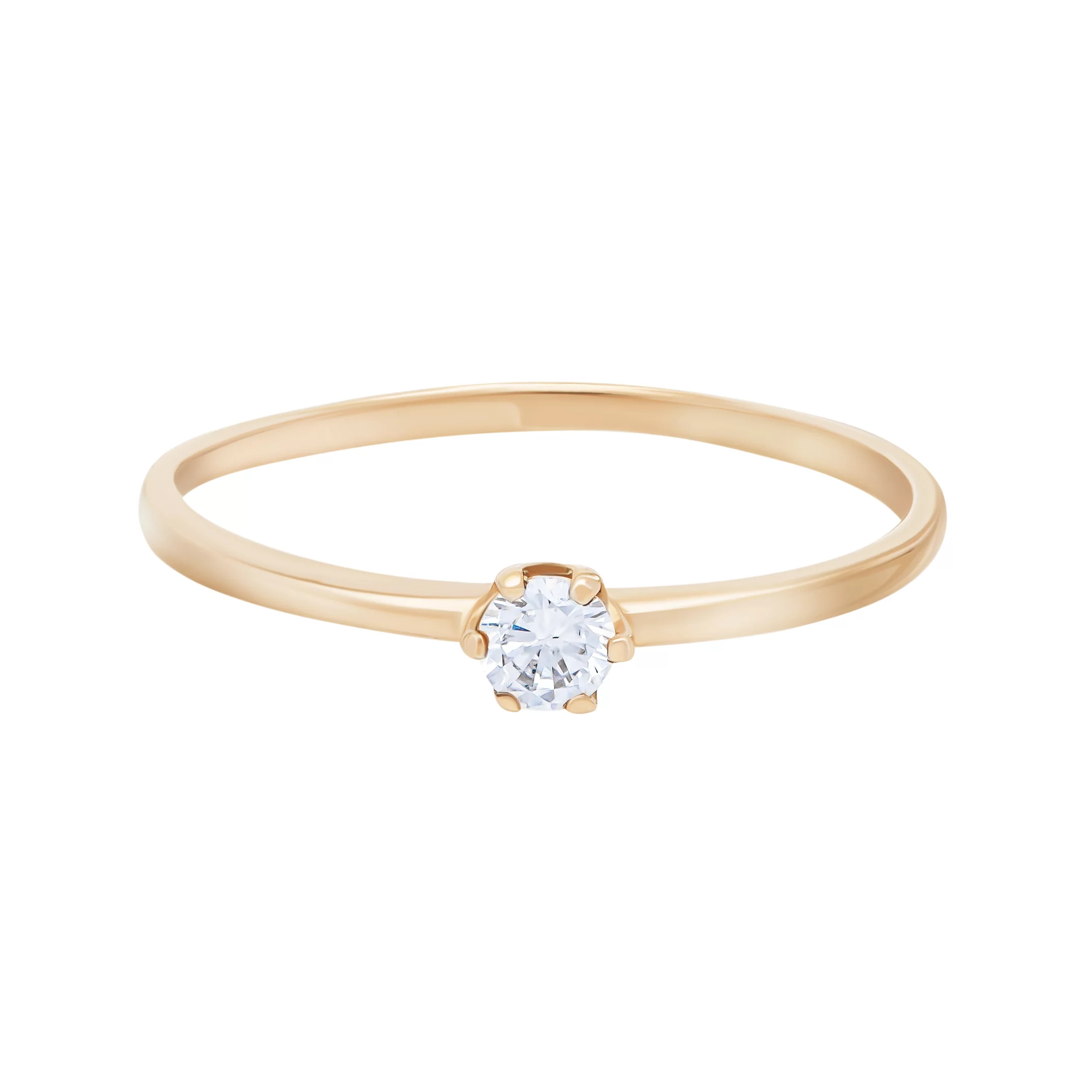 Каблучка в мінімалістичному стилі з червоного золота з фіанітом - 1867186