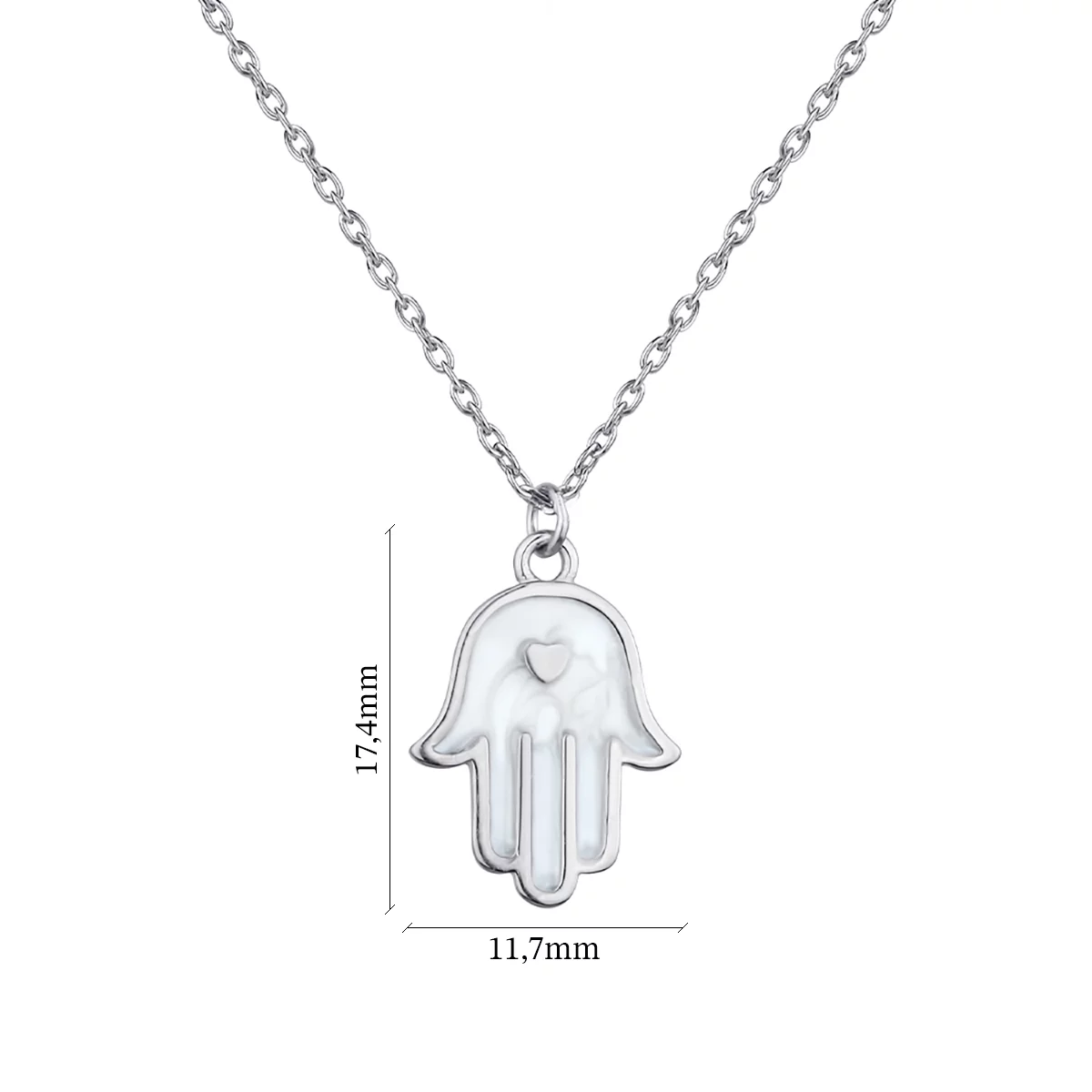 Елегантний срібний ланцюжок з підвісом "Серце" з перламутром та якірним плетінням - 1963146