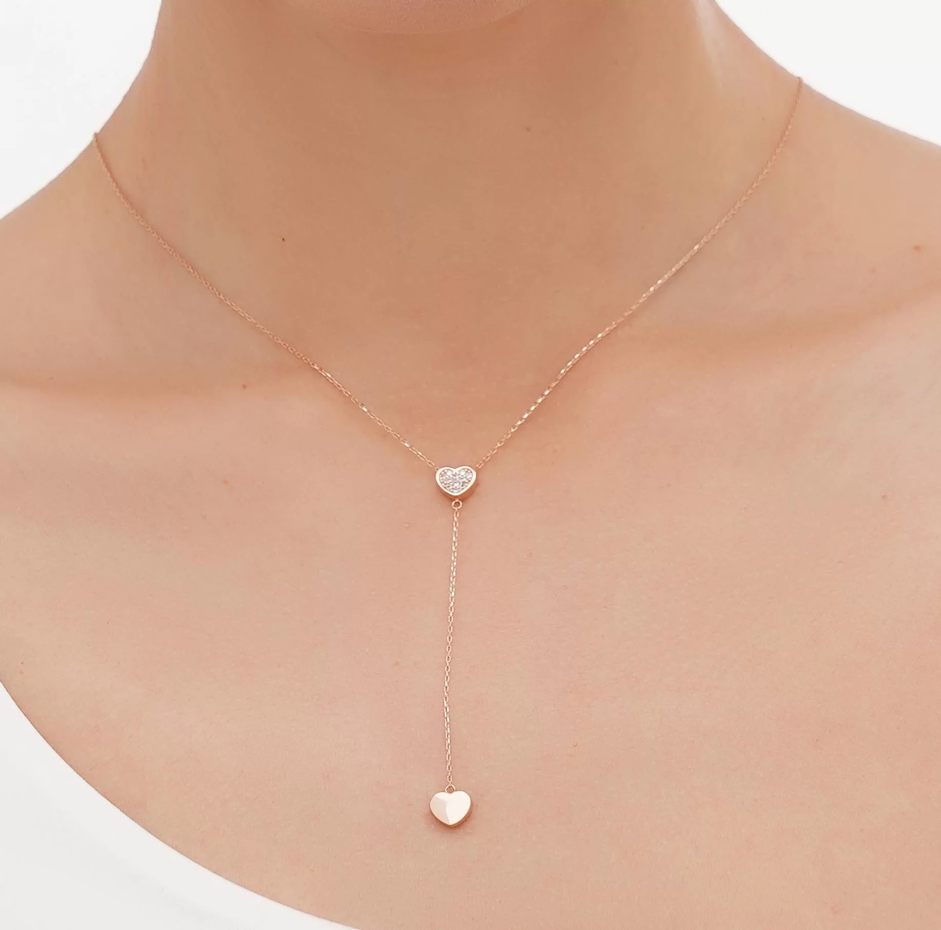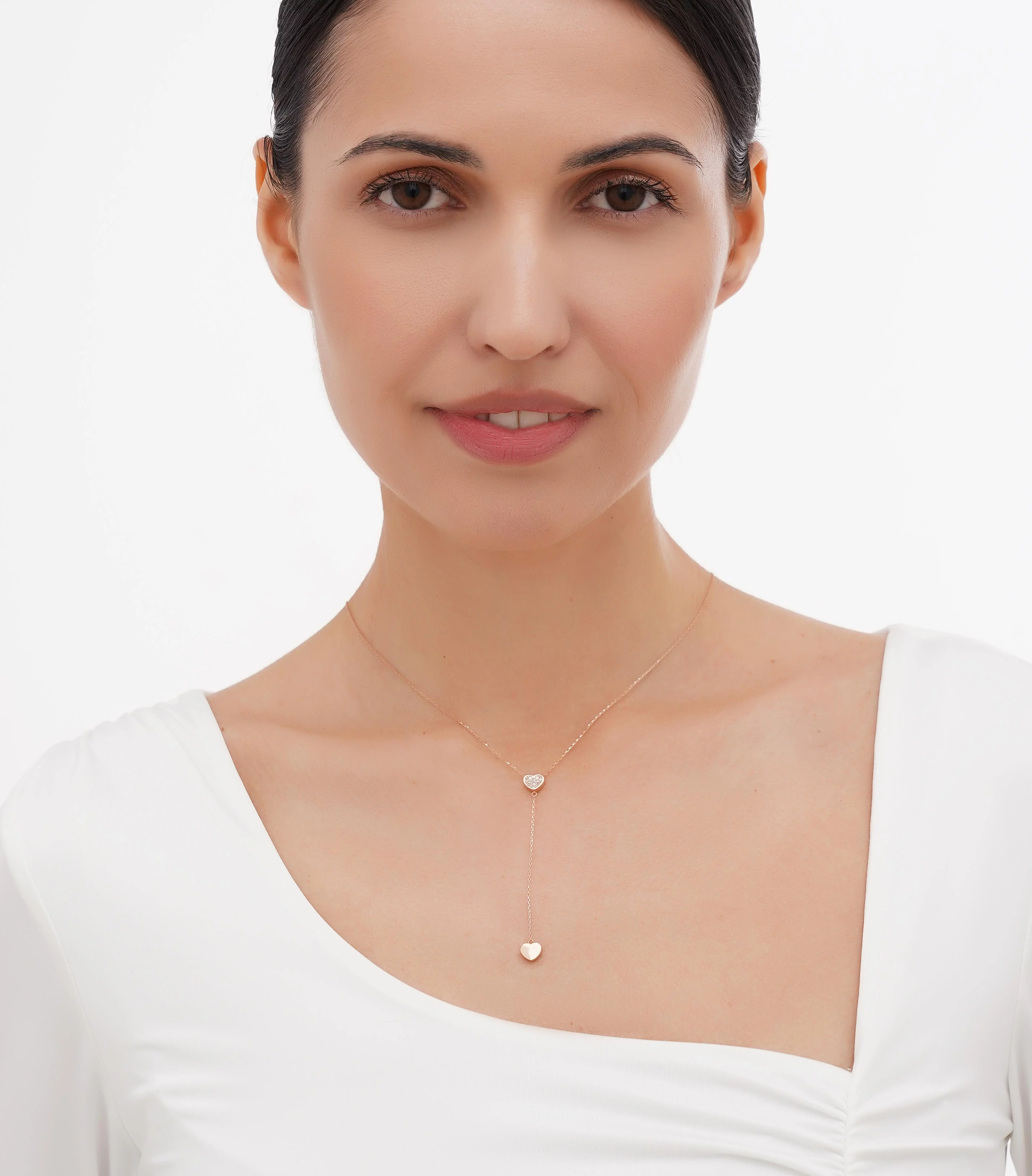 Елегантне кольє-краватка "Серце" у червоному золоті з якірним плетінням - 1916574