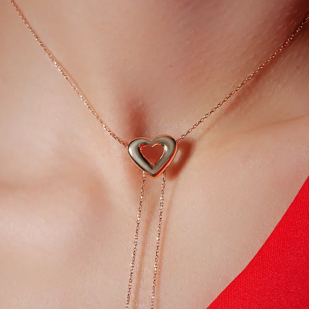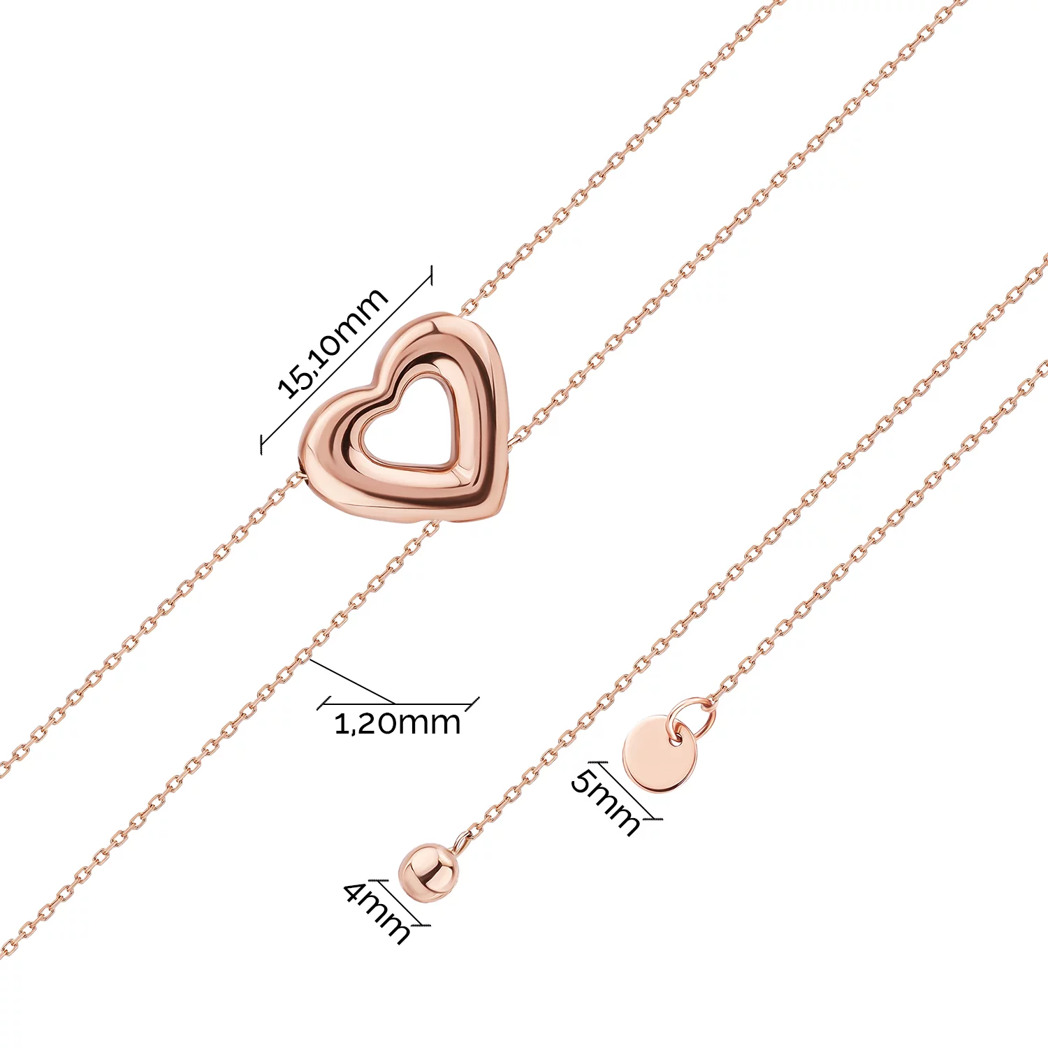 Елегантне кольє у формі серця з червоного золота з якірним плетінням - 1941411