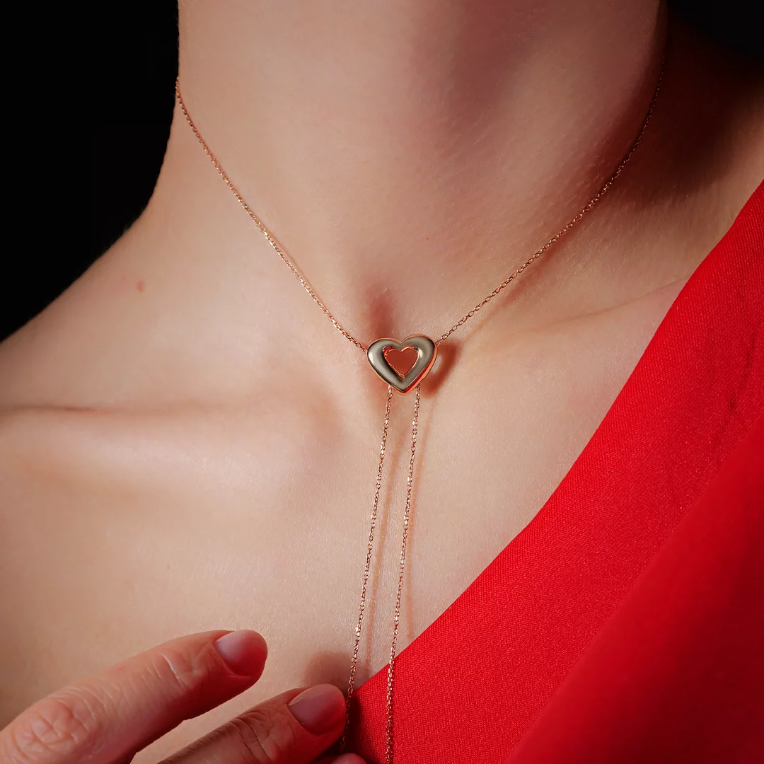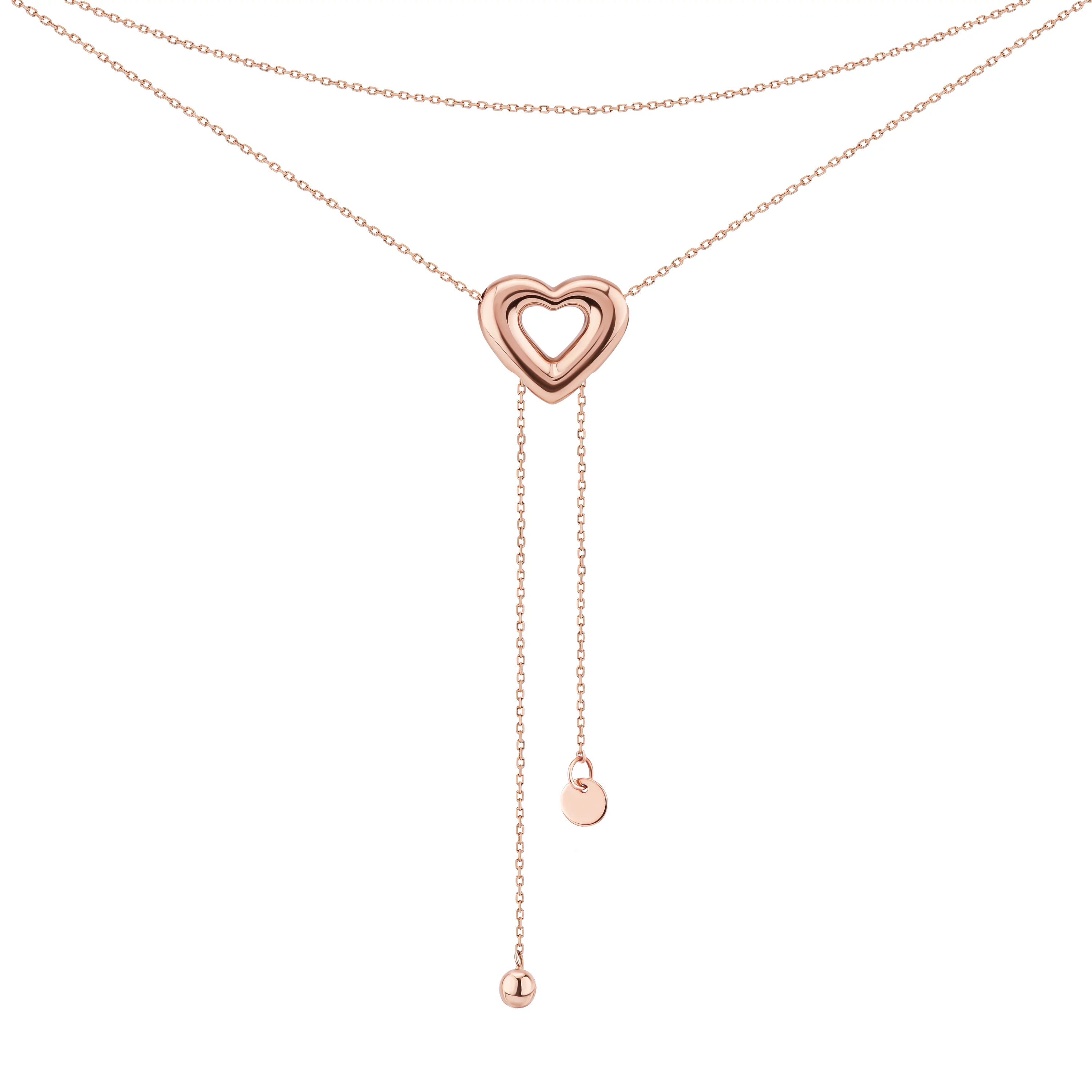 Елегантне кольє-краватка "Серце" у червоному золоті з якірним плетінням - 1916574