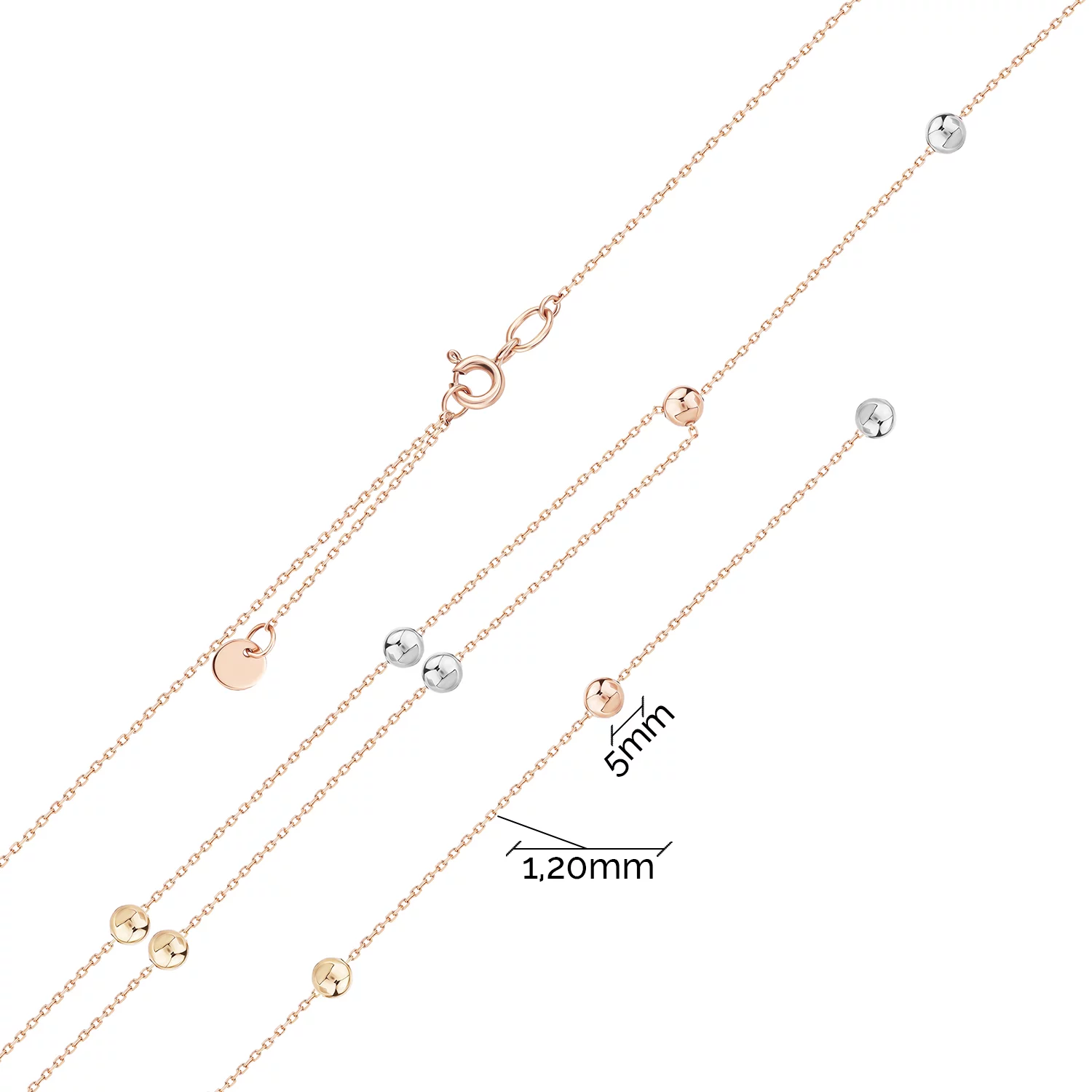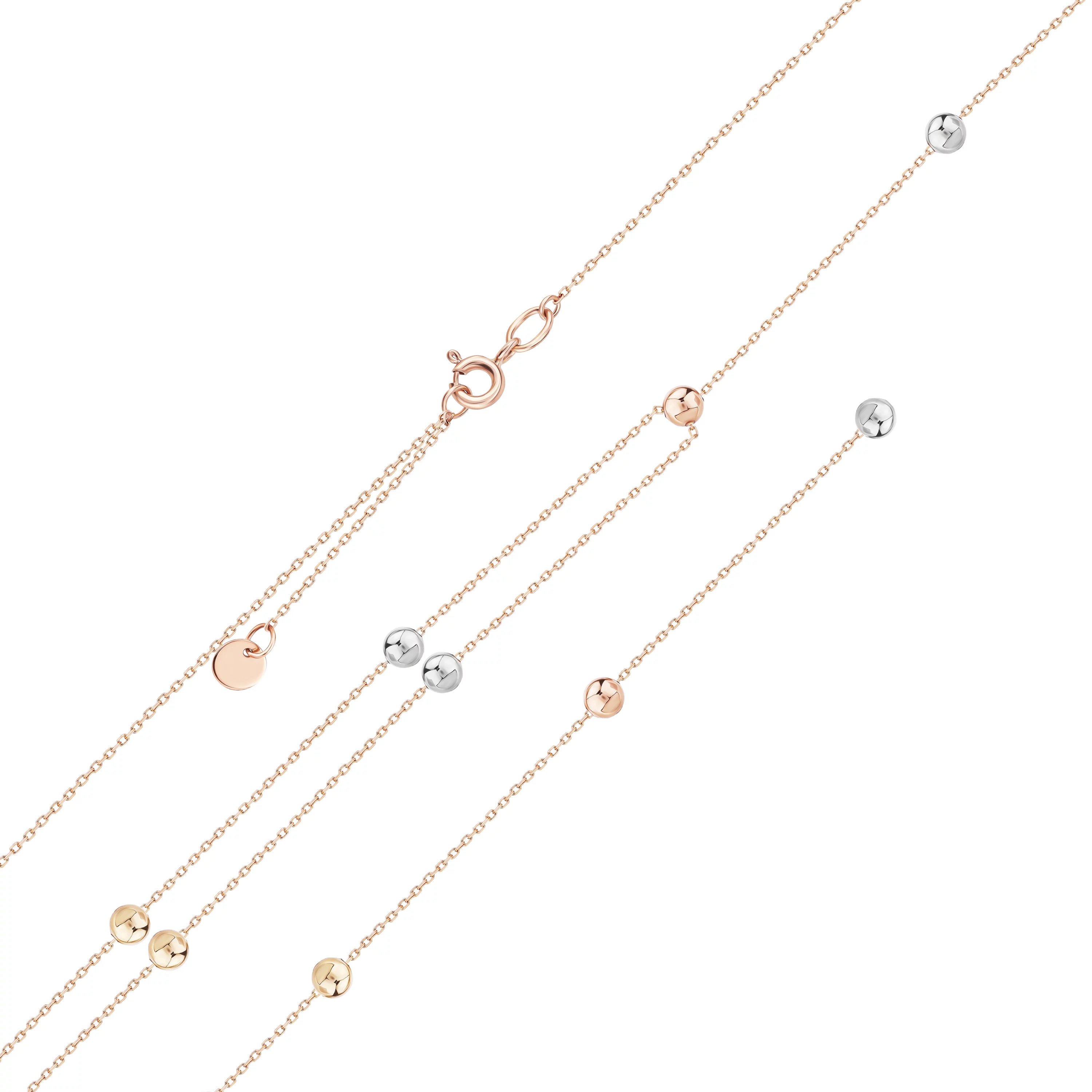 Кольє подвійне з комбінованого золота з кульками плетіння якір - 1823482